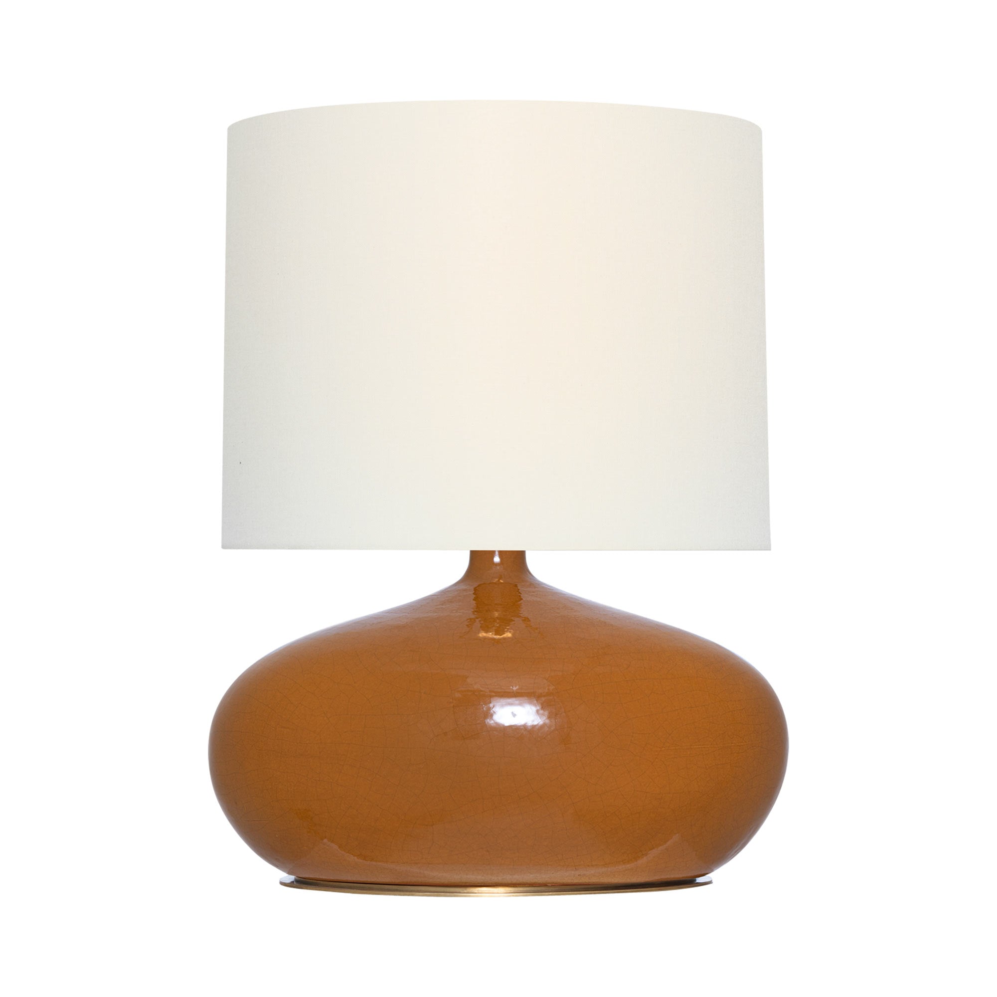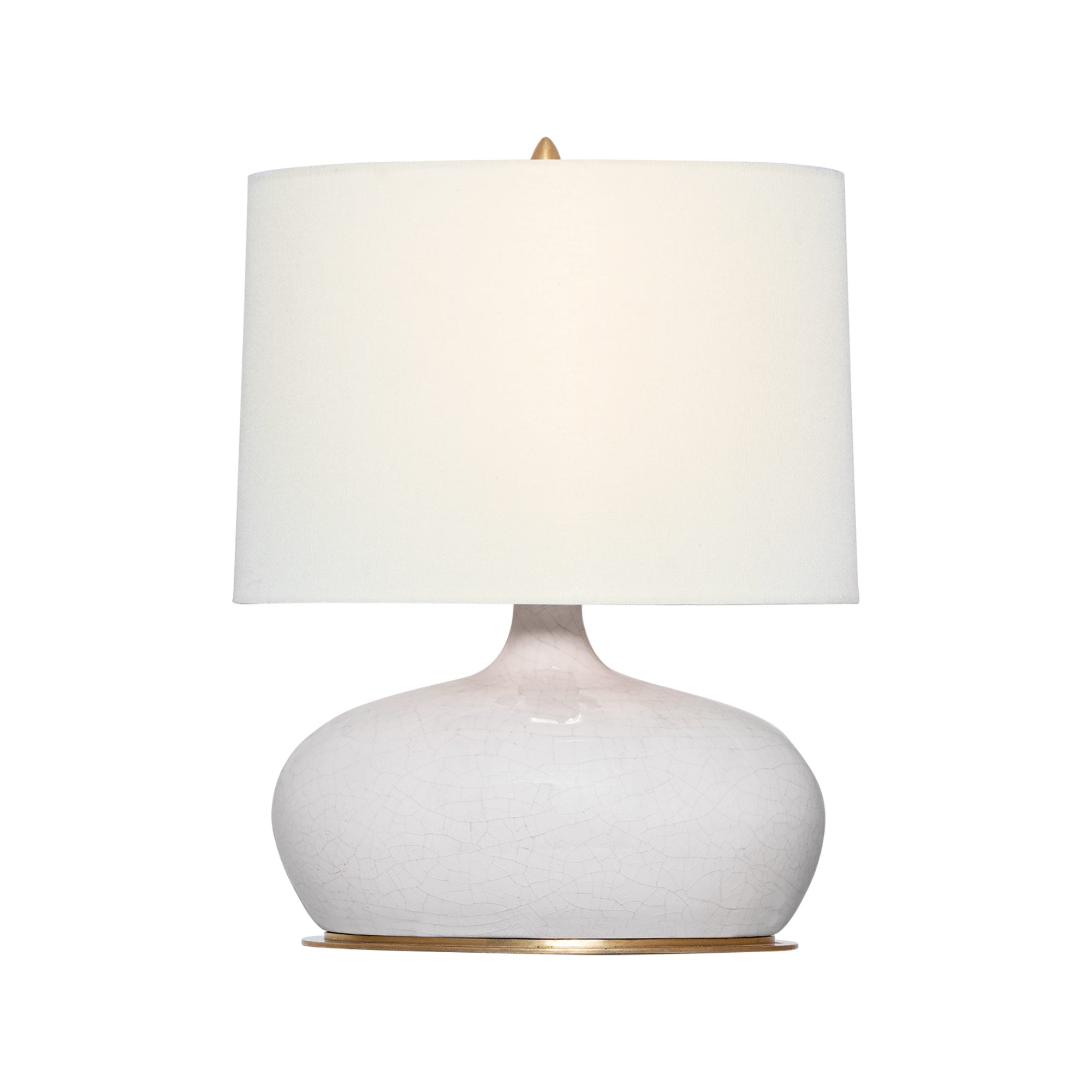 A hard-to-miss elegance rests in silhouetting as the Olinda Table Lamp from Visual Comfort Signature brings the best of traditional and modern design motifs. Ceramic is a perennial favorite in lighting, and this lamp offers exaggerated curves to replicate a lush, romantic statement. Subtle metal accents and a classic linen shade speak to a timeless source of soft lighting.