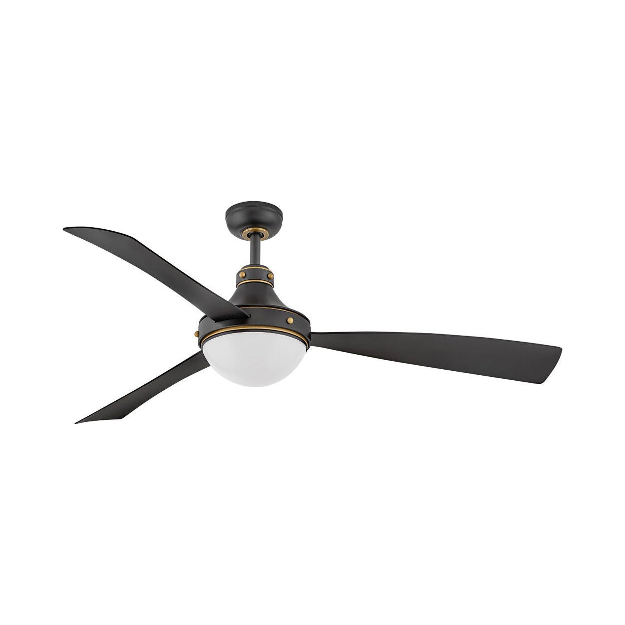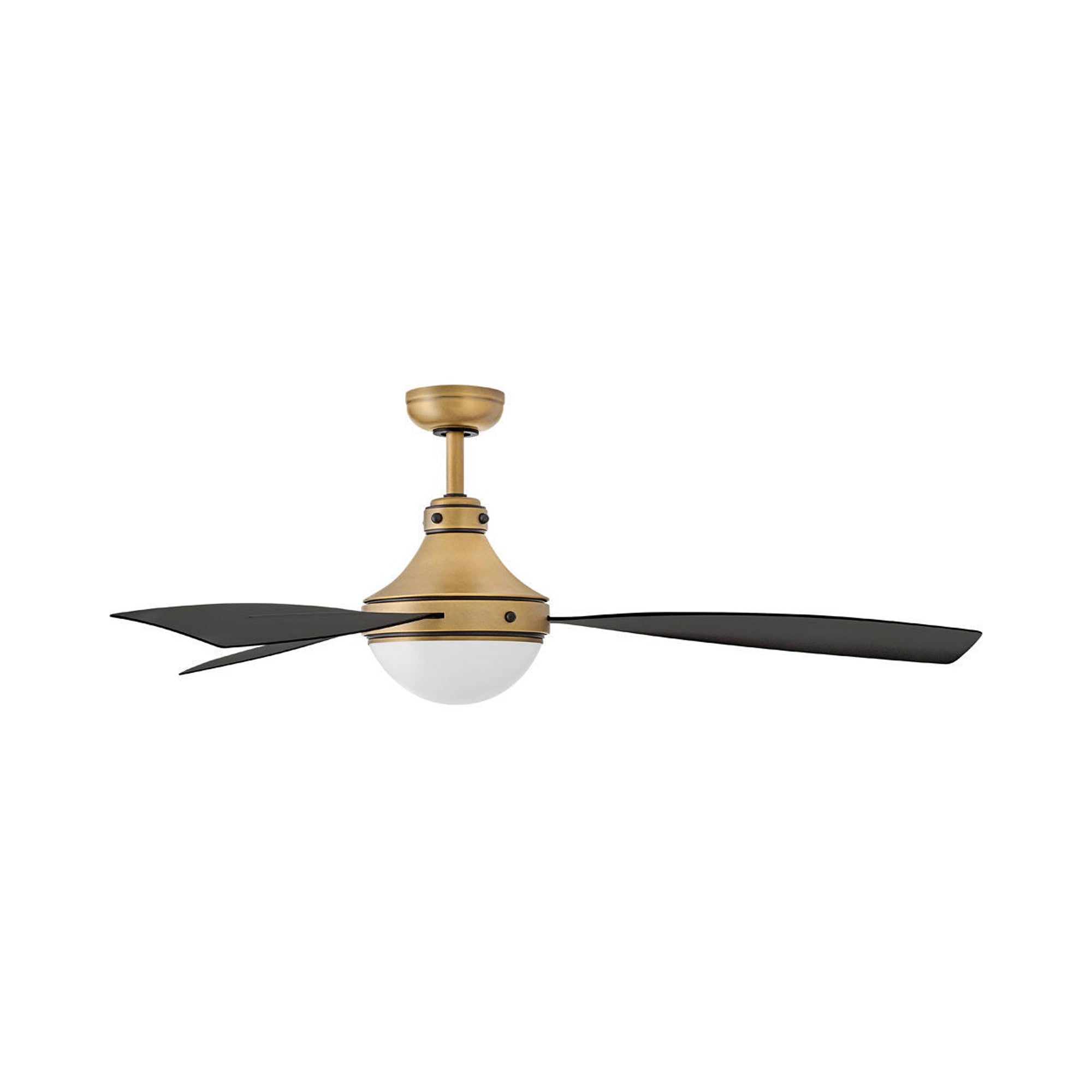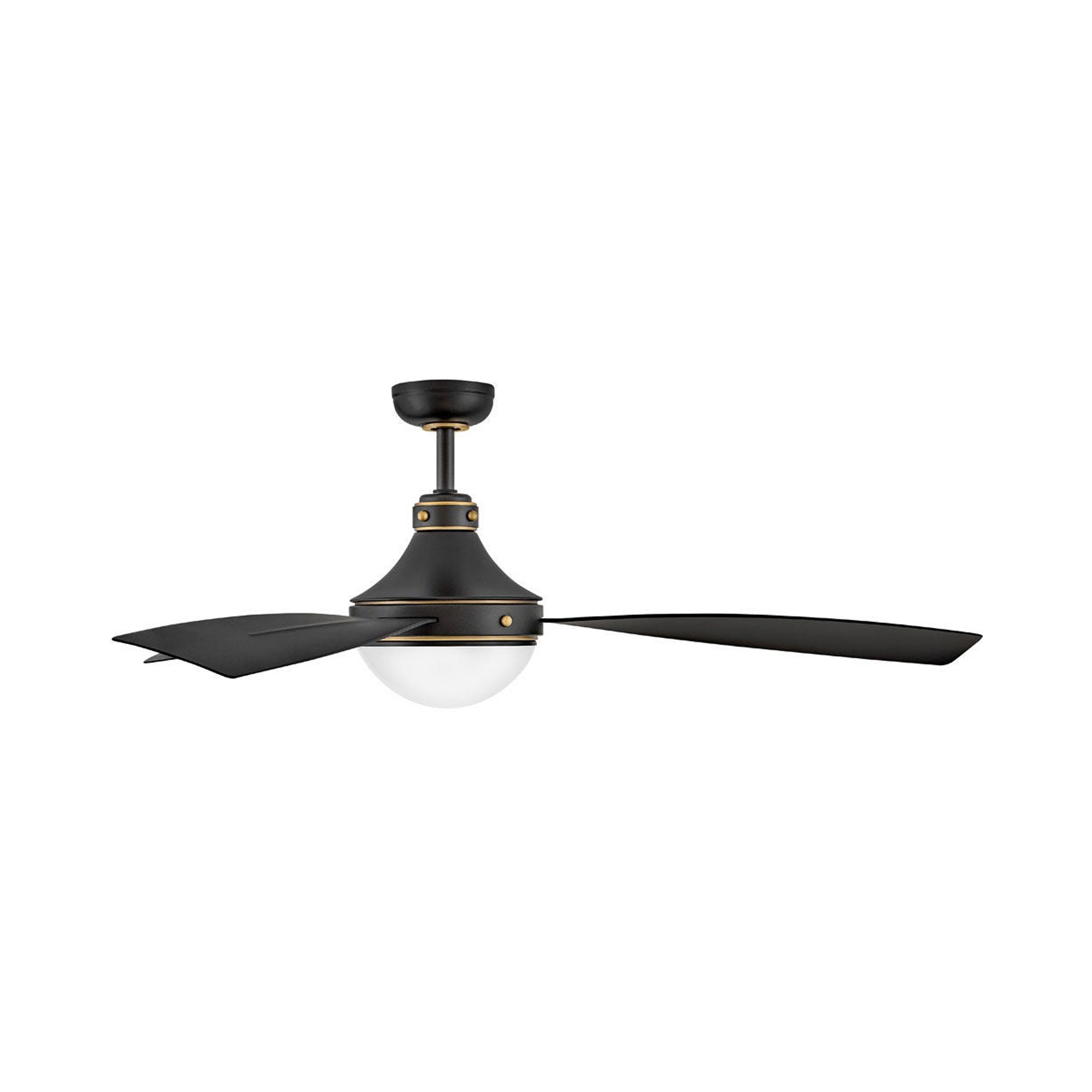 An etched opal glass dome adds stylish presence while assuring diffused illumination from the Oliver LED Ceiling Fan from Hinkley. Its refined silhouette is enhanced with three blades that offer easy air circulation that's perfect for a bedroom, den, or living area. It's a wet location rated fan suited to both indoor and outdoor locations and it's Wi-Fi enabled for app control.