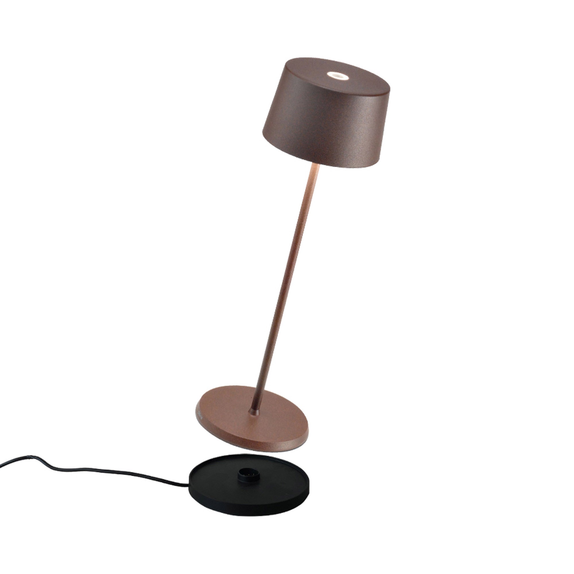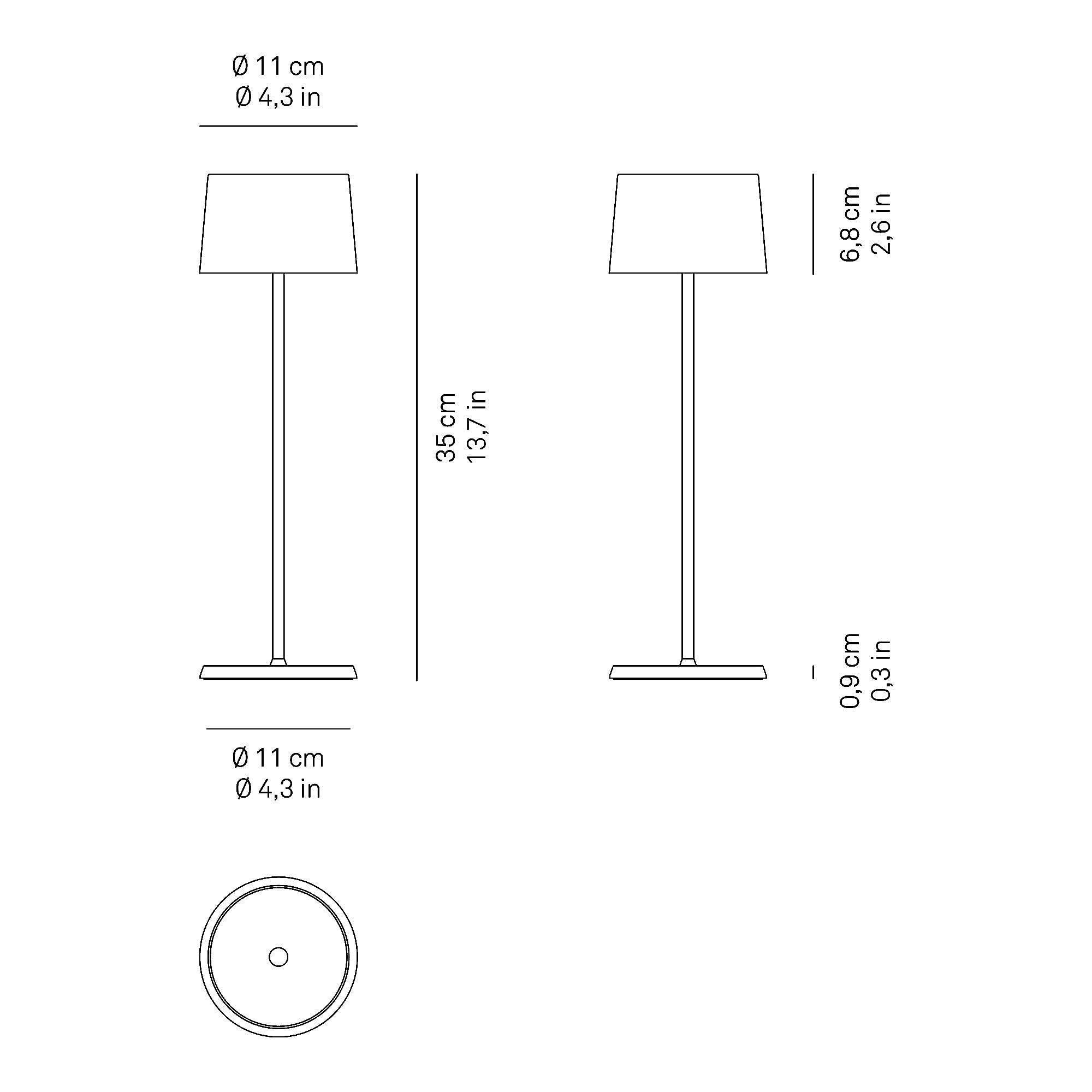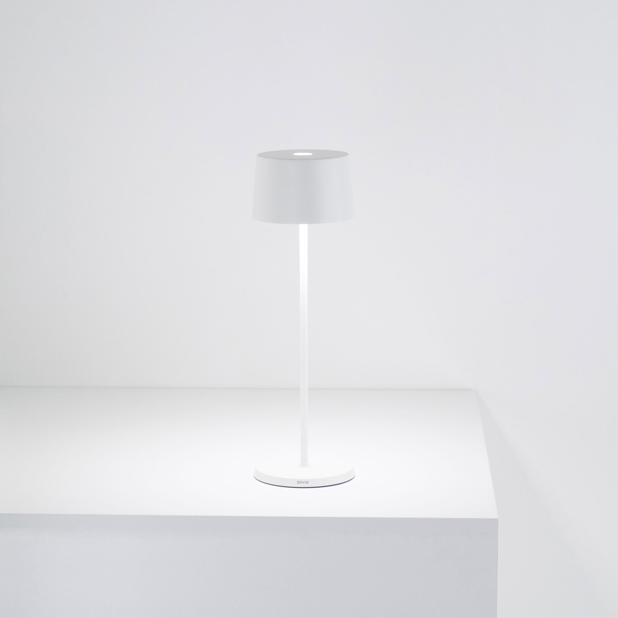 An iteration of conventional task lighting, the Olivia Pro LED Table Lamp from Zafferano America adds subtle softness to soften a strictly linear silhouette, adding a stylish impact to a lamp with multiple features. Die-cast aluminum construction begins on the right path, leading to a tall lamp with perfect illumination, downward-focused and precise, as battery powered operation eliminates unsightly cords and makes portability a breeze. This stylish lamp is energy-efficient, with a style motif that’s versatile and tasteful.