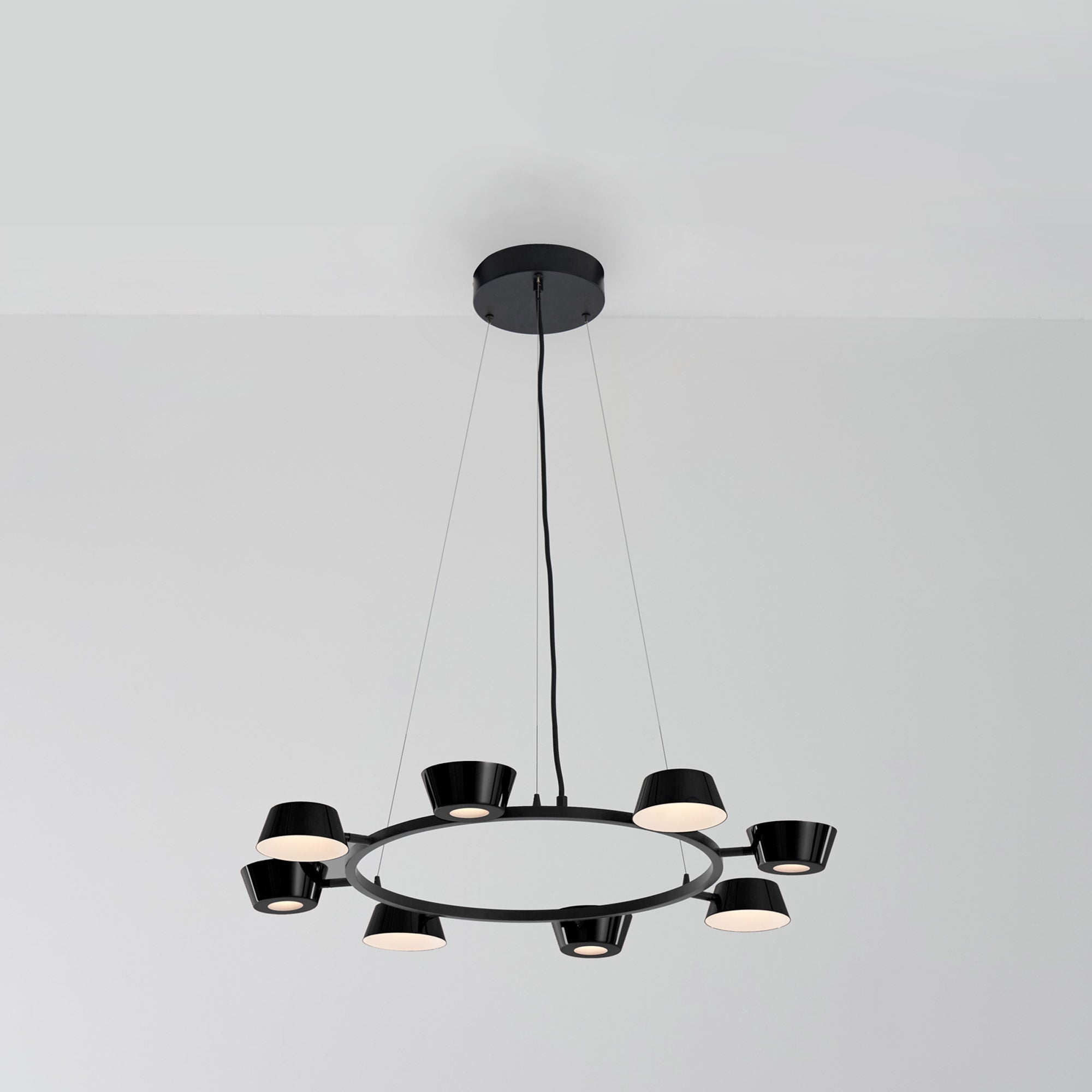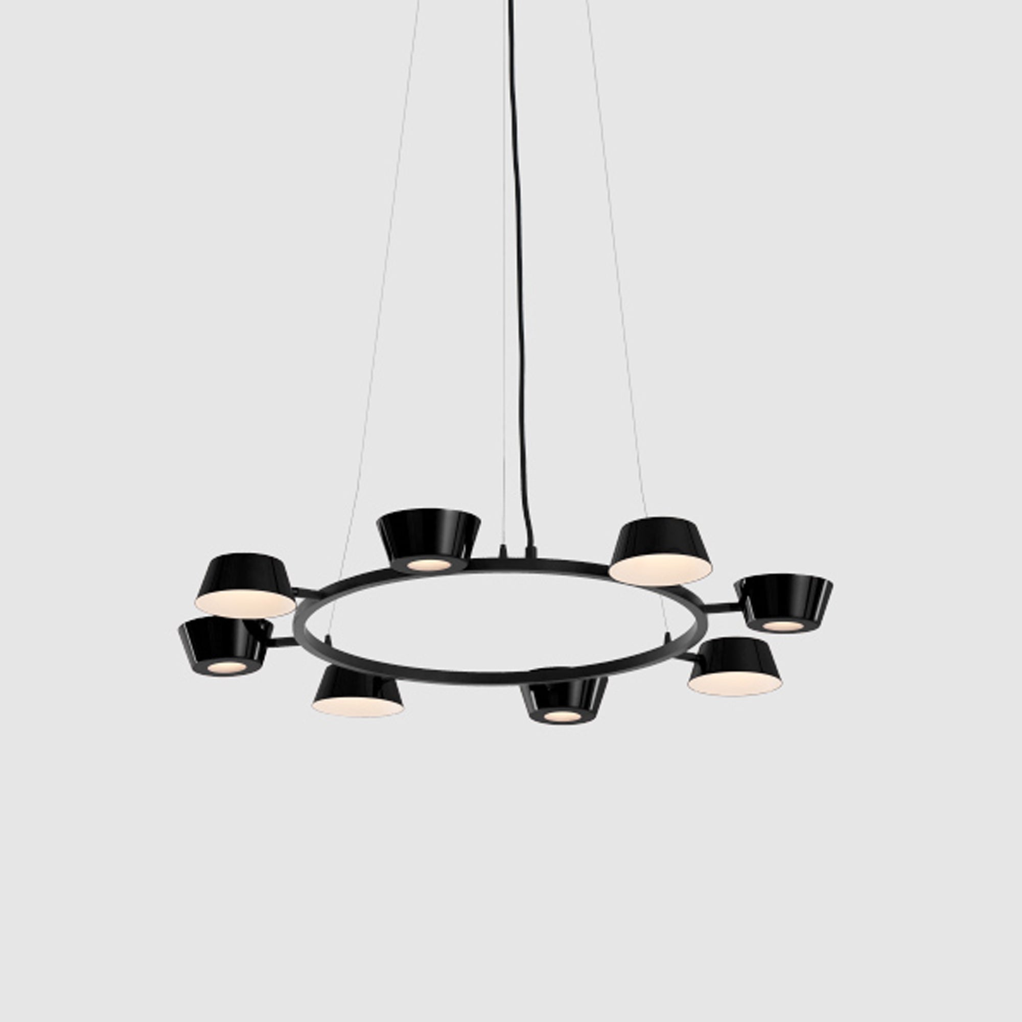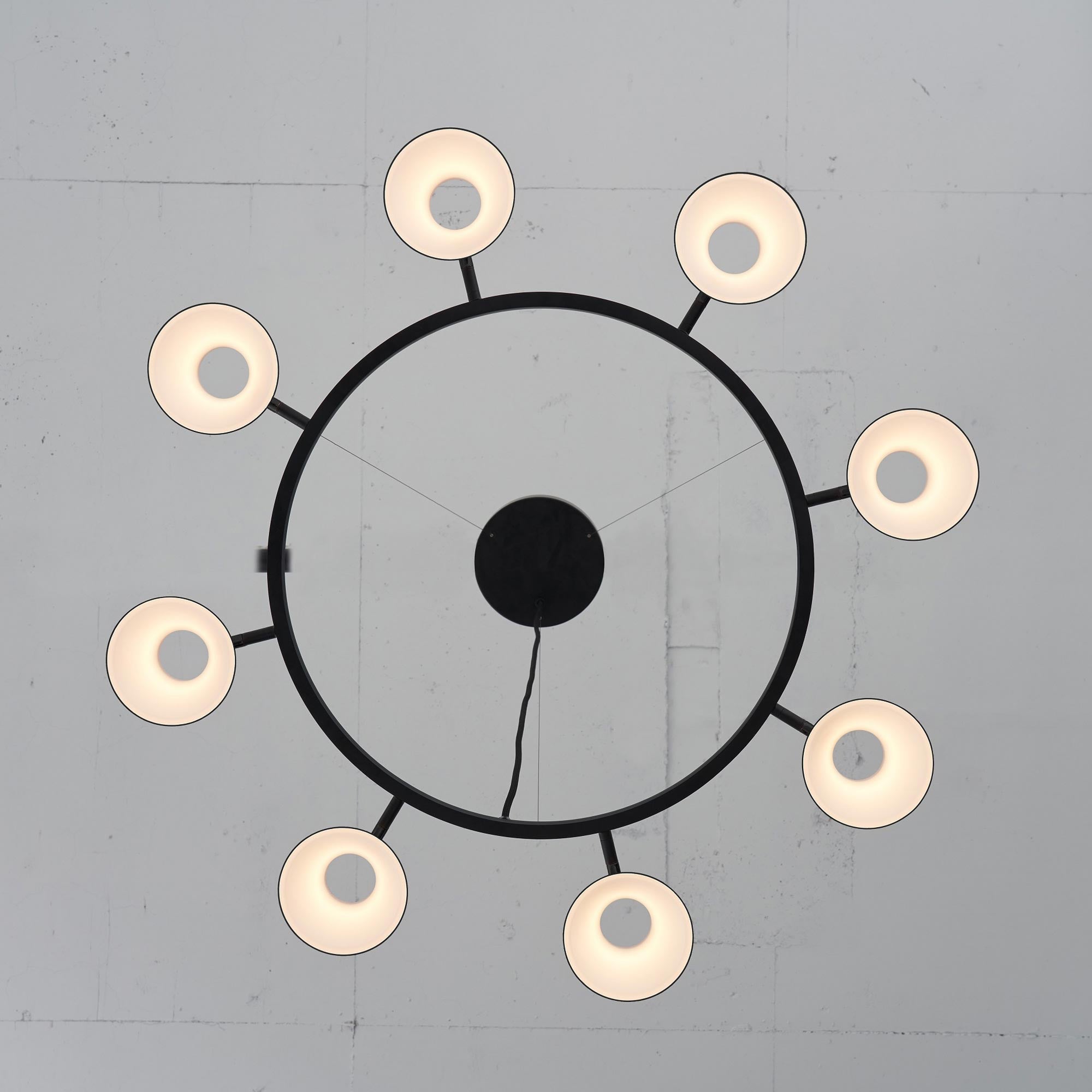 Deliver a festive mood and focal point to a kitchen or living space with the energy-efficient OLO LED Ring Pendant Light from Seed Design. Its charming circular frame hosts cup shades arranged carefully in alternating orientations, as glare-free lighting glows through diffusers placed to soften the visual impact.