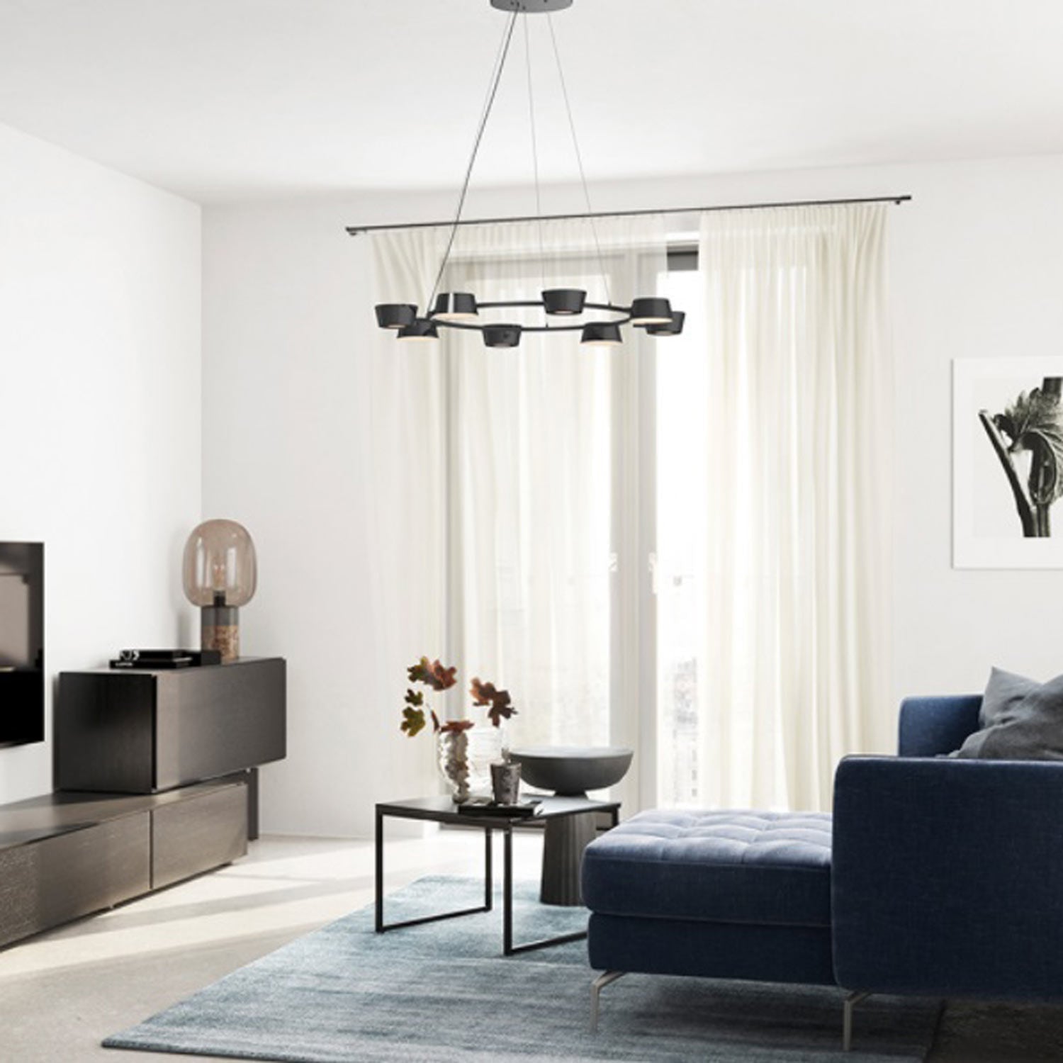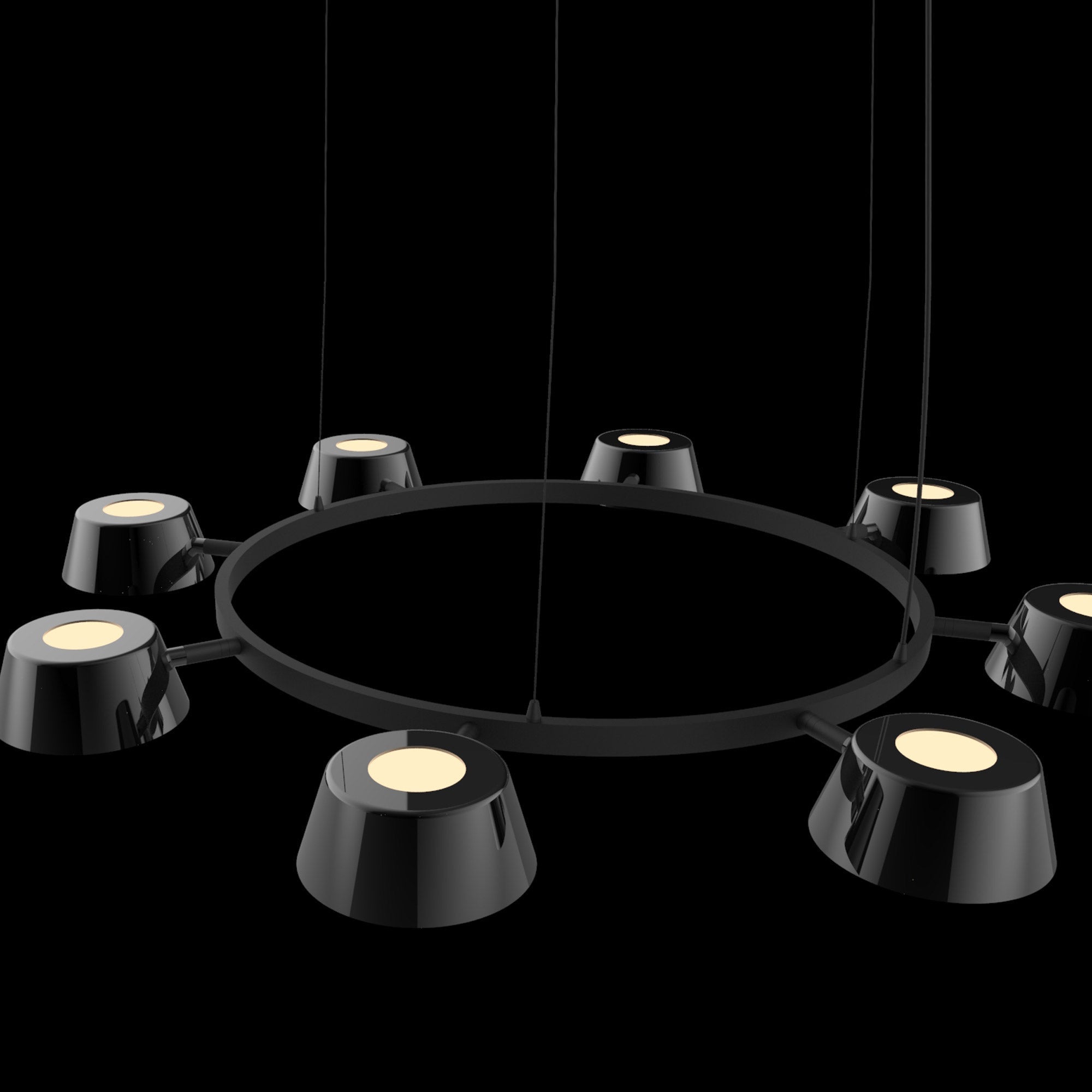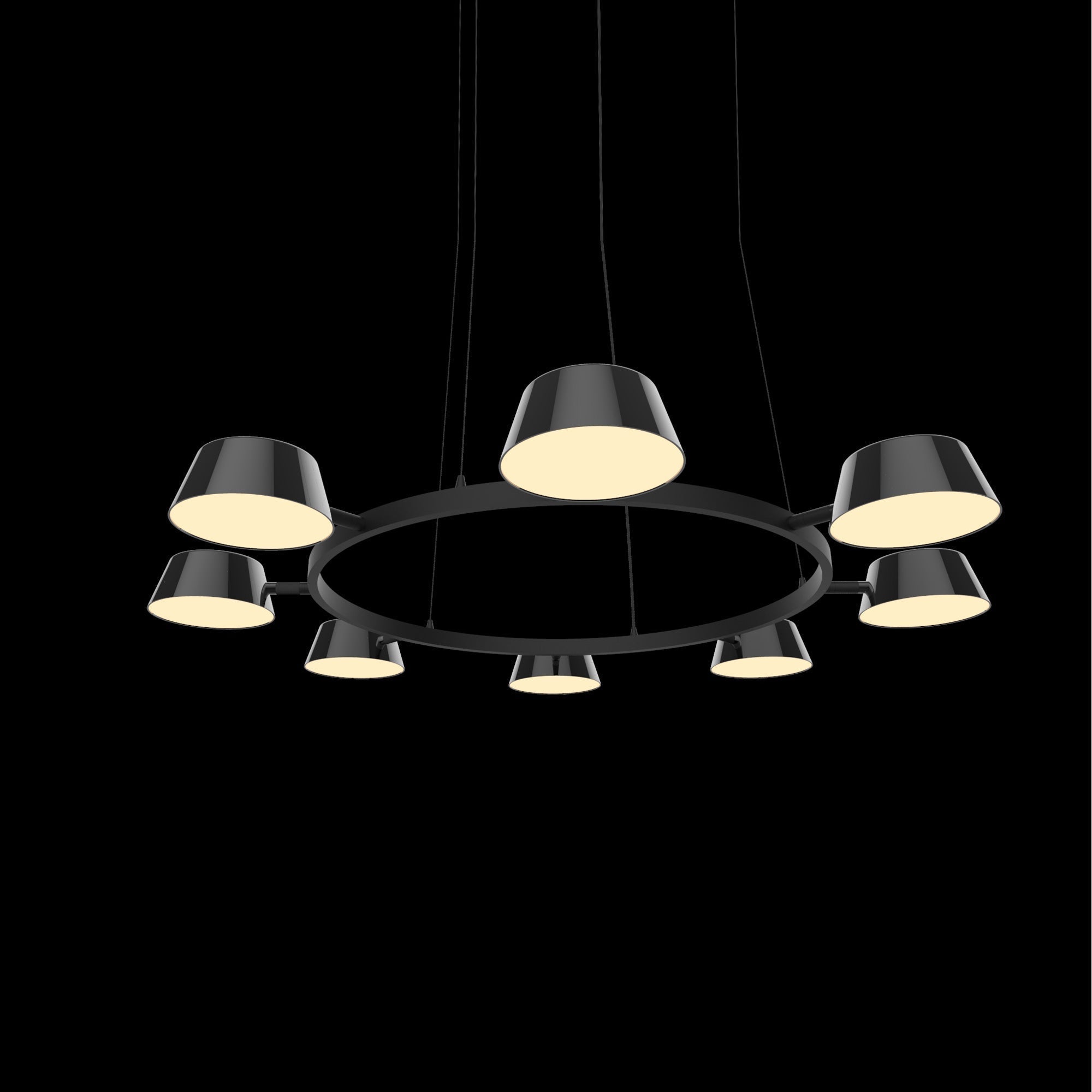 Deliver a festive mood and focal point to a kitchen or living space with the energy-efficient OLO LED Ring Pendant Light from Seed Design. Its charming circular frame hosts cup shades arranged carefully in alternating orientations, as glare-free lighting glows through diffusers placed to soften the visual impact.