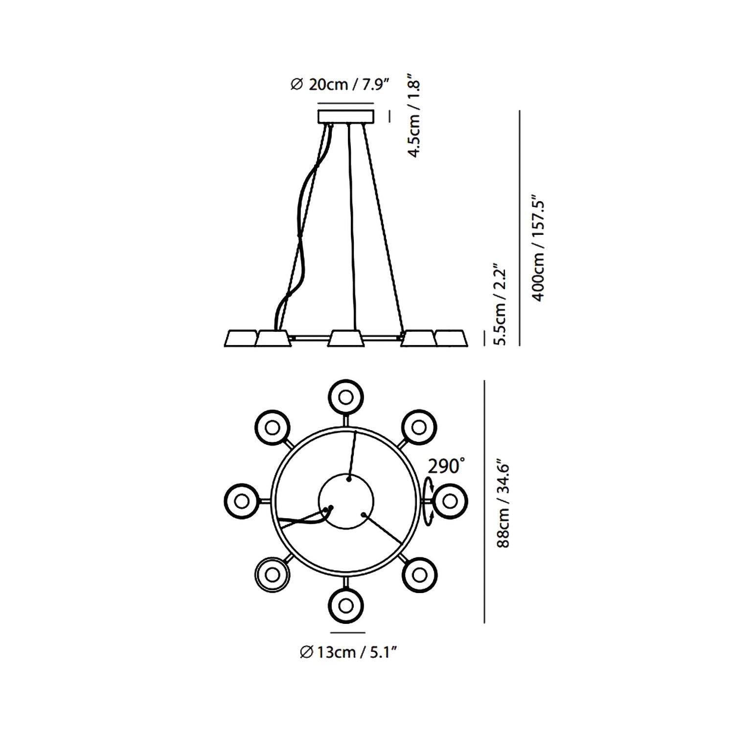 - Canopy: 7.9"D X 1.8"H