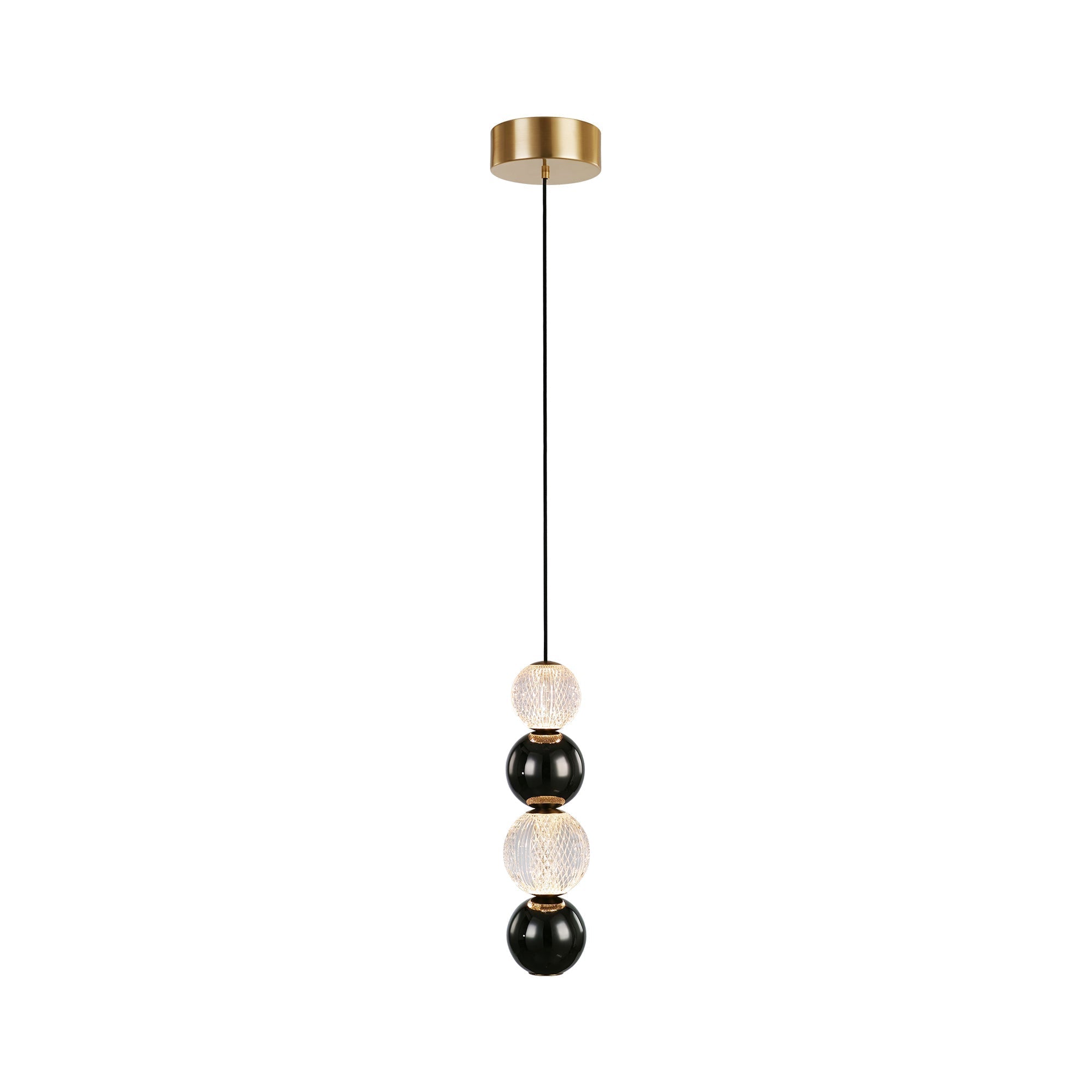 Rework the traditional beaded strand aesthetic in a chic light fixture perfect for crafting a dramatic look. The Onyx LED Pendant Light from Alora Lighting features a vertical configuration of alternately sized spherical elements with detailed cuts reflecting light brilliantly. Gleaming metal framing and accents embellish this fixture with extreme elegance.