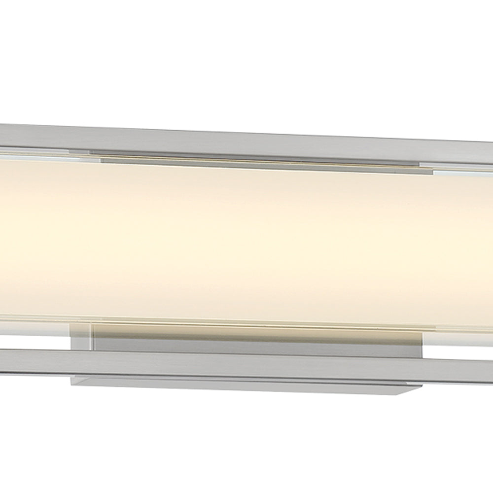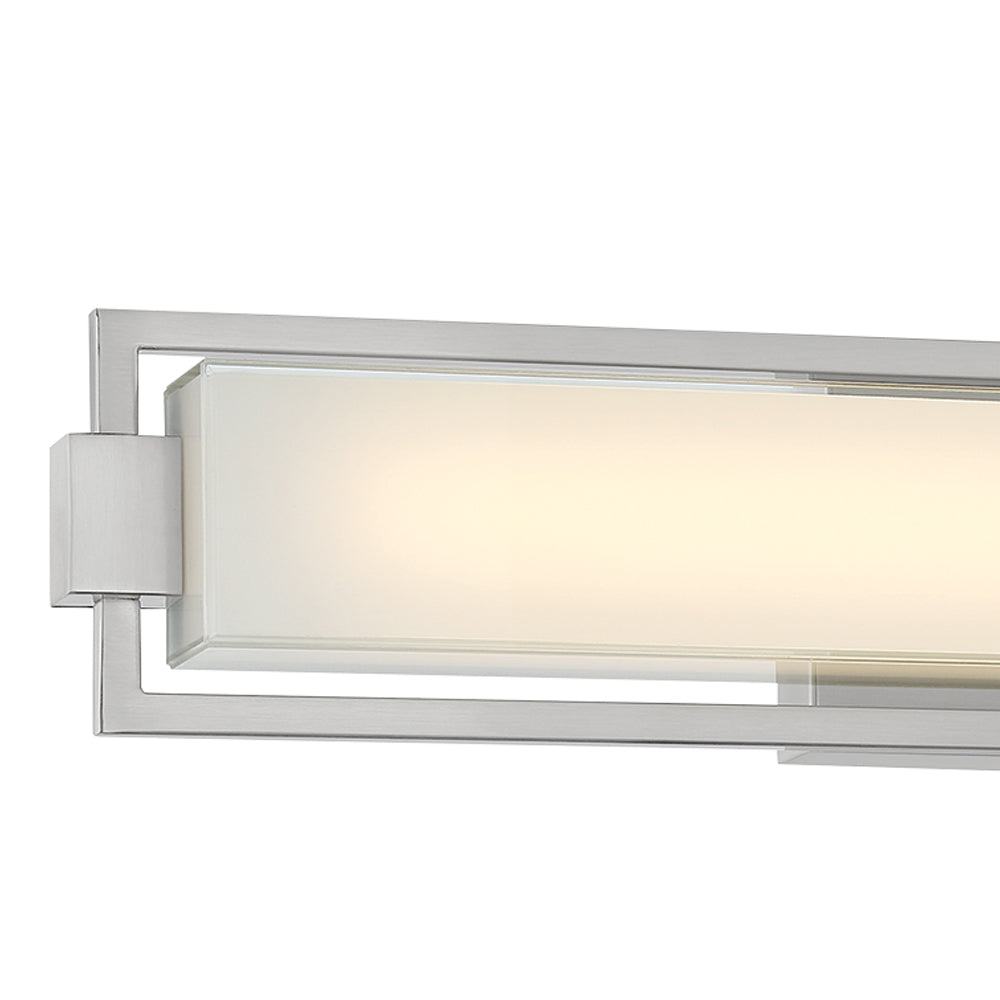 Nostalgic design features lean retro and charming in the Opening Act LED Bath Wall Light from George Kovacs. Simplicity with a dose of style reflects a chic look to a fixture with basic silhouetting and construction of brushed nickel finish metal framing with a frosted aquarium glass diffuser. This energy-efficient bath fixture adds calming influence and easy ambiance.