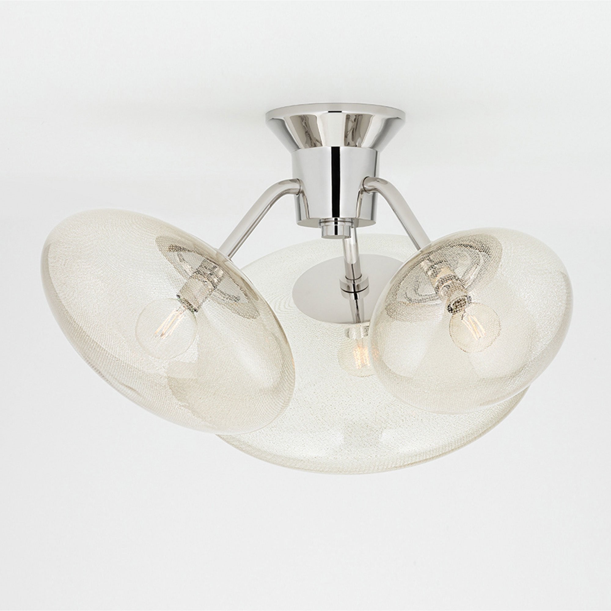 Unique, textured shades give the Opera Semi-Flush Mount Ceiling Light from Hudson Valley Lighting a daringly distinct look.