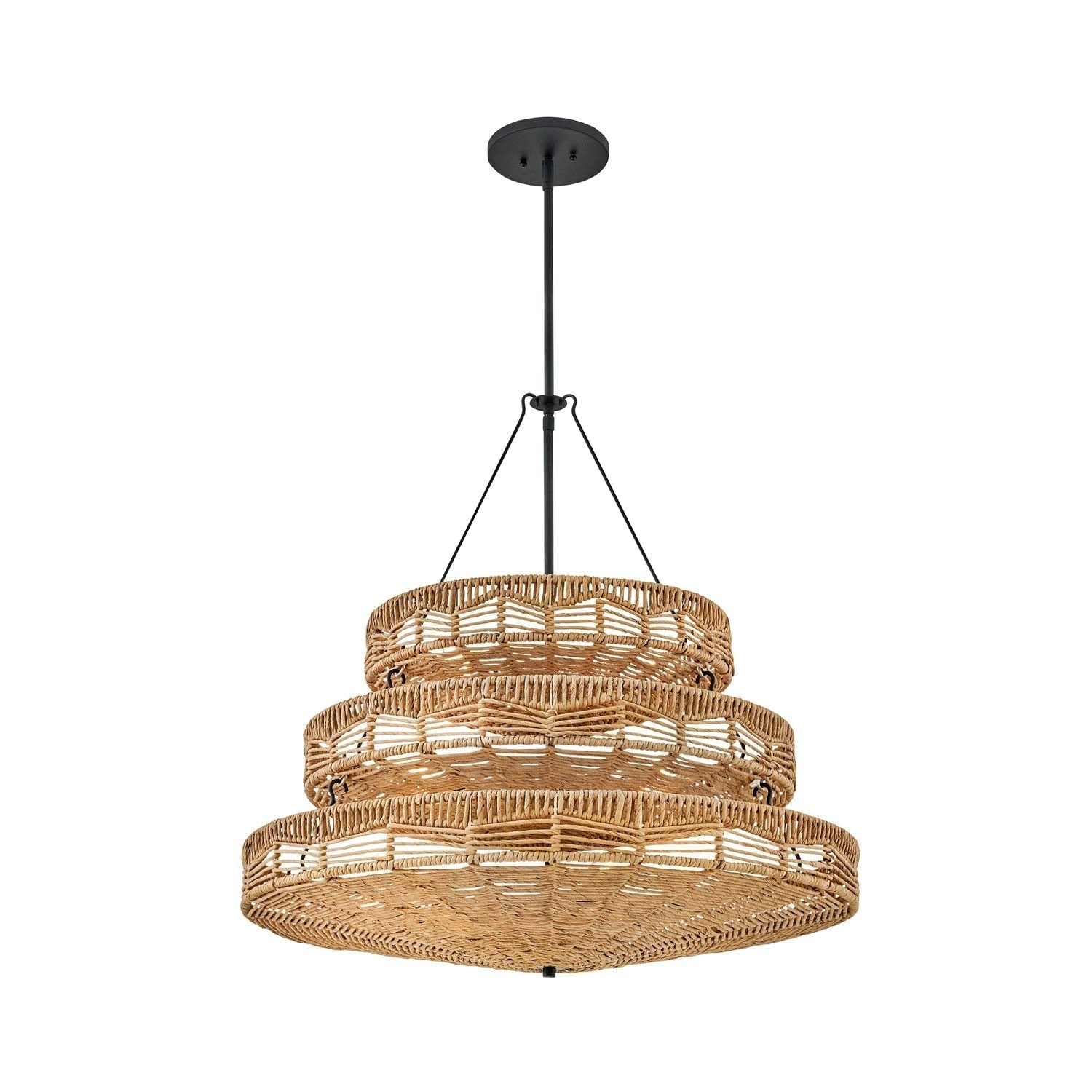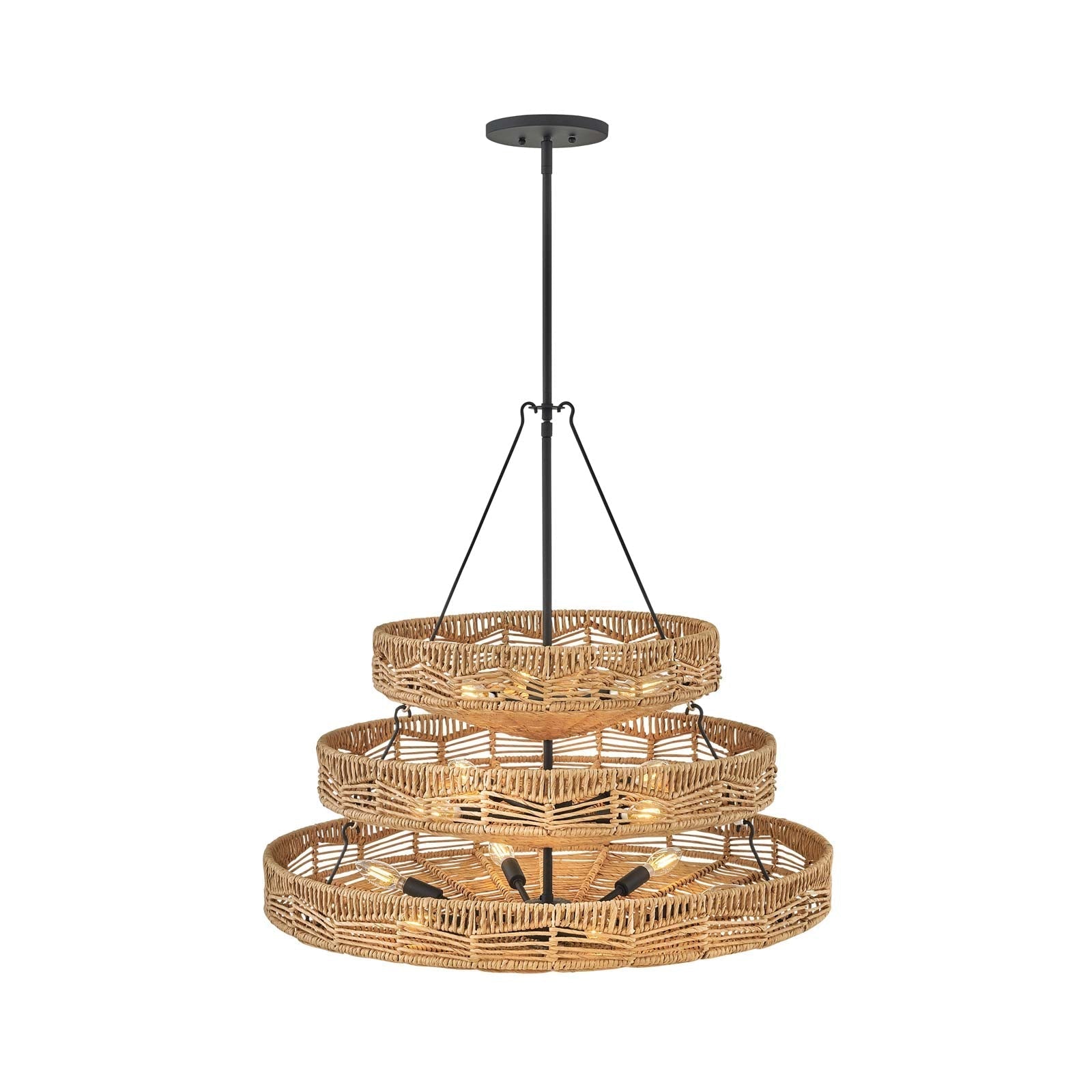 Gorgeous handwoven shades are stacked to create the tiered structure of the Ophelia Chandelier from Hinkley. A beautiful centerpiece, the chandelier offers organic elegance with its natural finish and basket-style shades. A graduated design and black finish frame complete the look with a chic sense of structure.