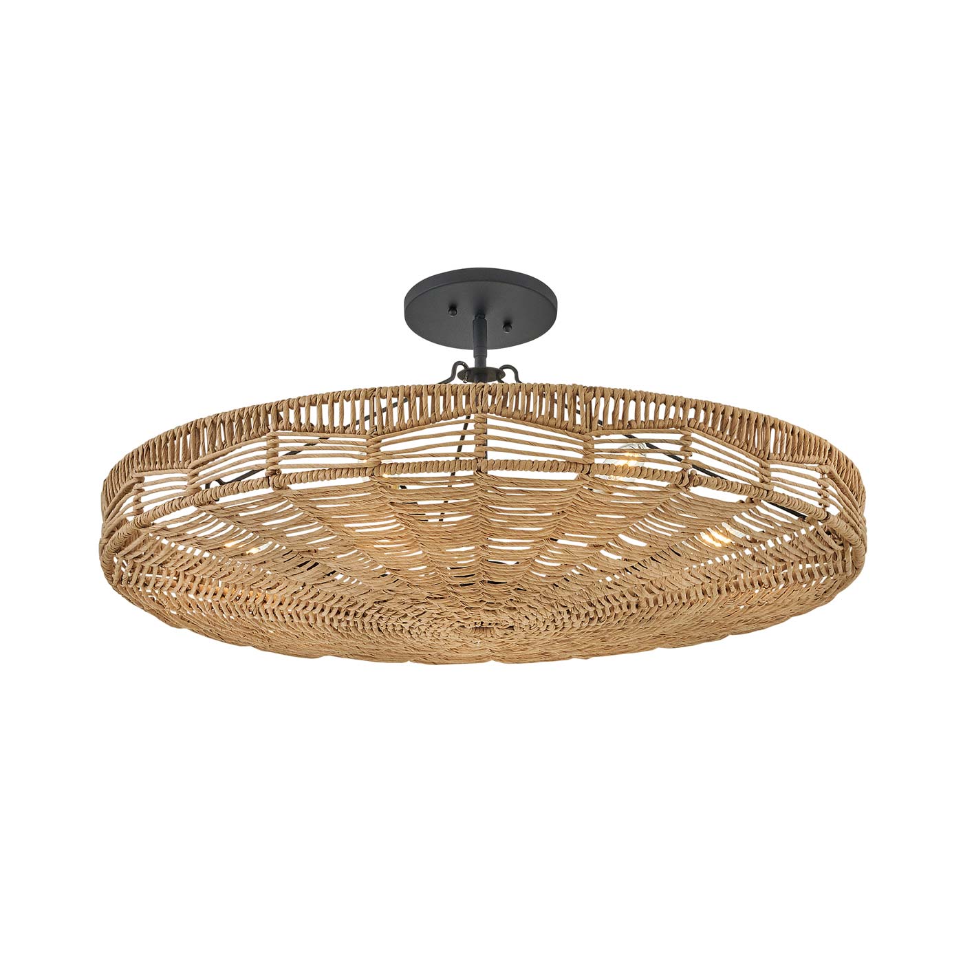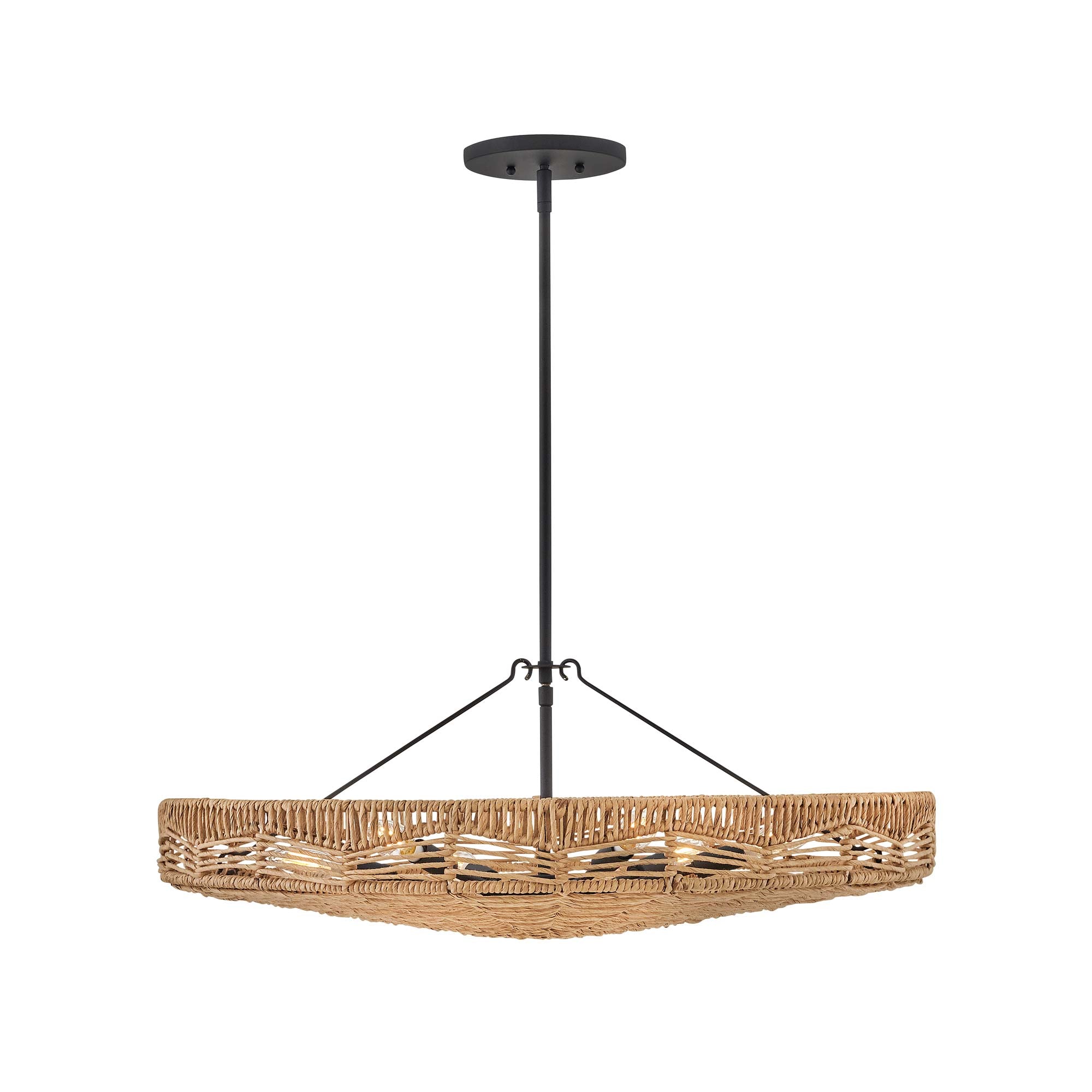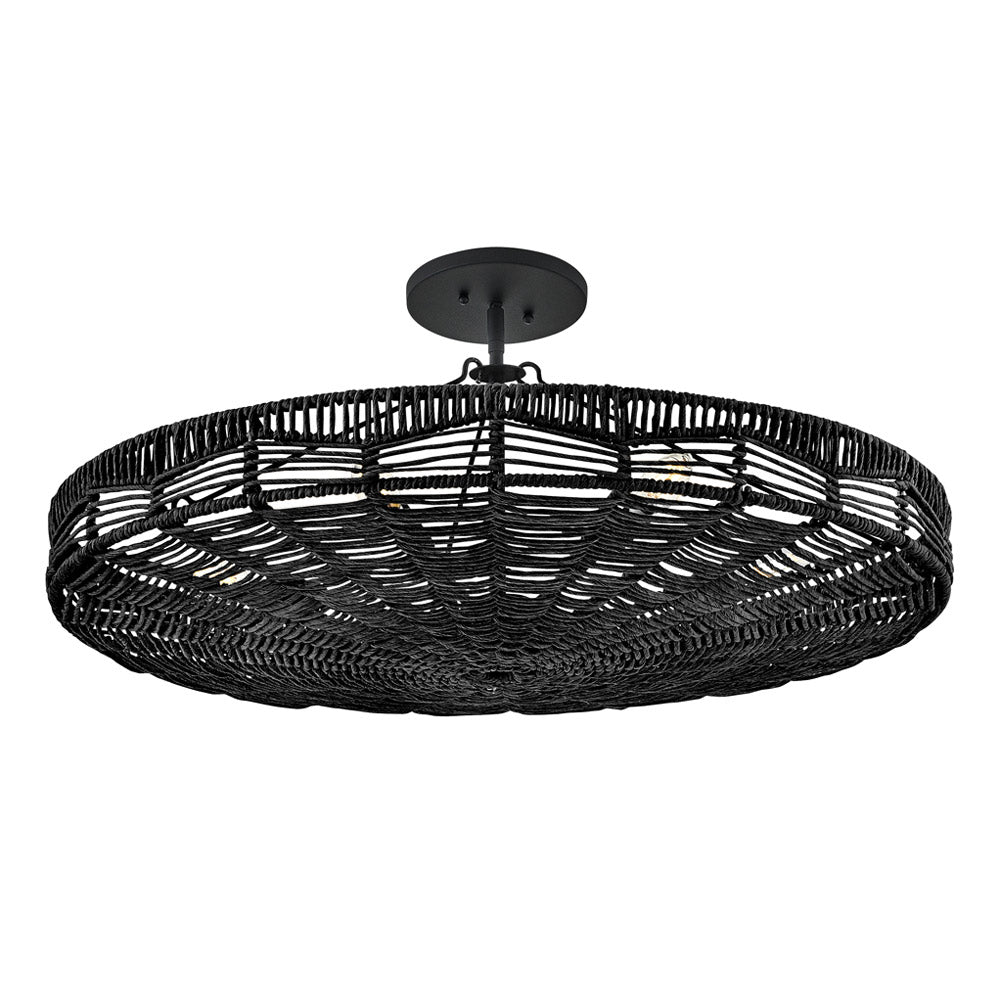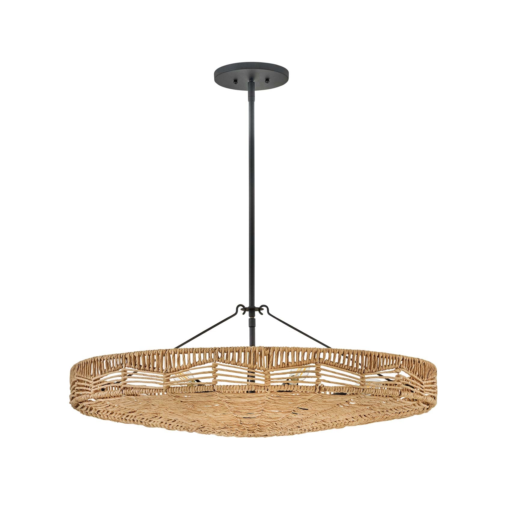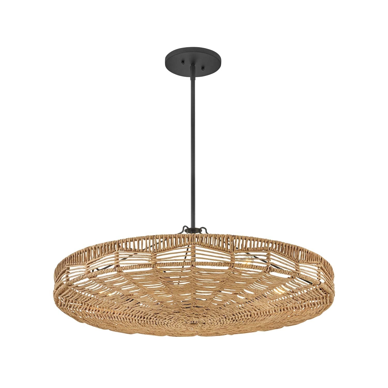 Inspired by native artistry, the Ophelia Pendant Light from Hinkley delivers organic charm and texture to your kitchen or living area. The convertible design boasts a basket-inspired, handwoven shade, through which light glows to create an inviting aura. A black finish frame adds a chic finishing touch.