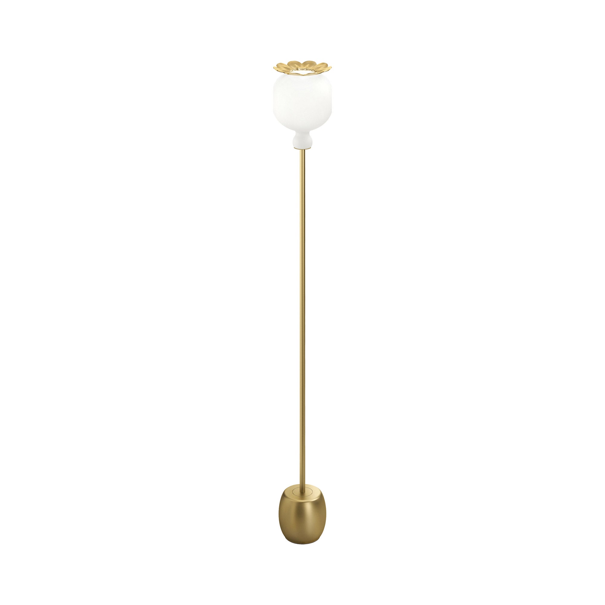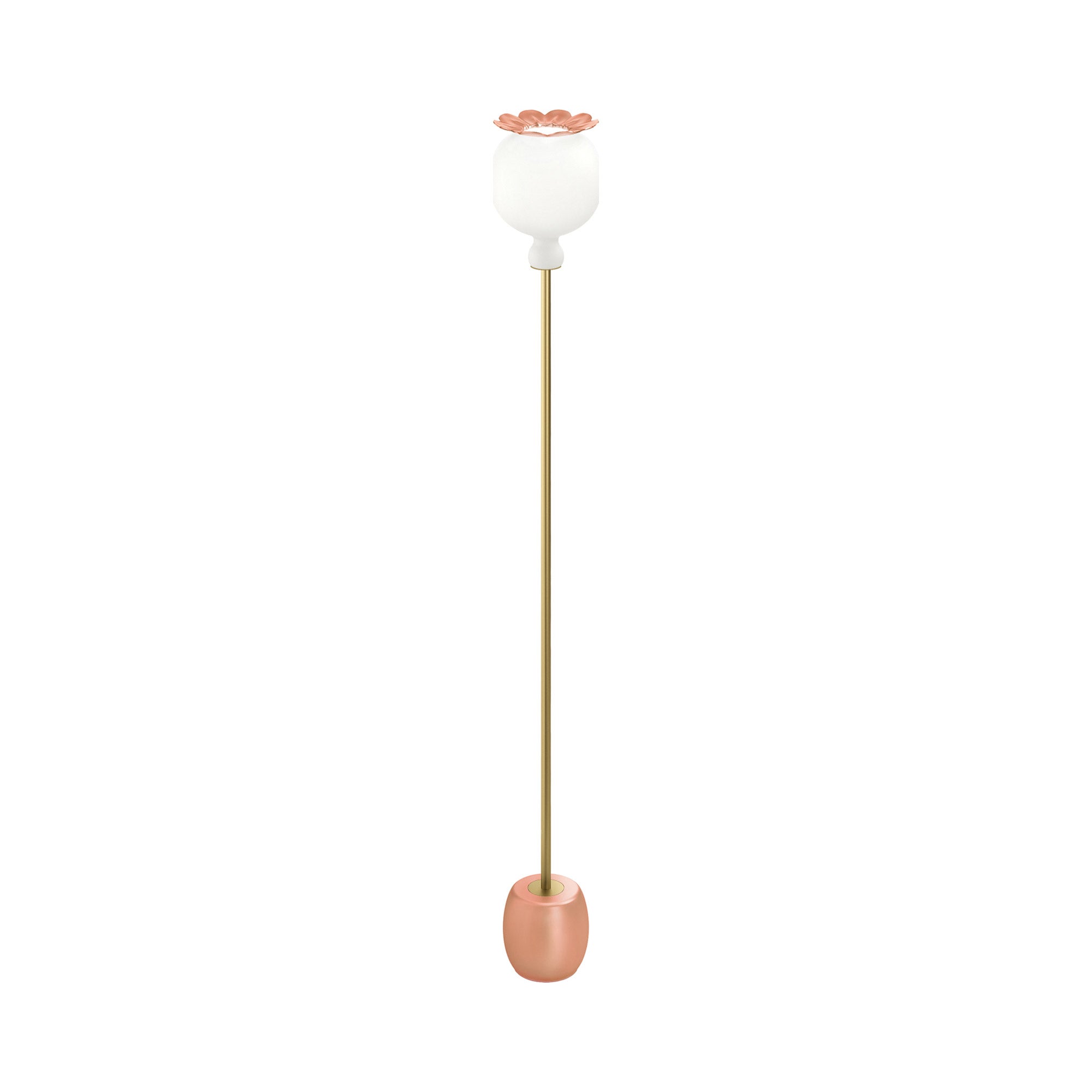 Boutique ambiance weaves artistry and minimalism into a single light source, capturing an inspired feel to the Opyo Floor Lamp from KDLN. Part vintage and part Art Deco, this tasteful lamp reflects a mix of shape variables working together to create an original aesthetic. Suggesting a floral bud motif, its rounded opal glass diffuser is crowned by a floral-like metal ring and set atop a matching metal stem resting in a profound barrel-inspired base.