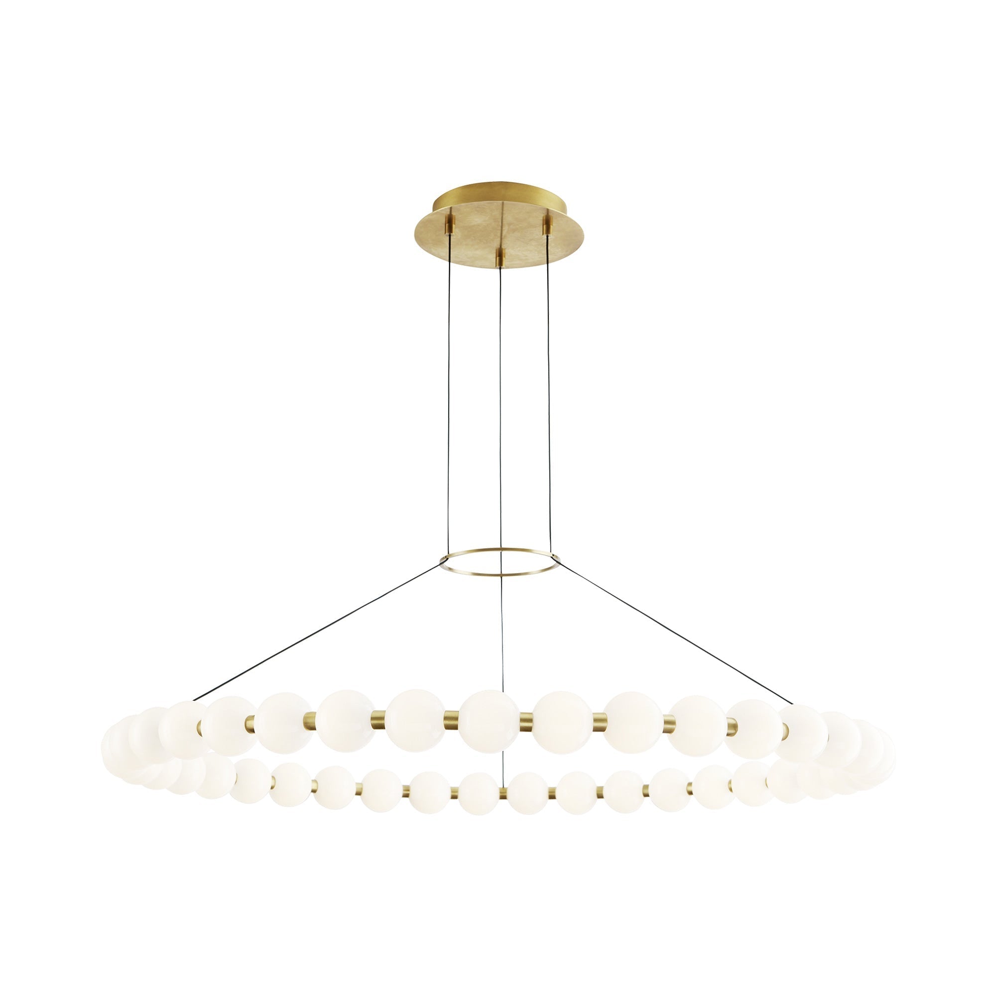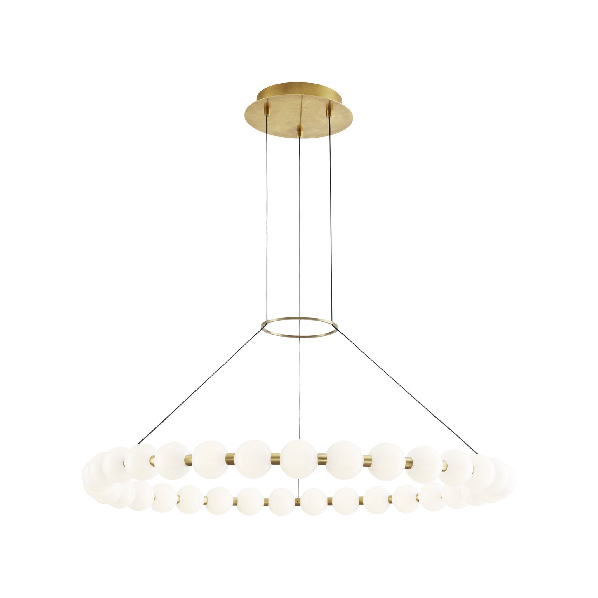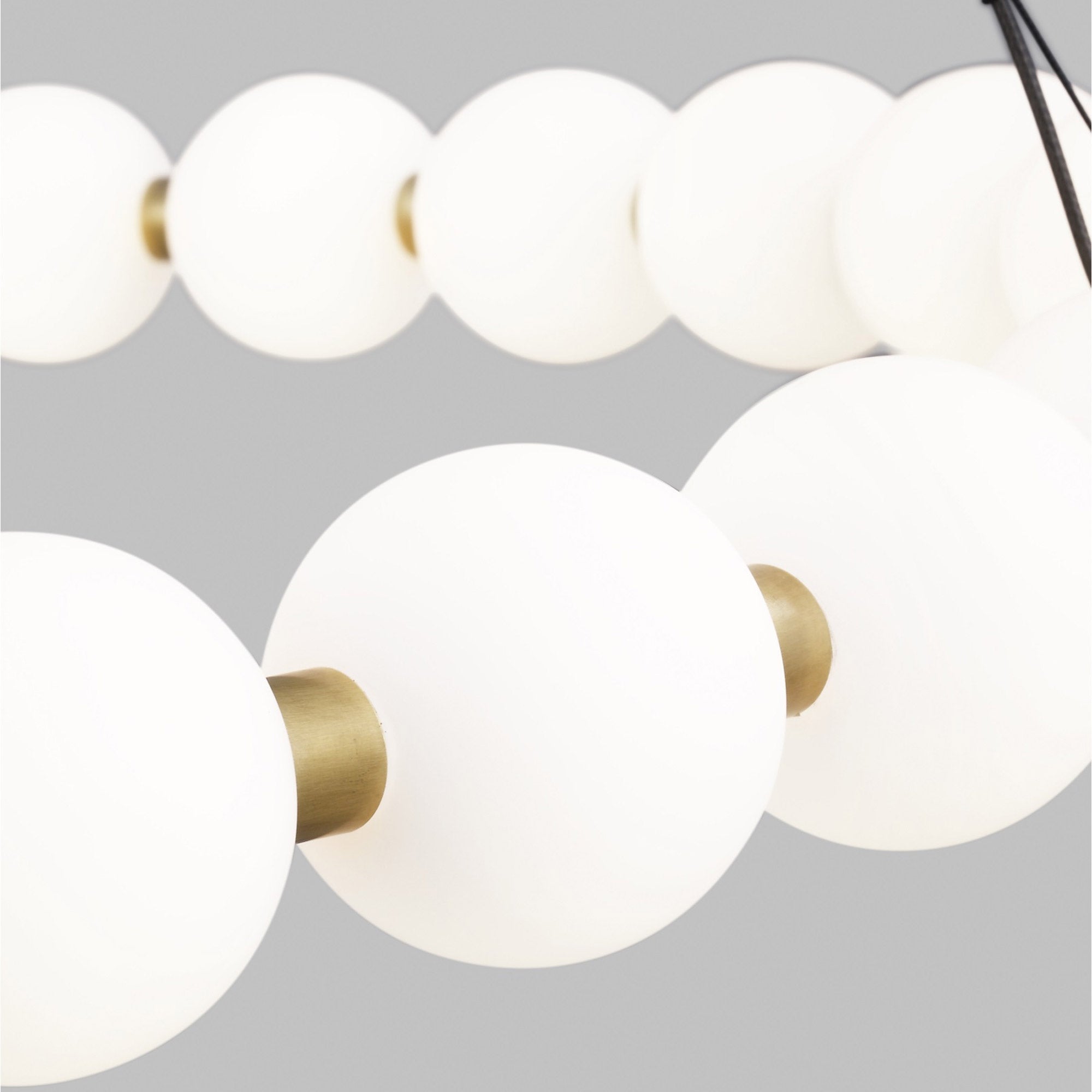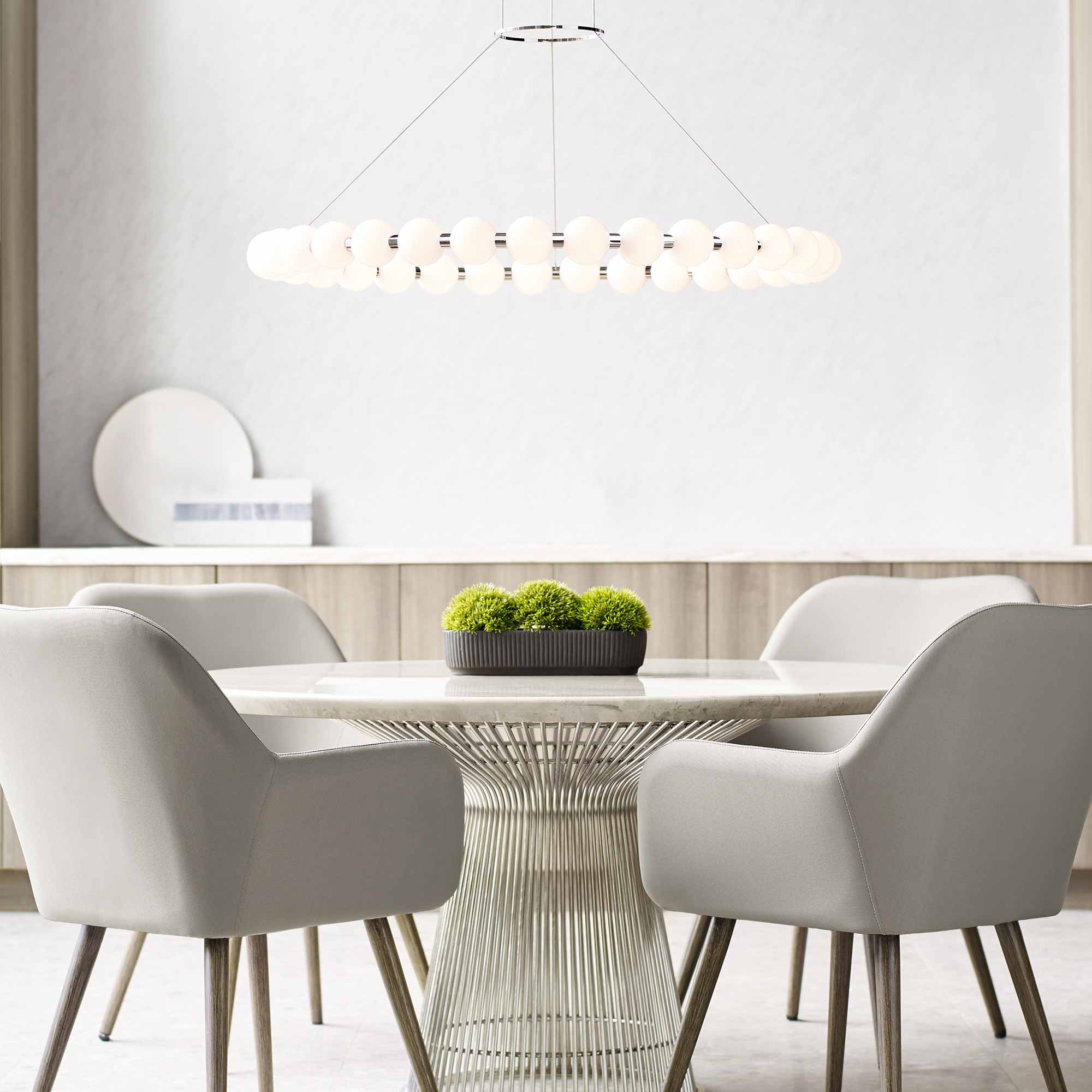 Blending elements of modern jewelry design with a classic ring silhouette, the Orbet LED Chandelier from Visual Comfort Modern is a gorgeous focal point over an entry or dining room. Creamy white milk glass orbs encircling a slim ring are precisely spaced to emulate pearls for a timeless design that resonates in modern living spaces. An understated canopy and trio of suspension cables echo the pendant's silhouette to bring additional character and flair.