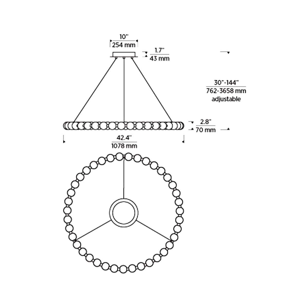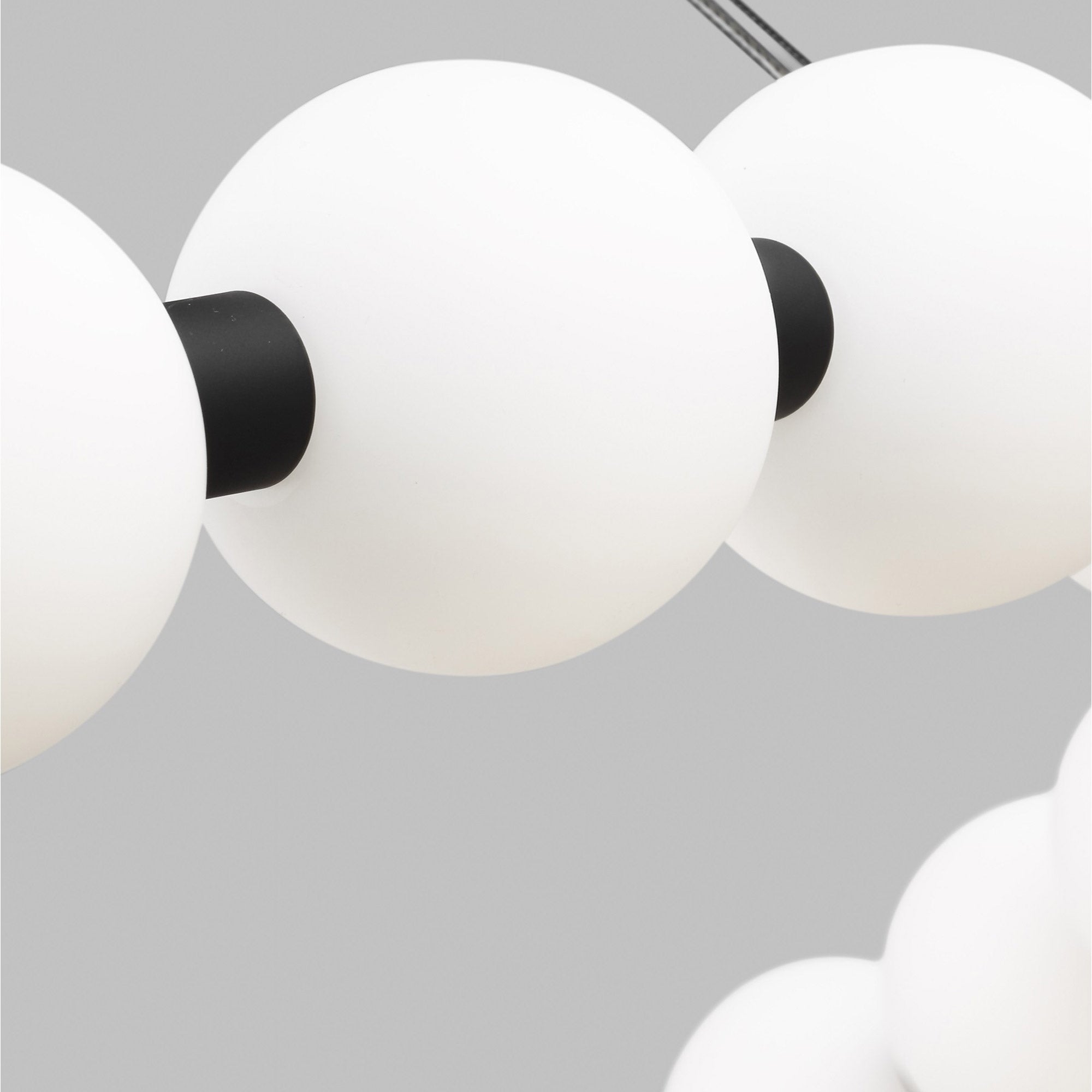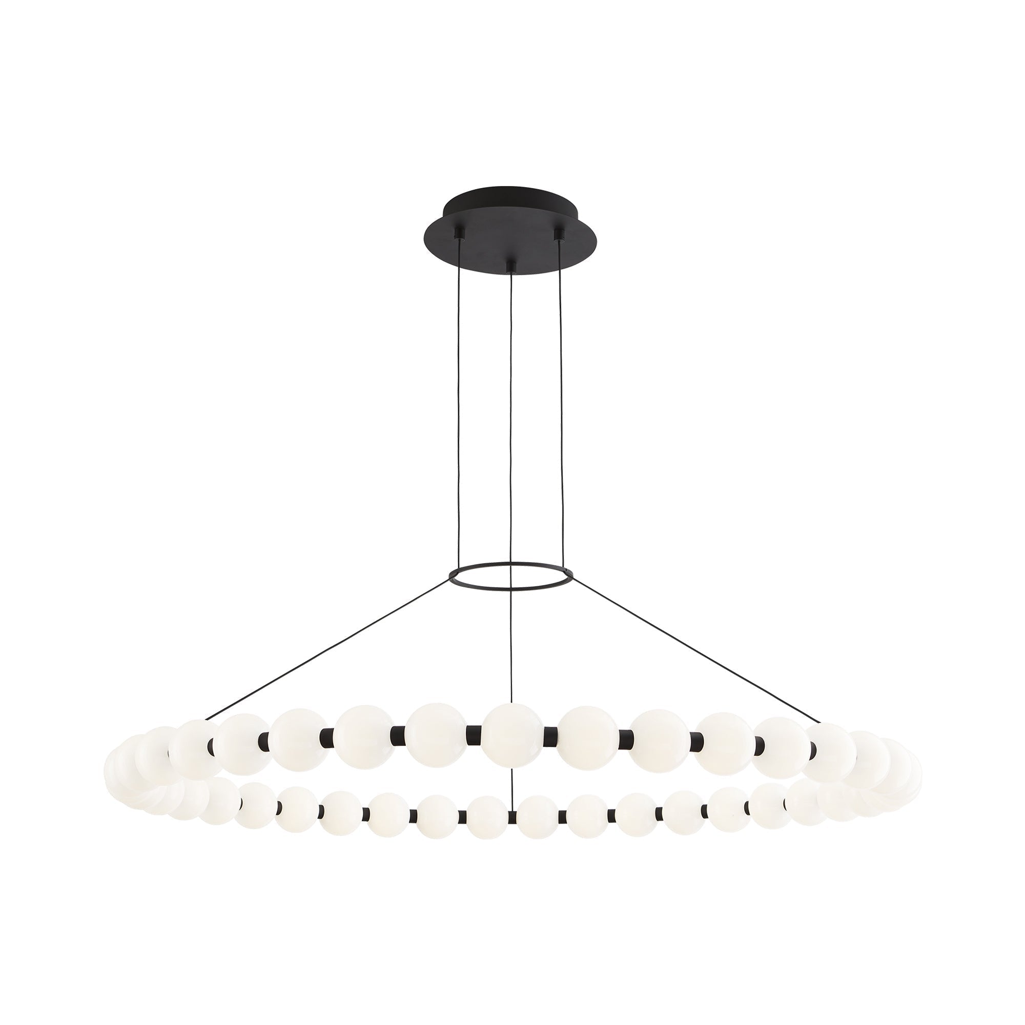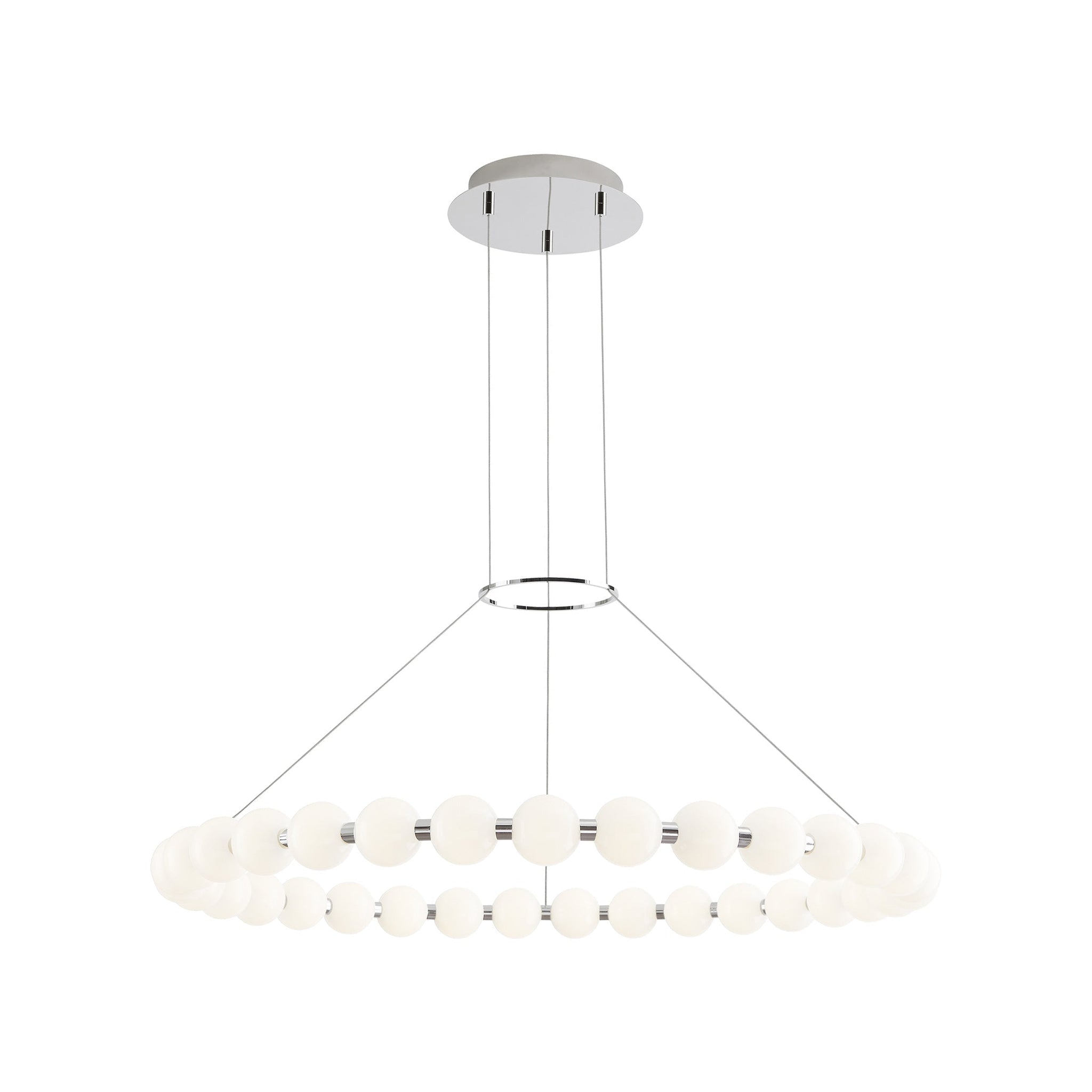 Blending elements of modern jewelry design with a classic ring silhouette, the Orbet LED Chandelier from Visual Comfort Modern is a gorgeous focal point over an entry or dining room. Creamy white milk glass orbs encircling a slim ring are precisely spaced to emulate pearls for a timeless design that resonates in modern living spaces. An understated canopy and trio of suspension cables echo the pendant's silhouette to bring additional character and flair.