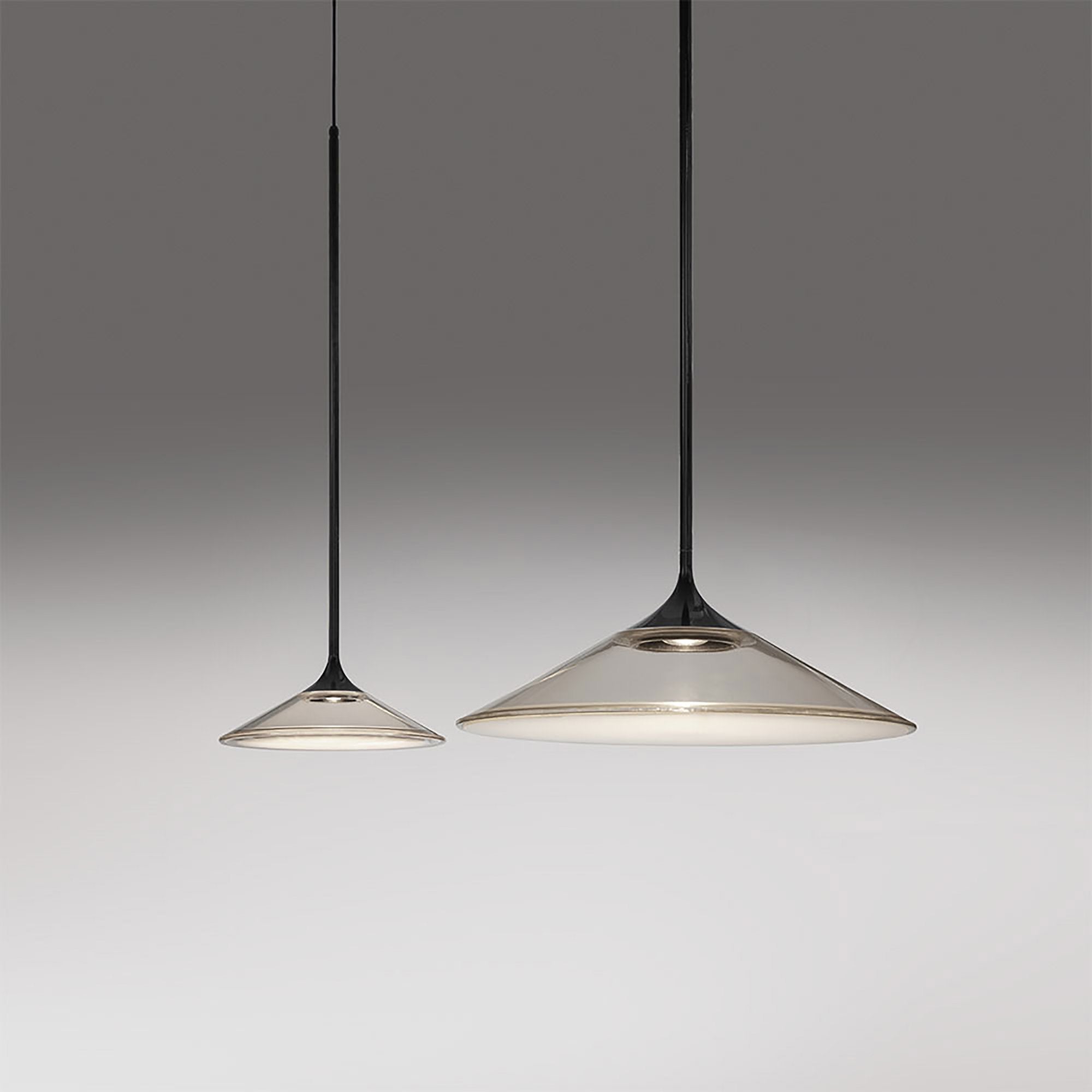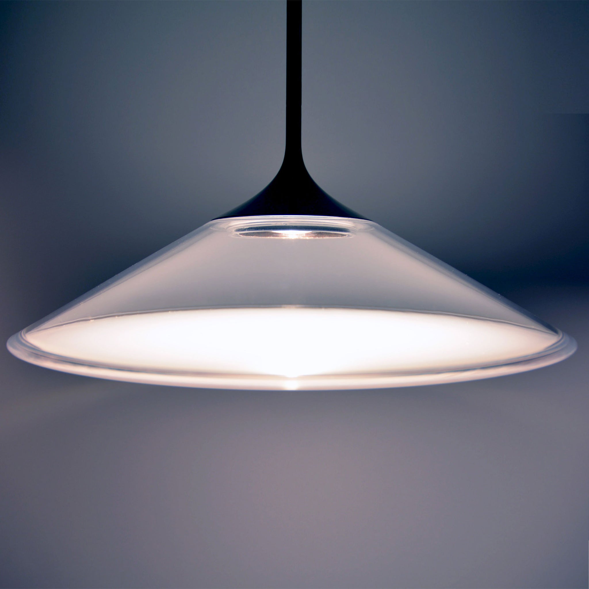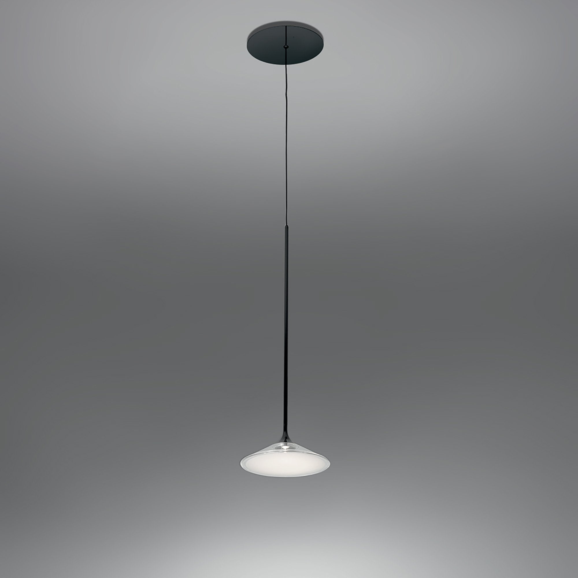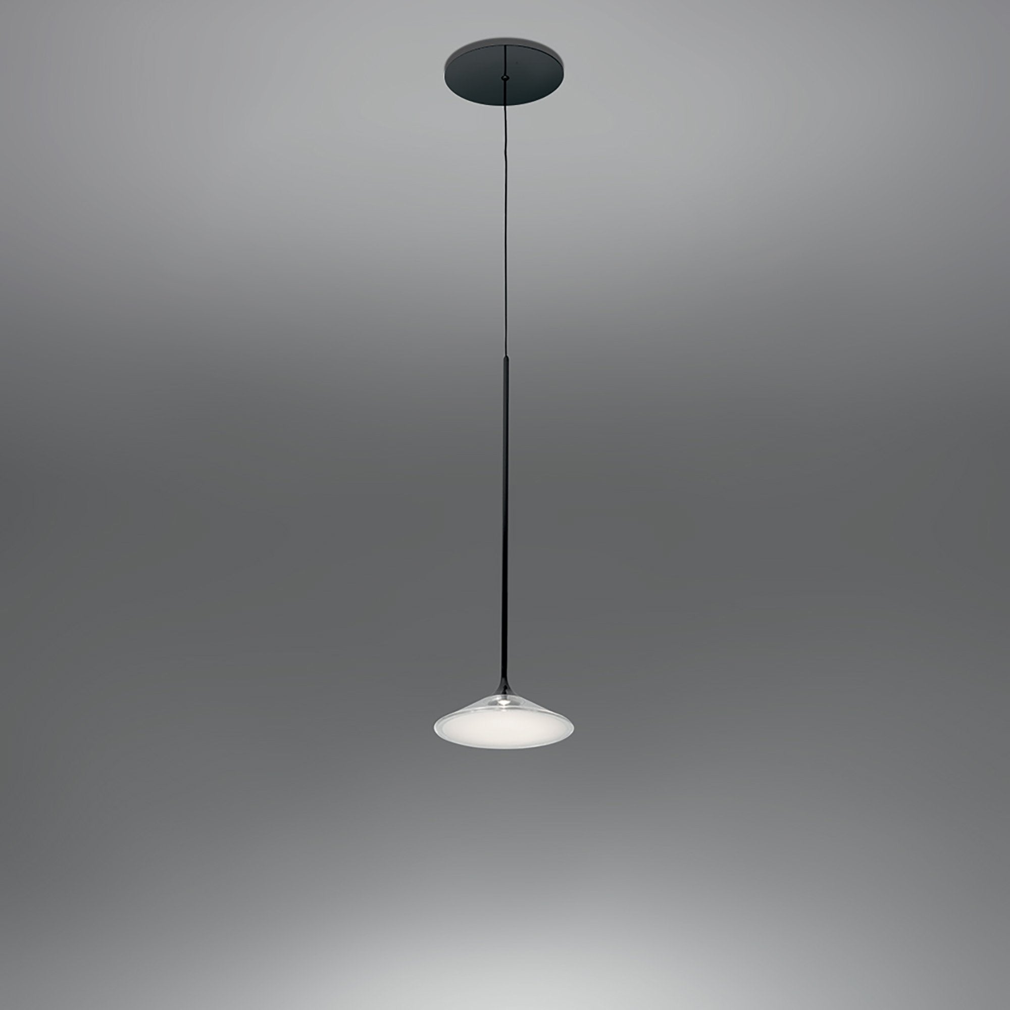 Softly evocative of a 1950's UFO, the shade of the Orsa LED Pendant Light from Artemide glows beautifully when lit.