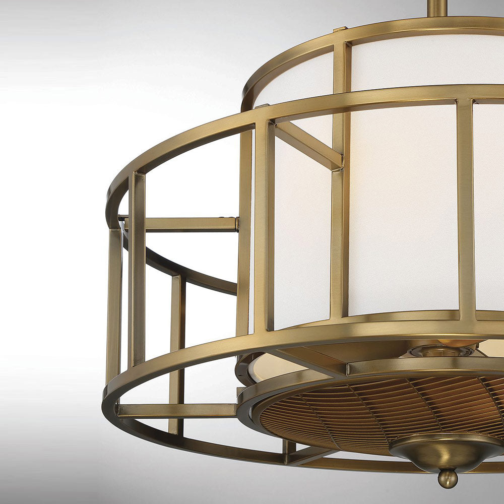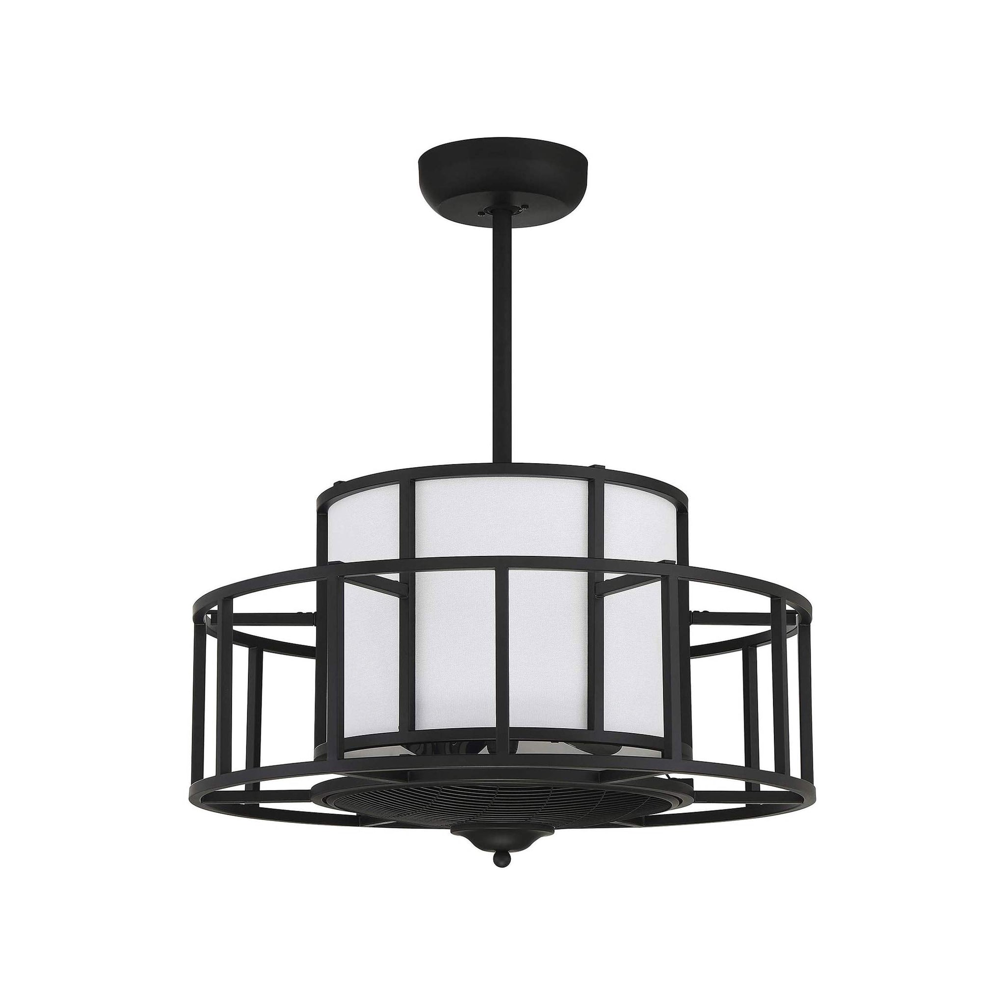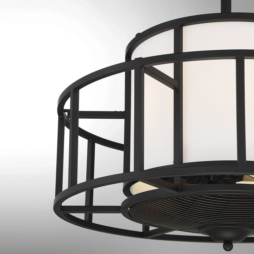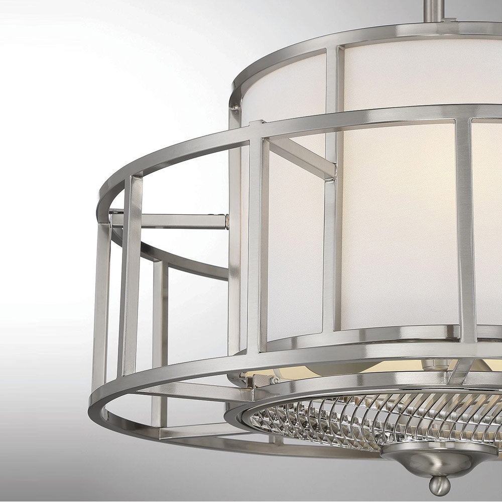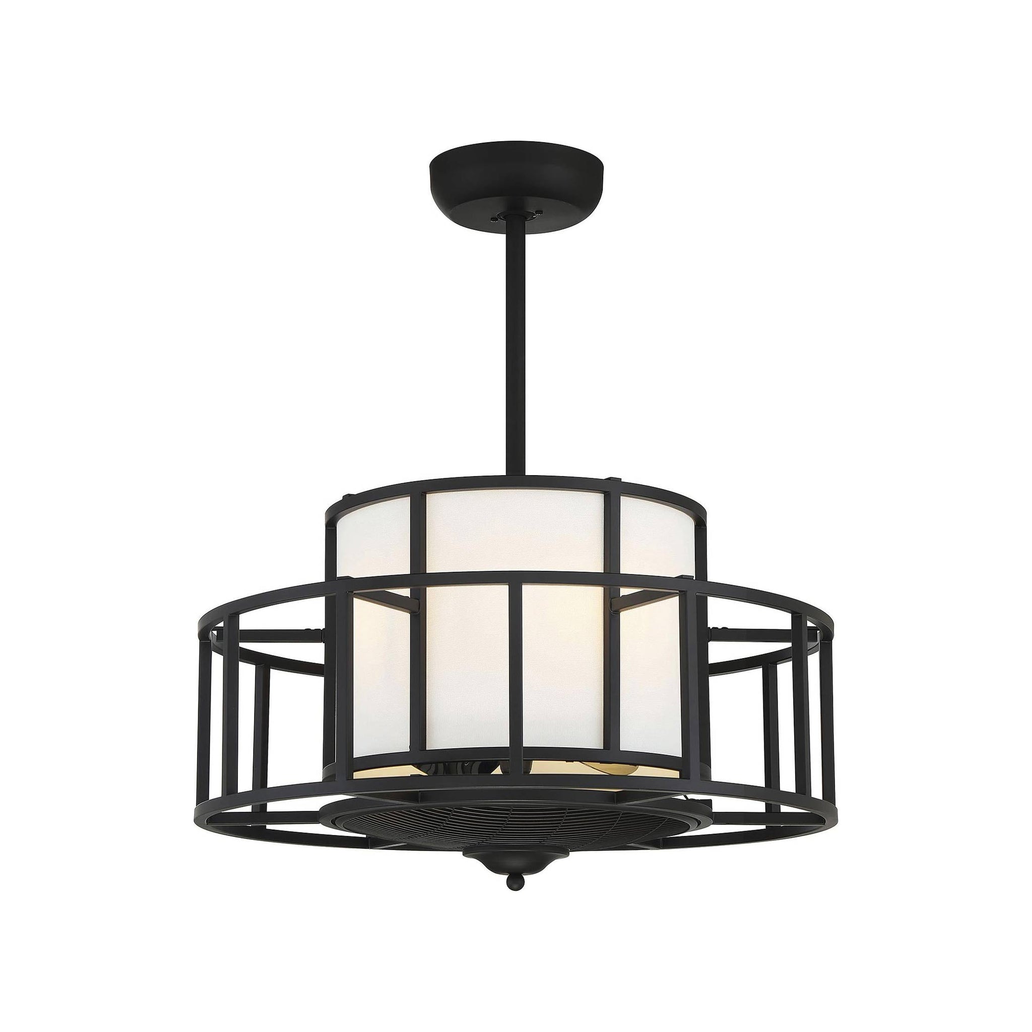 Festive with a hybrid look of industrial and modern, the Oslo Fan D'Lier from Savoy House conquers two quests in one as it offers welcomed air circulation as well as ambient lighting. A striking cage-like dual metal frame joins a fabric shade that filters light spectacularly. A hidden ceiling fan improves room conditions with fresh breezes.