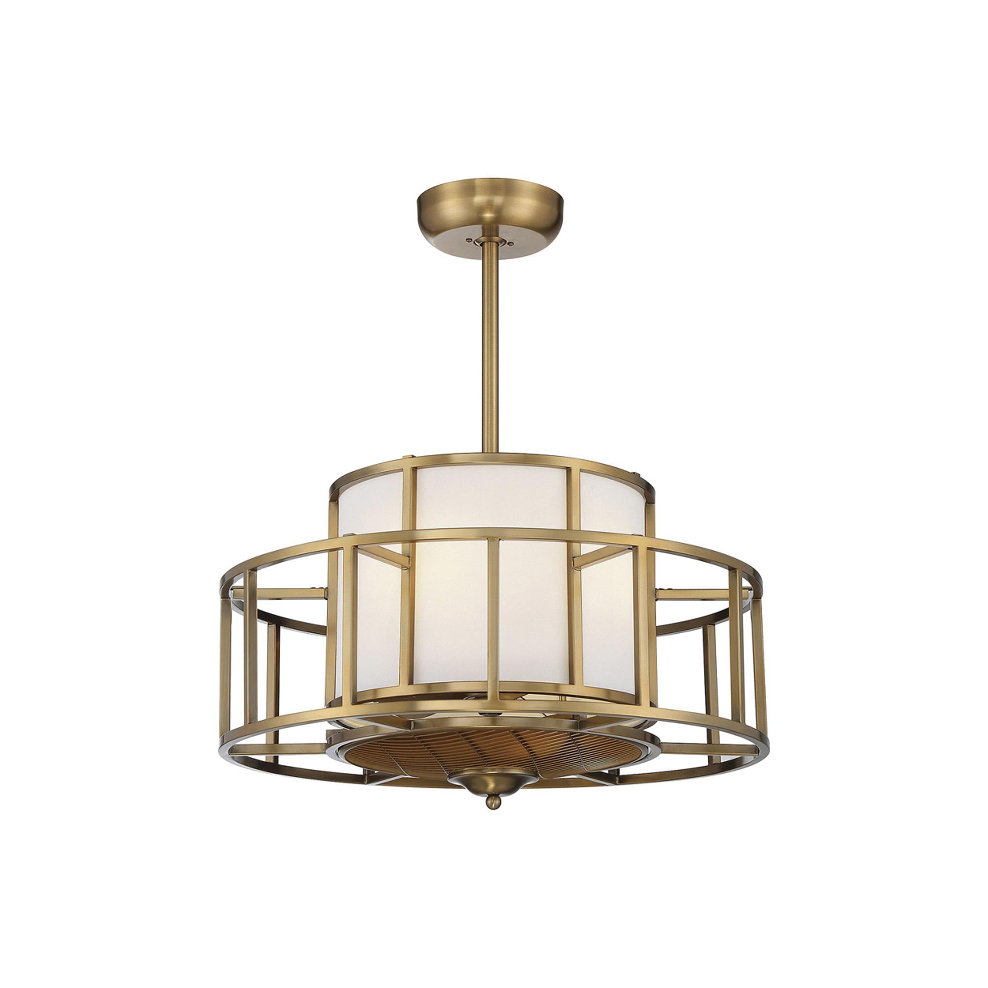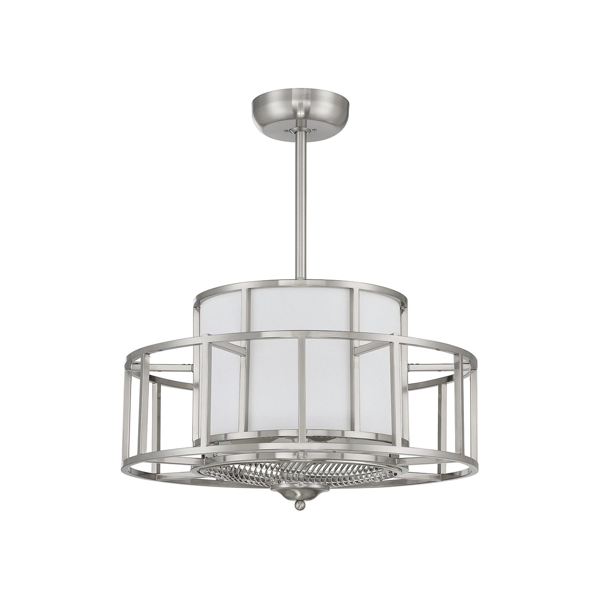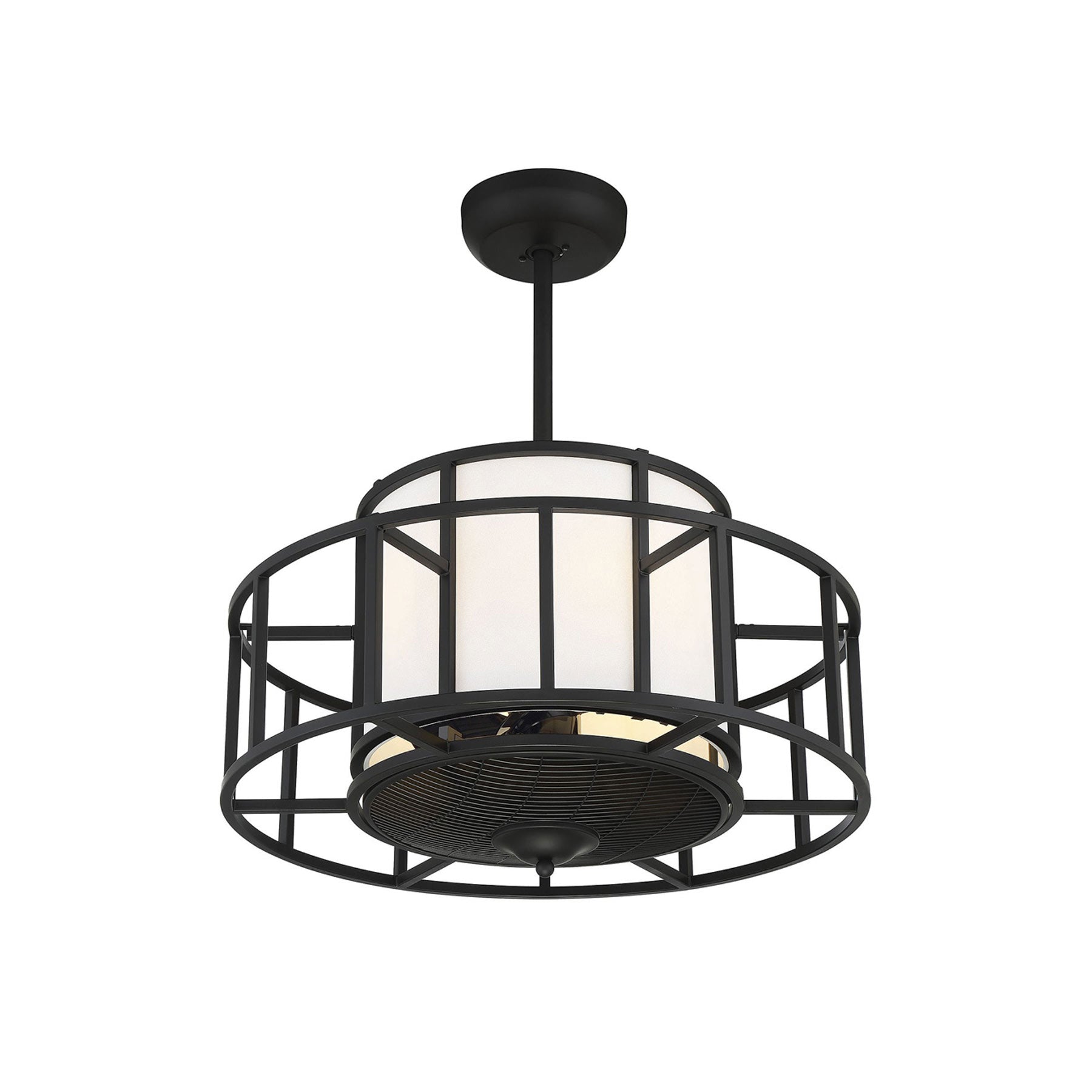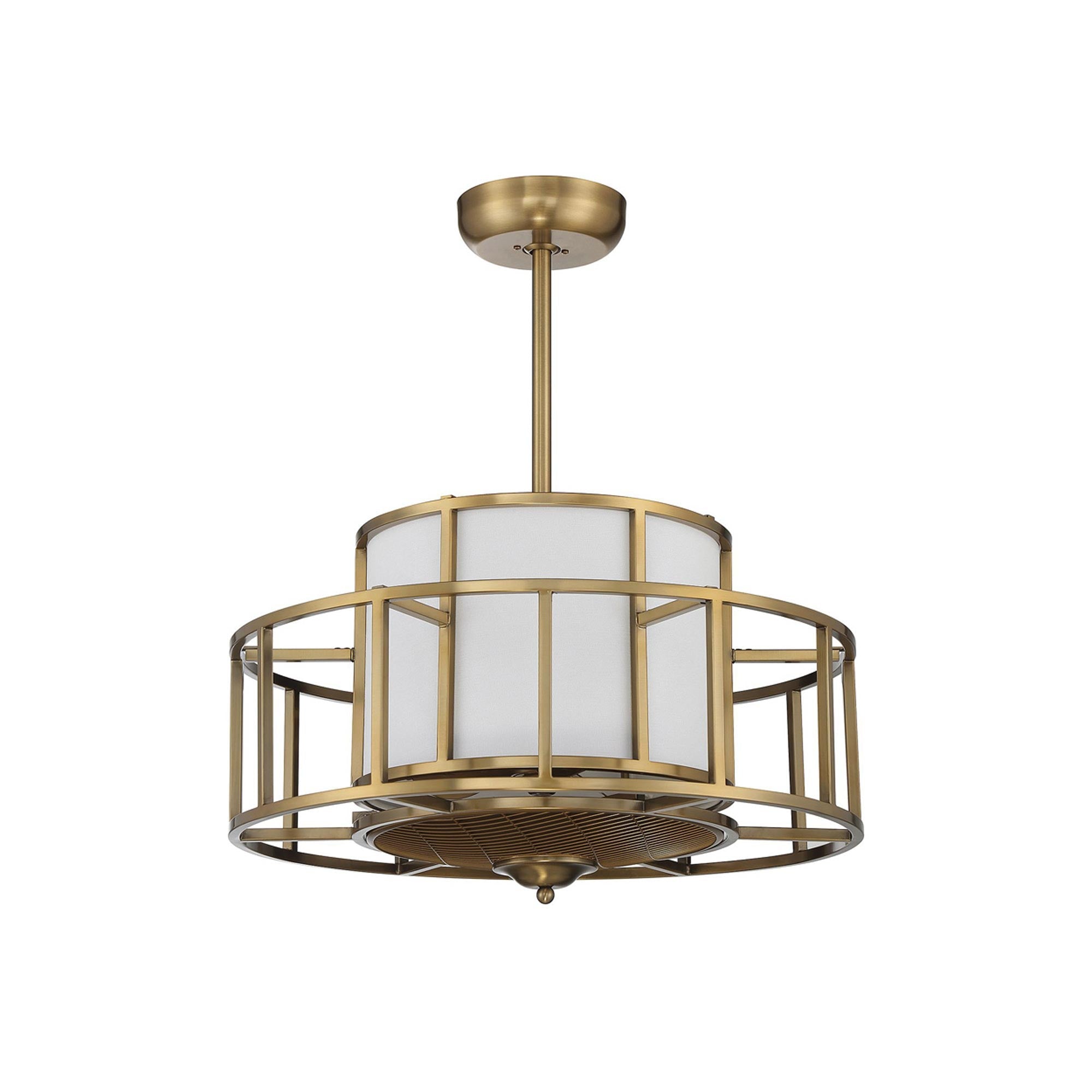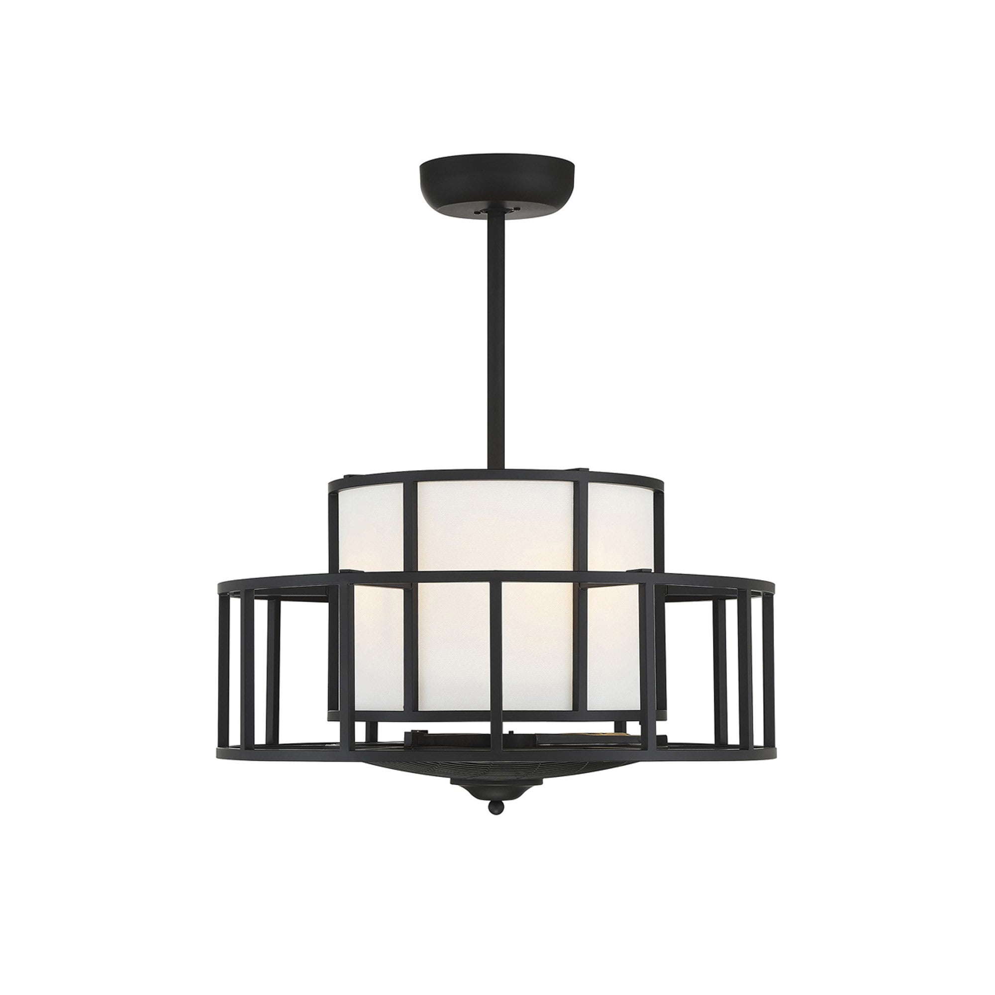 Festive with a hybrid look of industrial and modern, the Oslo Fan D'Lier from Savoy House conquers two quests in one as it offers welcomed air circulation as well as ambient lighting. A striking cage-like dual metal frame joins a fabric shade that filters light spectacularly. A hidden ceiling fan improves room conditions with fresh breezes.