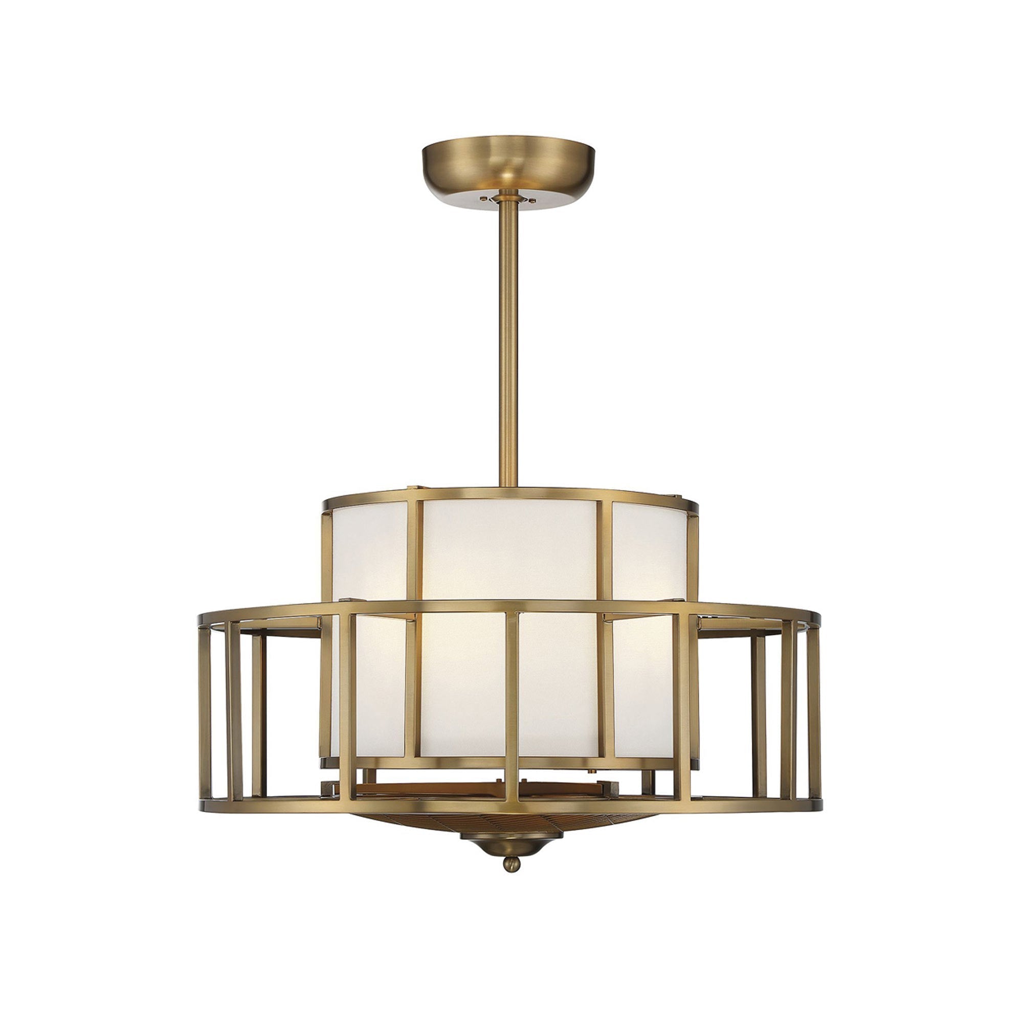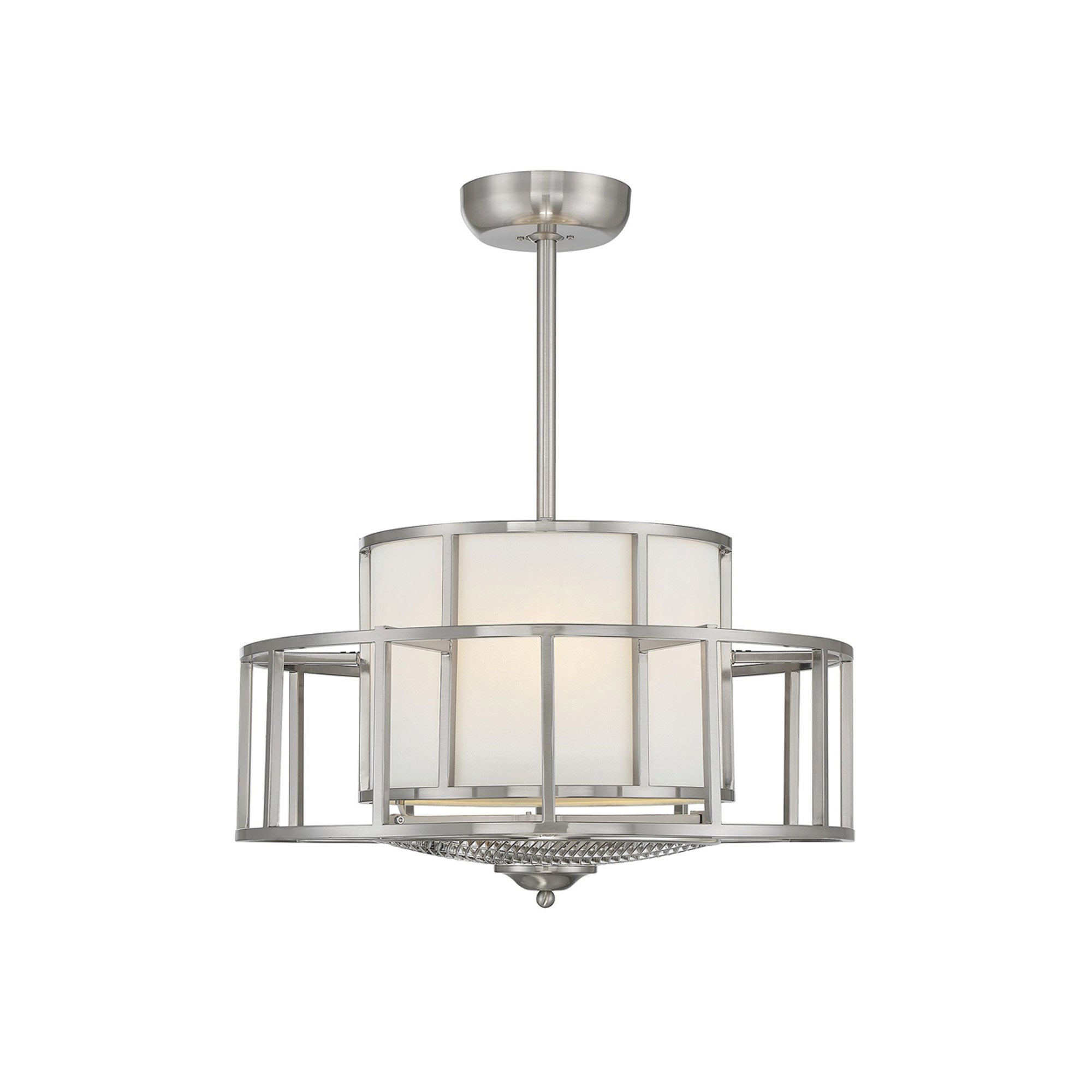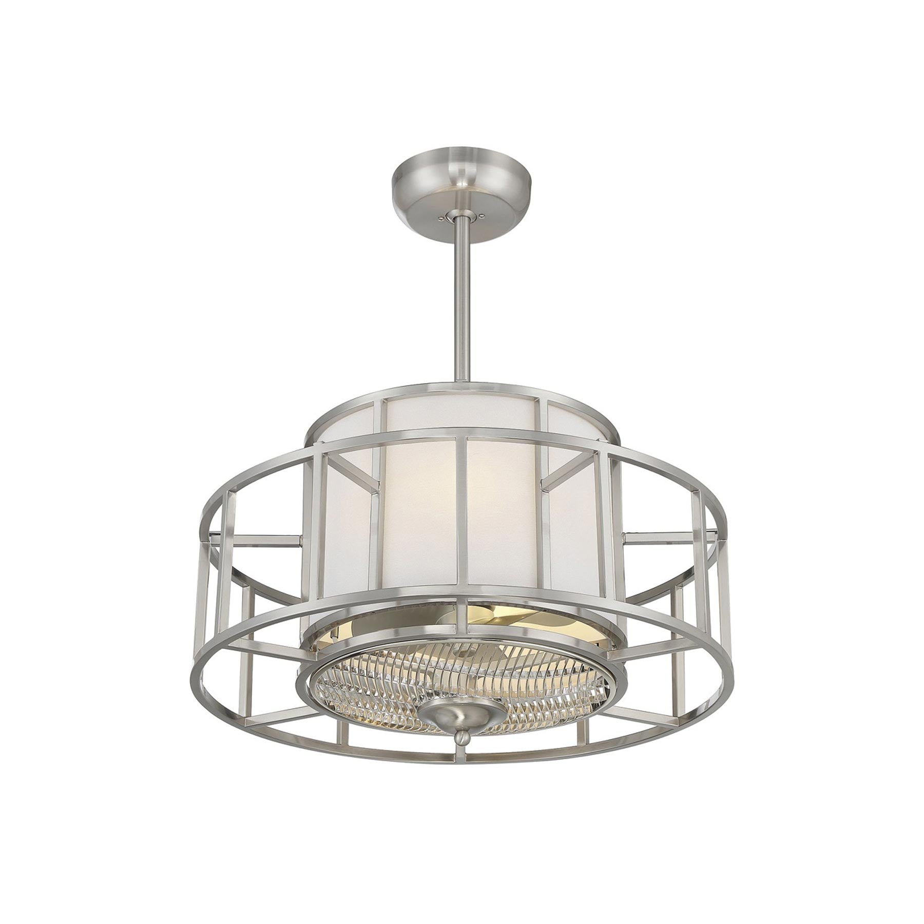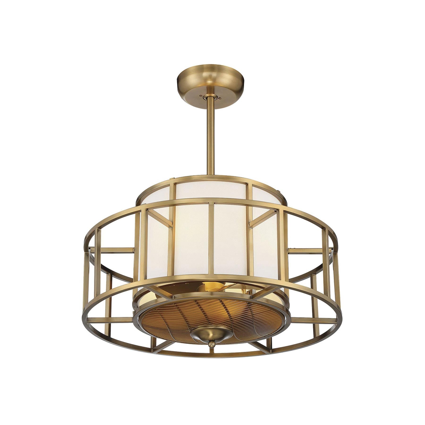 Festive with a hybrid look of industrial and modern, the Oslo Fan D'Lier from Savoy House conquers two quests in one as it offers welcomed air circulation as well as ambient lighting. A striking cage-like dual metal frame joins a fabric shade that filters light spectacularly. A hidden ceiling fan improves room conditions with fresh breezes.