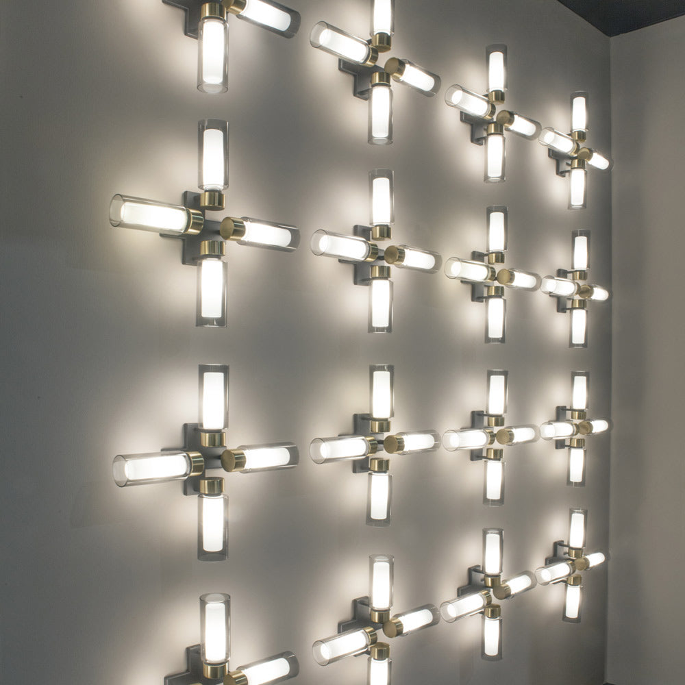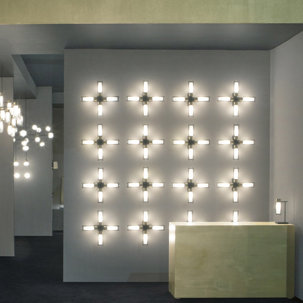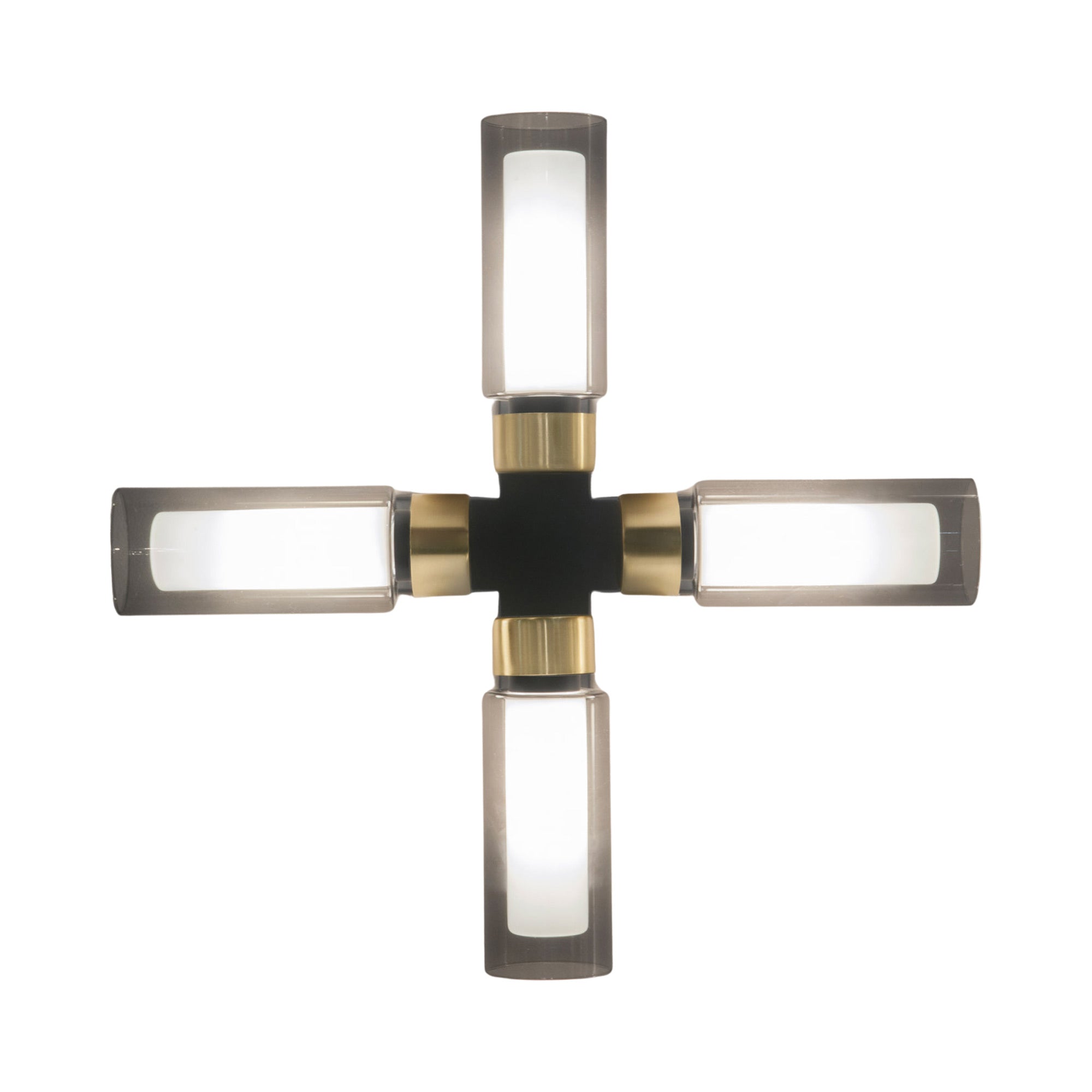 Classic design-forward radial silhouetting creates both traditional and transitional flavor as the Osman Ceiling / Wall Light from Tooy is structured with options for a solo four-light presentation or a more dramatic multi-light showcase. Note an industrial flavor in the gritty metal joints affixed to rods of glass that light up to create a star or cross design. Versatile for use in a host of spaces, this wall and ceiling light opens up options of creativity.