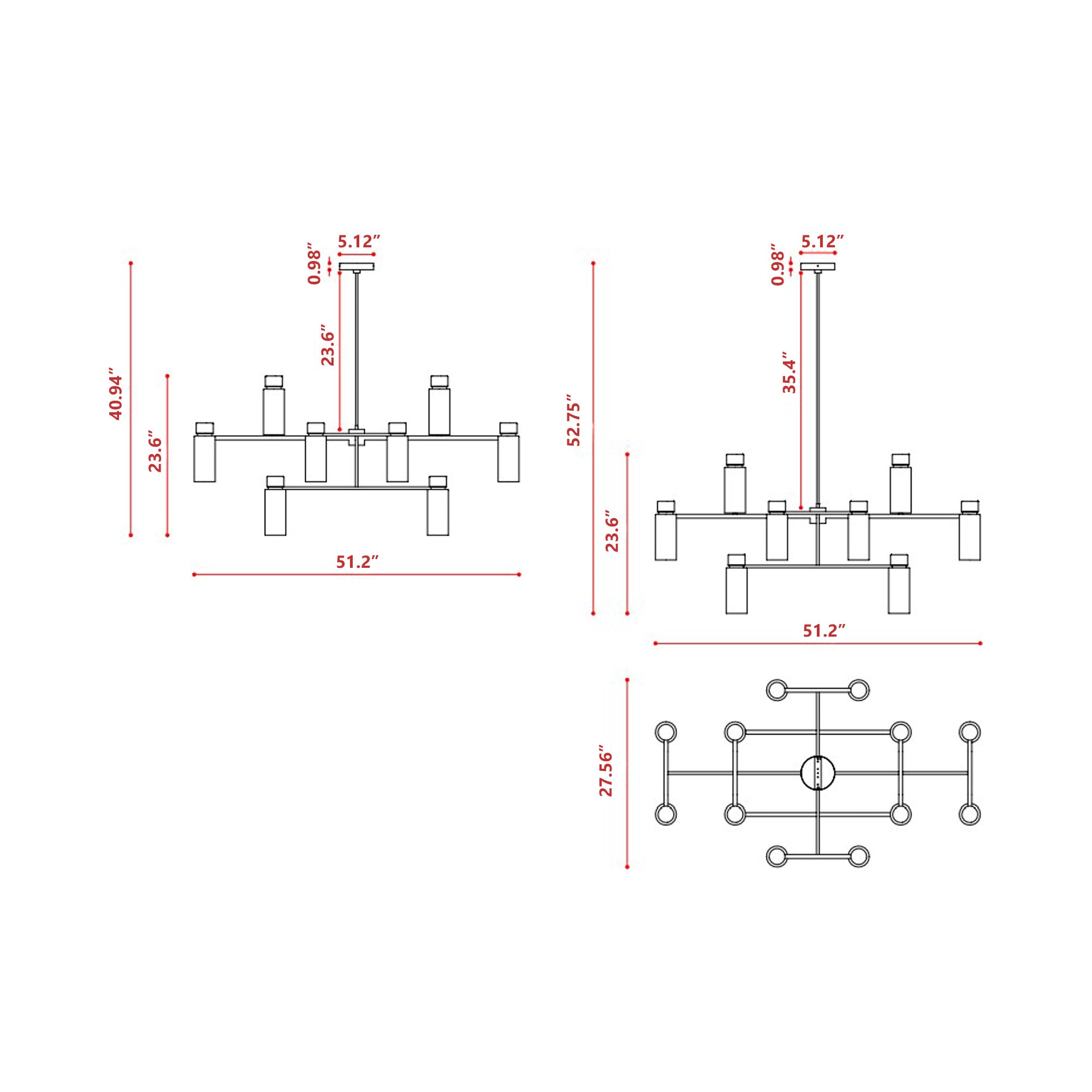 - Fixture Dimensions: 51.2"W X 23.6"H