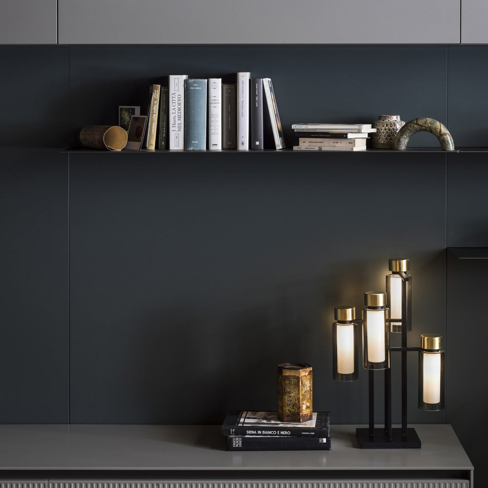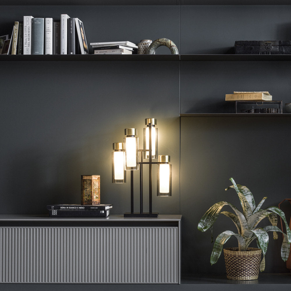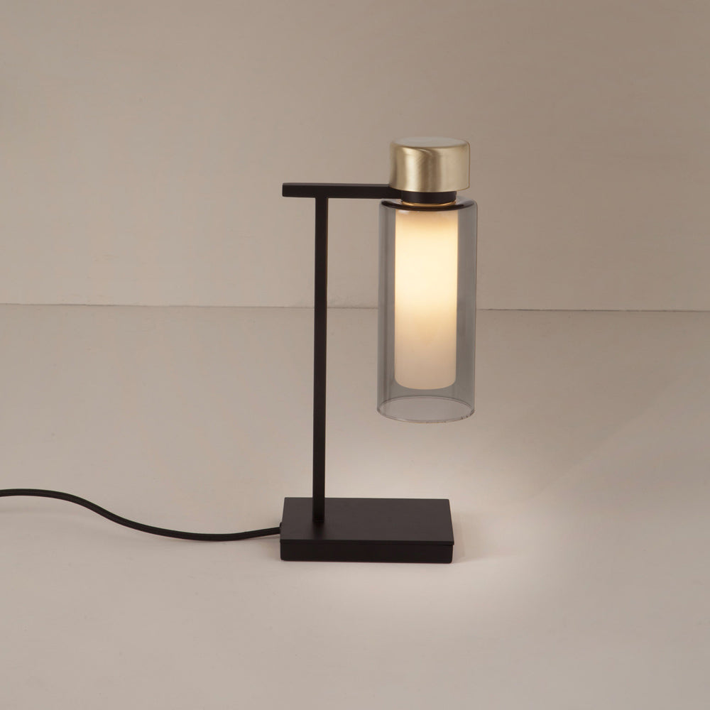 With a design motif described only as classic elegance, the Osman Table Lamp from Tooy draws from industrial style influence and blends glass and metal in an iconic material mix. Asymmetrical silhouetting places a linear frame and pronounced base to the side of a delicate glass cylinder shade, as a metal cap embellishes with a surprising twist.