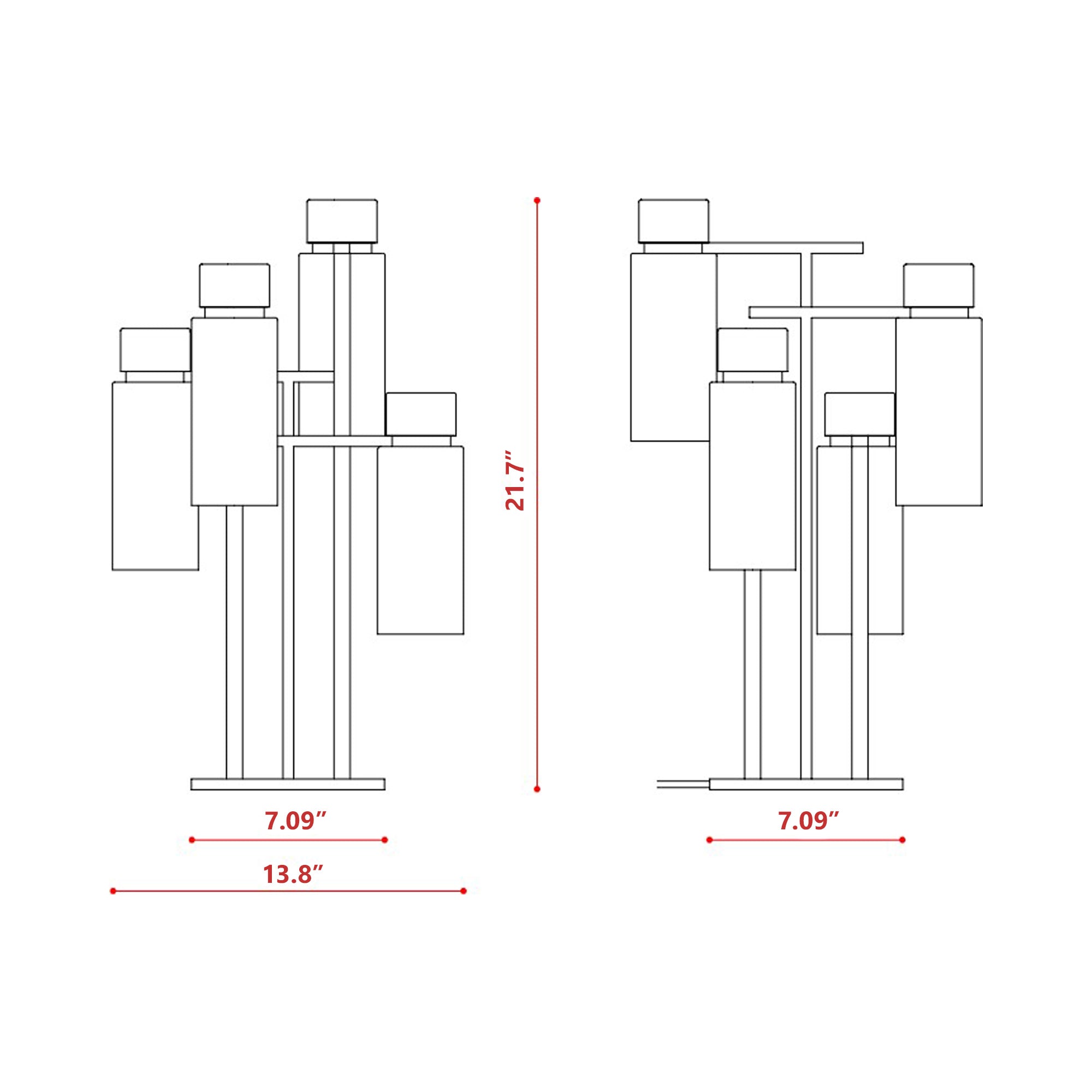 - 4-Light: 13.8"W X 21.7"H; 59" Cord Length