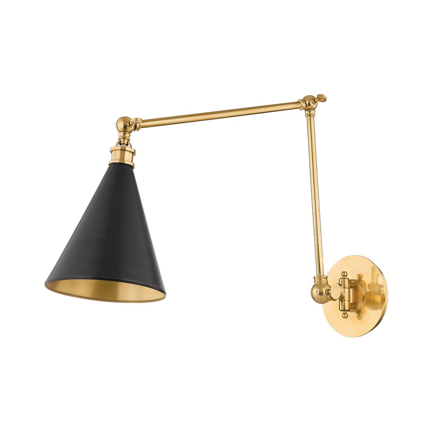 Indulgent old world charm and edgy industrial vibes meet in the middle to create a tasteful fixture with a decadently warm finish palette. The Osterley Swing Arm Wall Light from Hudson Valley Lighting delivers adjustable lighting for custom needs while adding a charming look with a metal cone shade and jointed metal arm configuration. Choose this exceptional light for key reading spaces in nooks or living rooms.