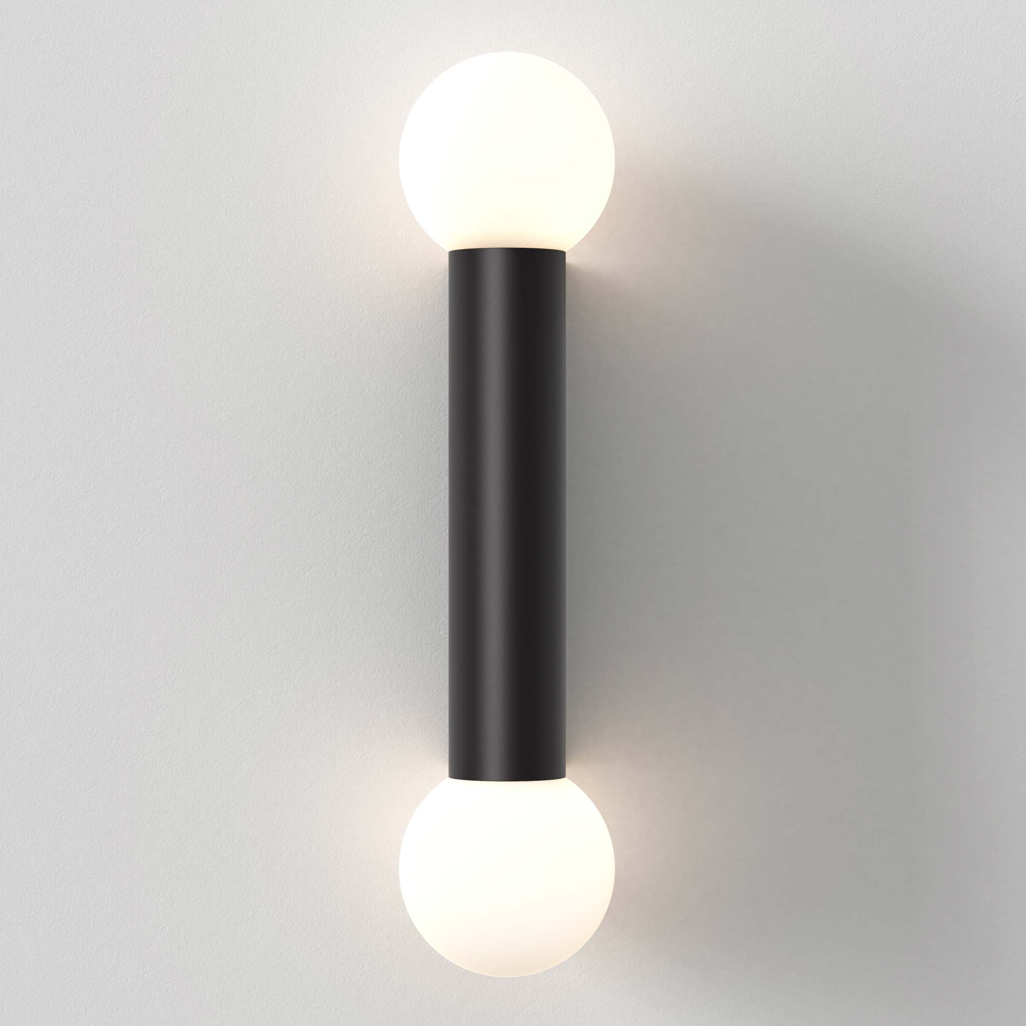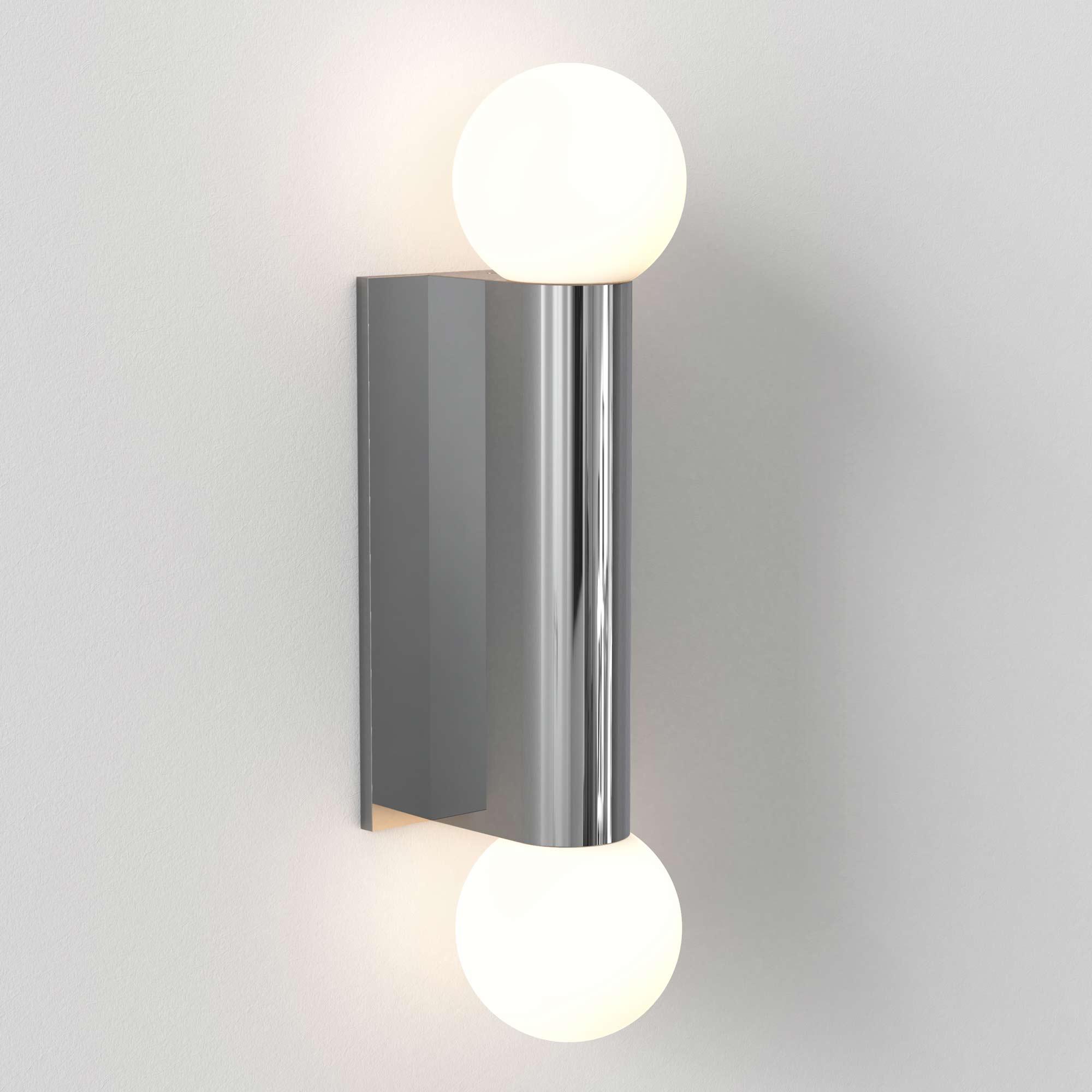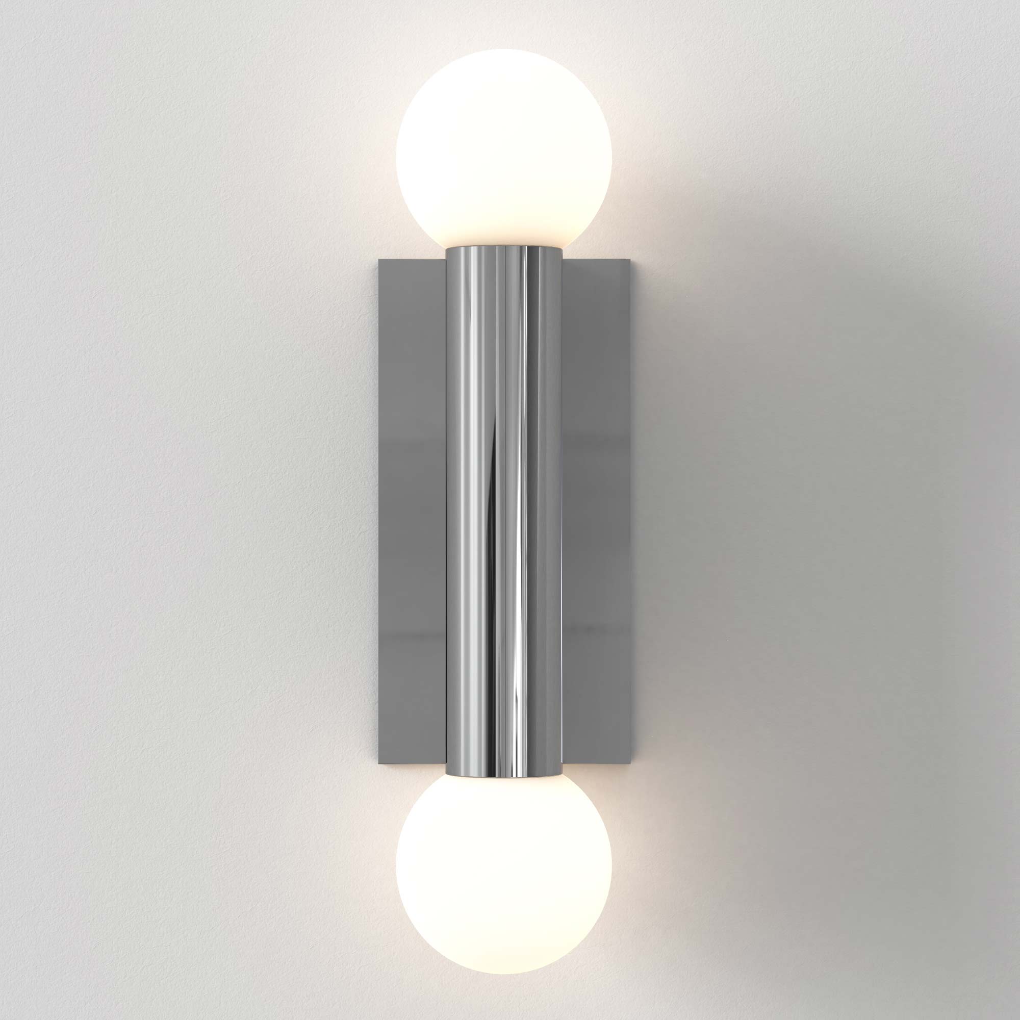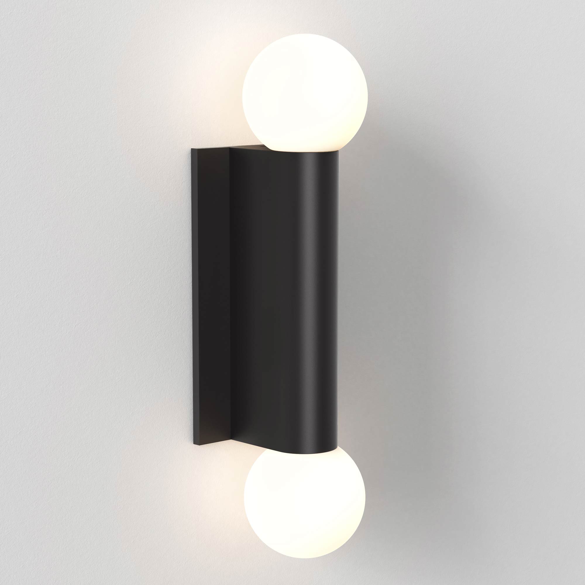 Present vanities and dressing areas with the Otona Twin Bath Wall Light from Astro Lighting, lending a modernized retro throwback to the space. Dual orbs glow wonderfully to create a well-lit interior and focal wall along with a sleek contemporary aesthetic.