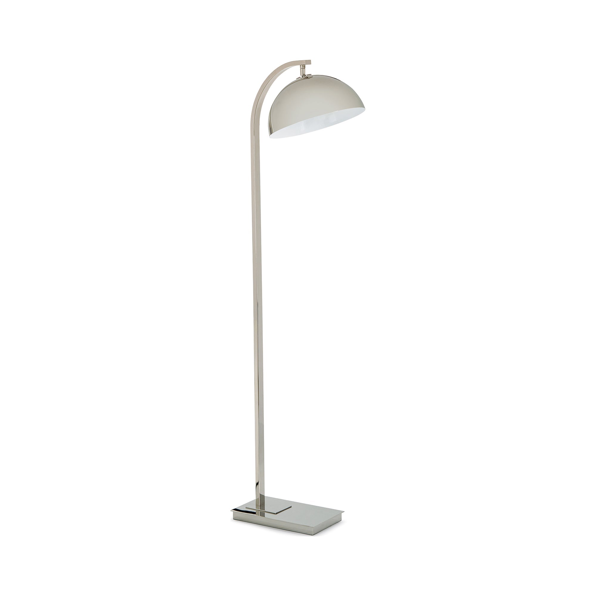 Iconic Mid-Century Modern style takes a page from farmhouse modern personality to create a focal point in any setting. Dramatic with metal construction, the Otto Floor Lamp from Regina Andrew perfects the asymmetrical design of artisan lamps, yet maintains a low-key approach to design. A prominent dome shade and gently curved arm balance with an extra-long rectangular base to key in on proportion and add a fresh, stylish aesthetic.
