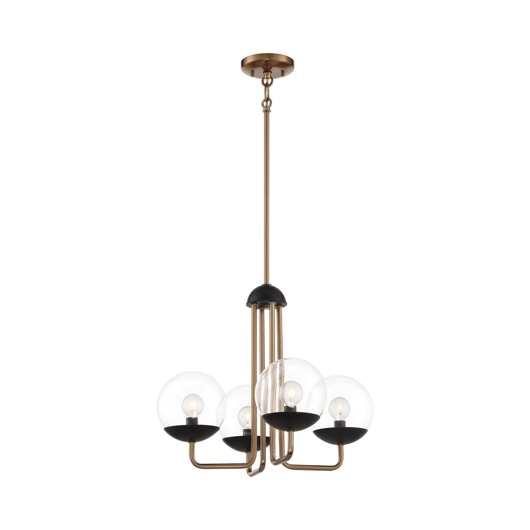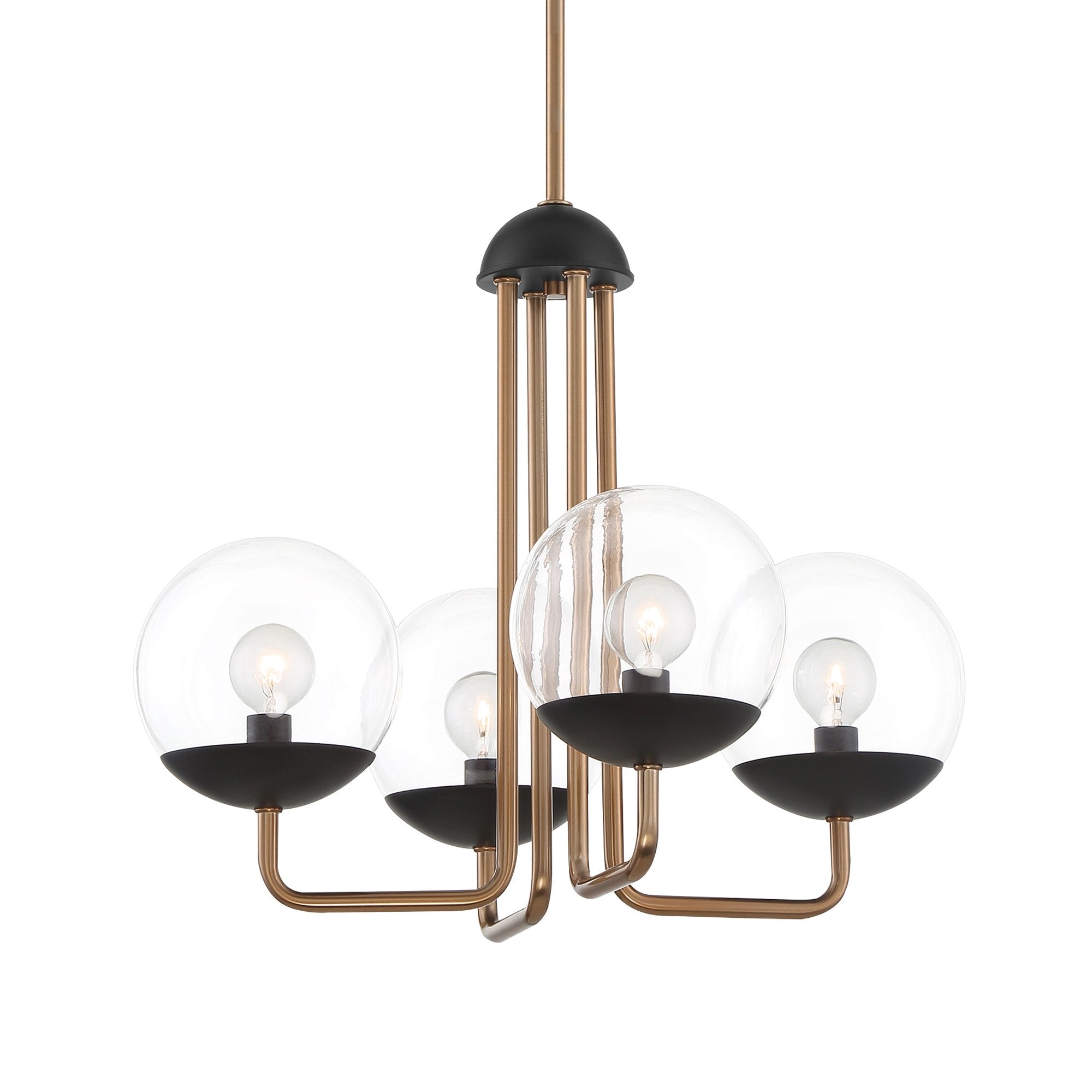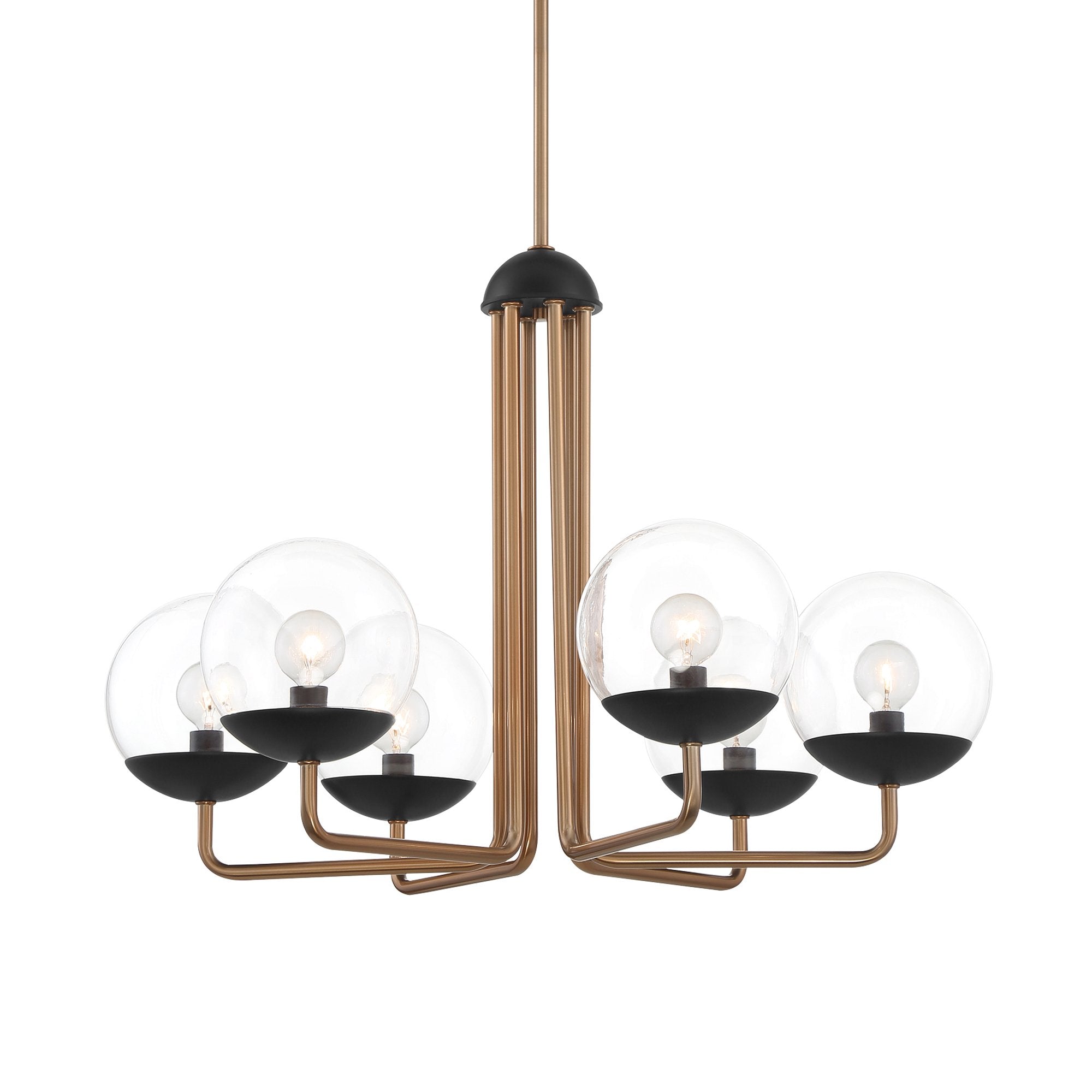 Hints of mid-century and industrial design trends elevate the overall aesthetics of this Outer Limits Chandelier from George Kovacs as it shows off glass globe shades and a compelling two-tone bronze finish.