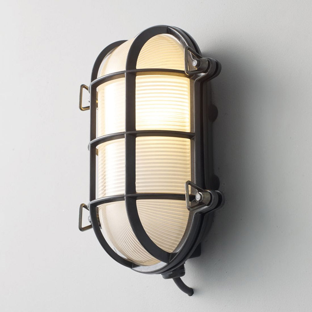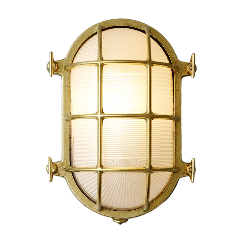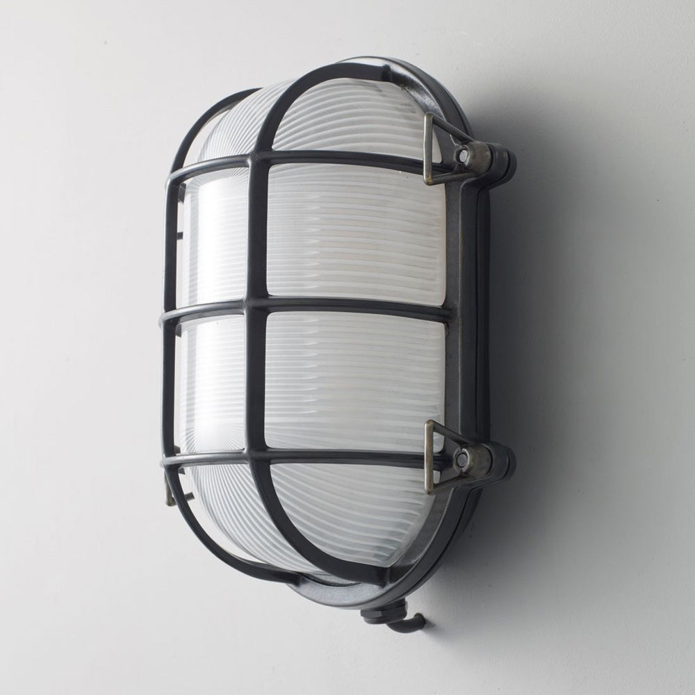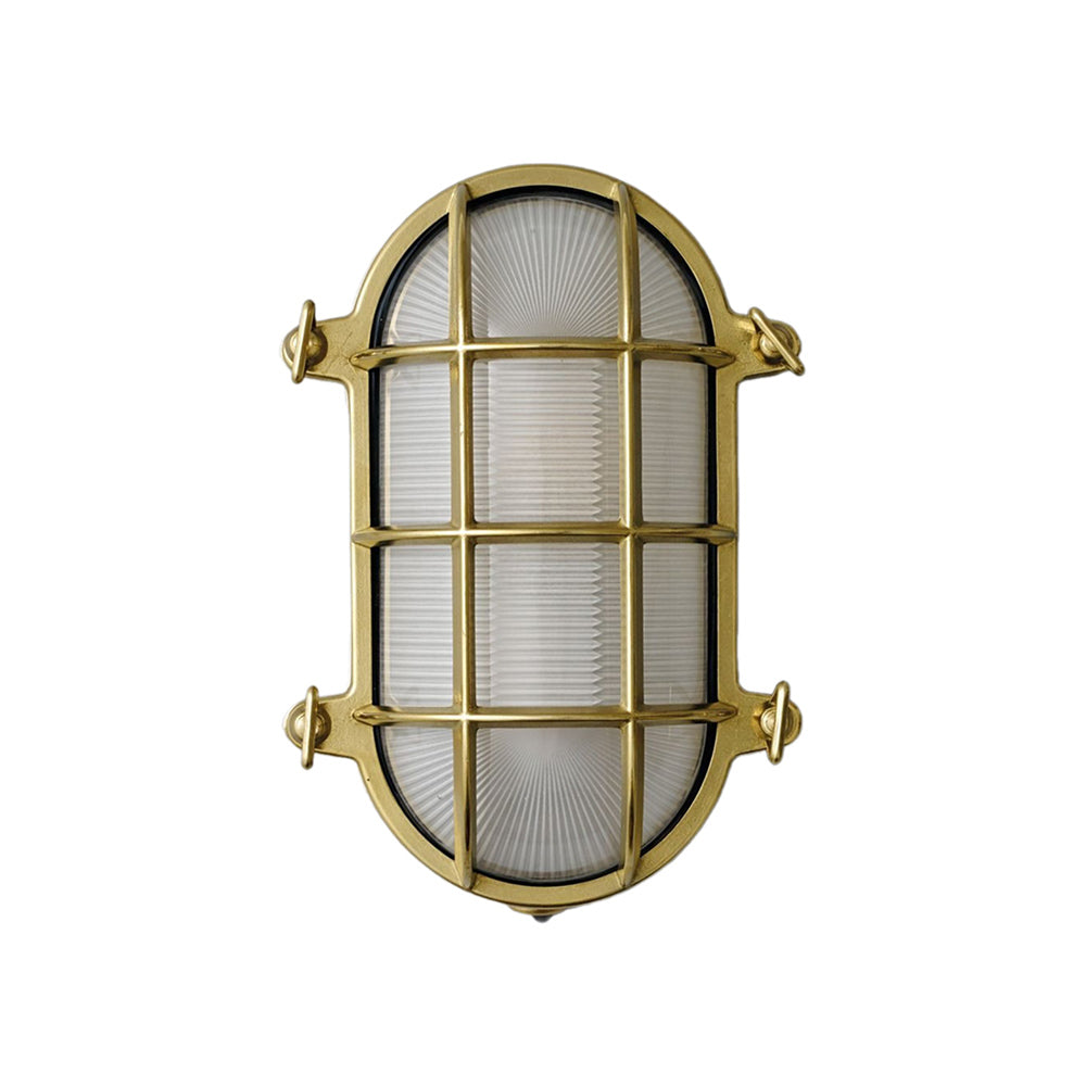 Dramatic emphasis on industrial influence revives the industrial era with retro charm, perfect for sprucing up a themed setting. The Oval Brass Bulkhead Indoor/Outdoor Wall Light from Original BTC and its iconic grid-like aluminum frame nestles ribbed glass creating a domed shade. For indoor or outdoor use, this energizing fixture makes a statement of impact.