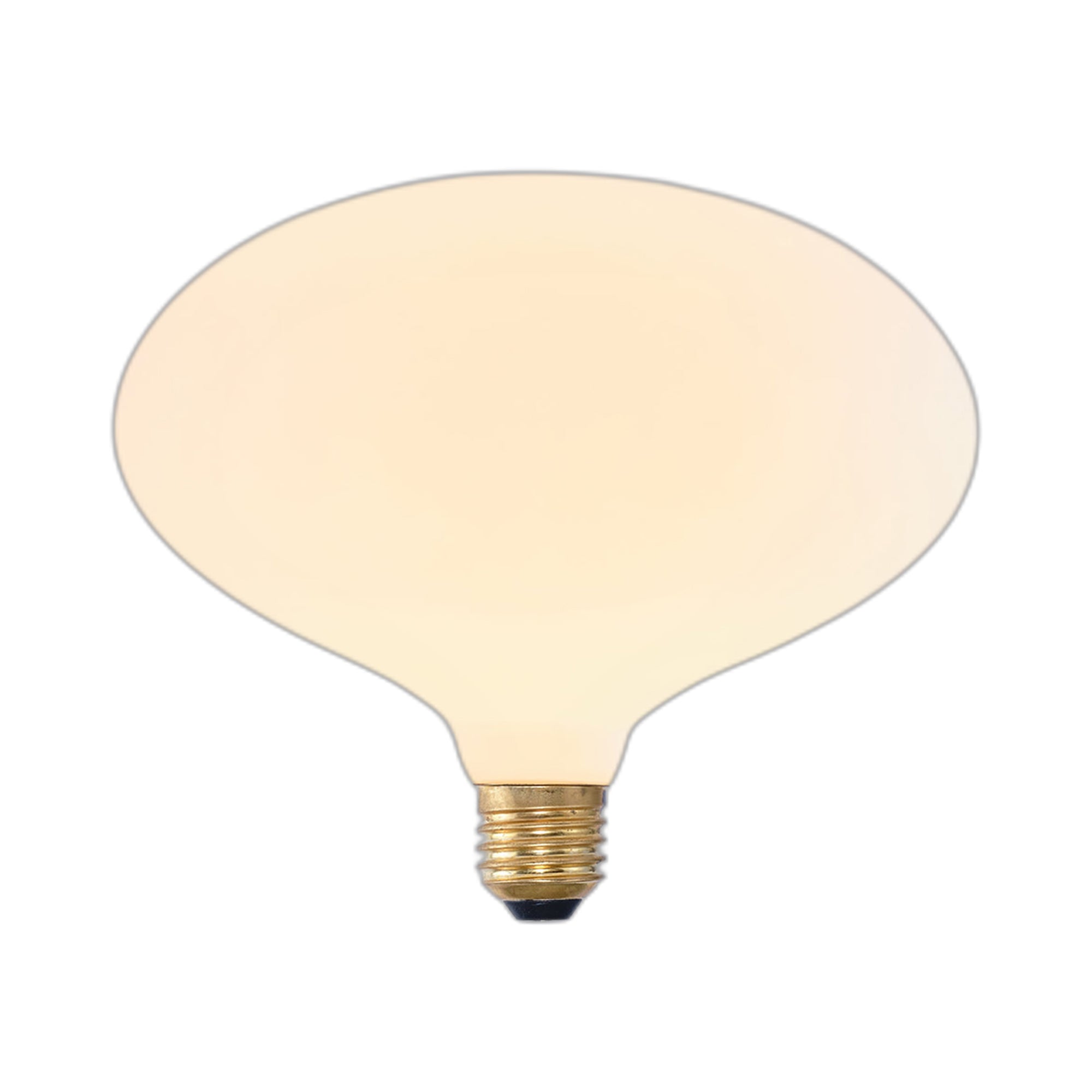 Augment a pendant or other ceiling fixture with the decorative charm and porcelain style of the Oval II Medium Base R65 Type LED Bulb from Tala. A distinctive design features matte white glass that creates a diffused glow, while its LED build assures energy efficiency. Features mouth-blown glass construction and delivers smooth, seamless dimming.