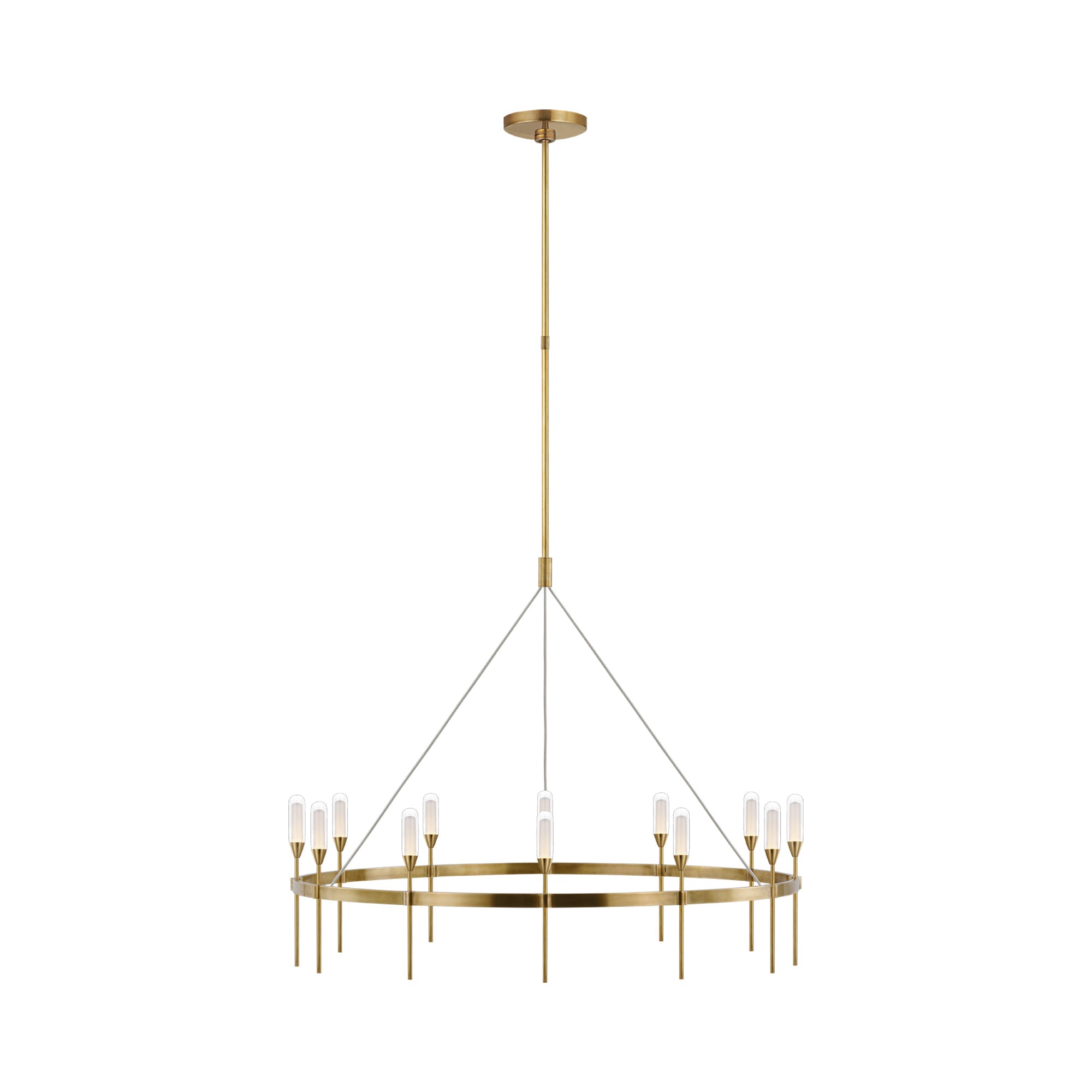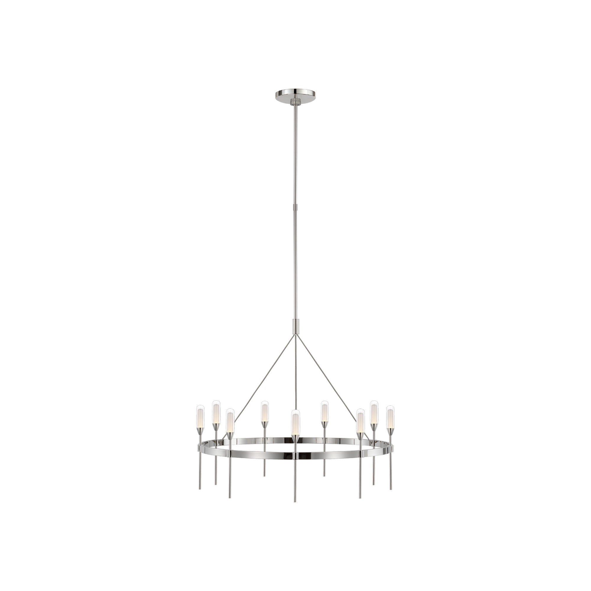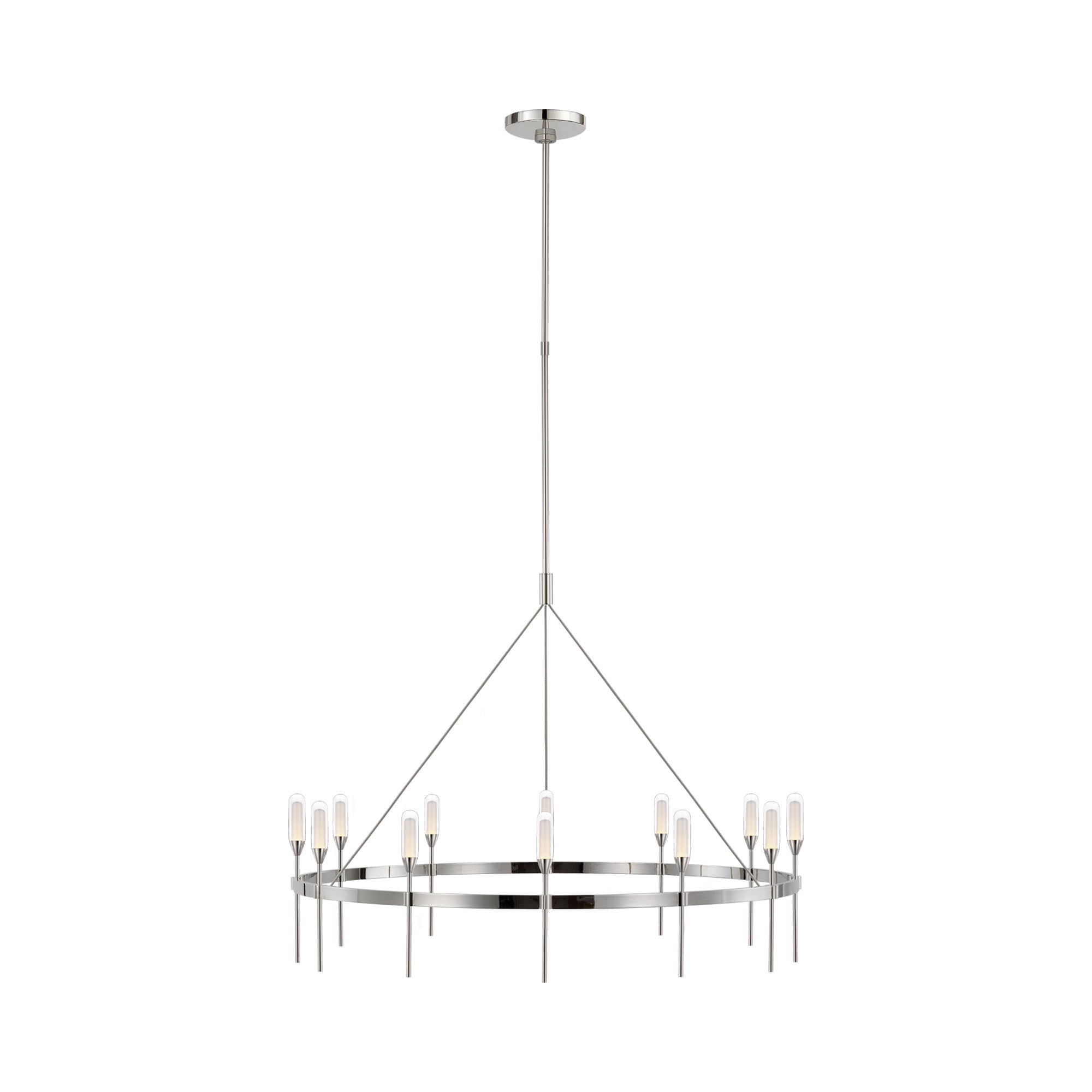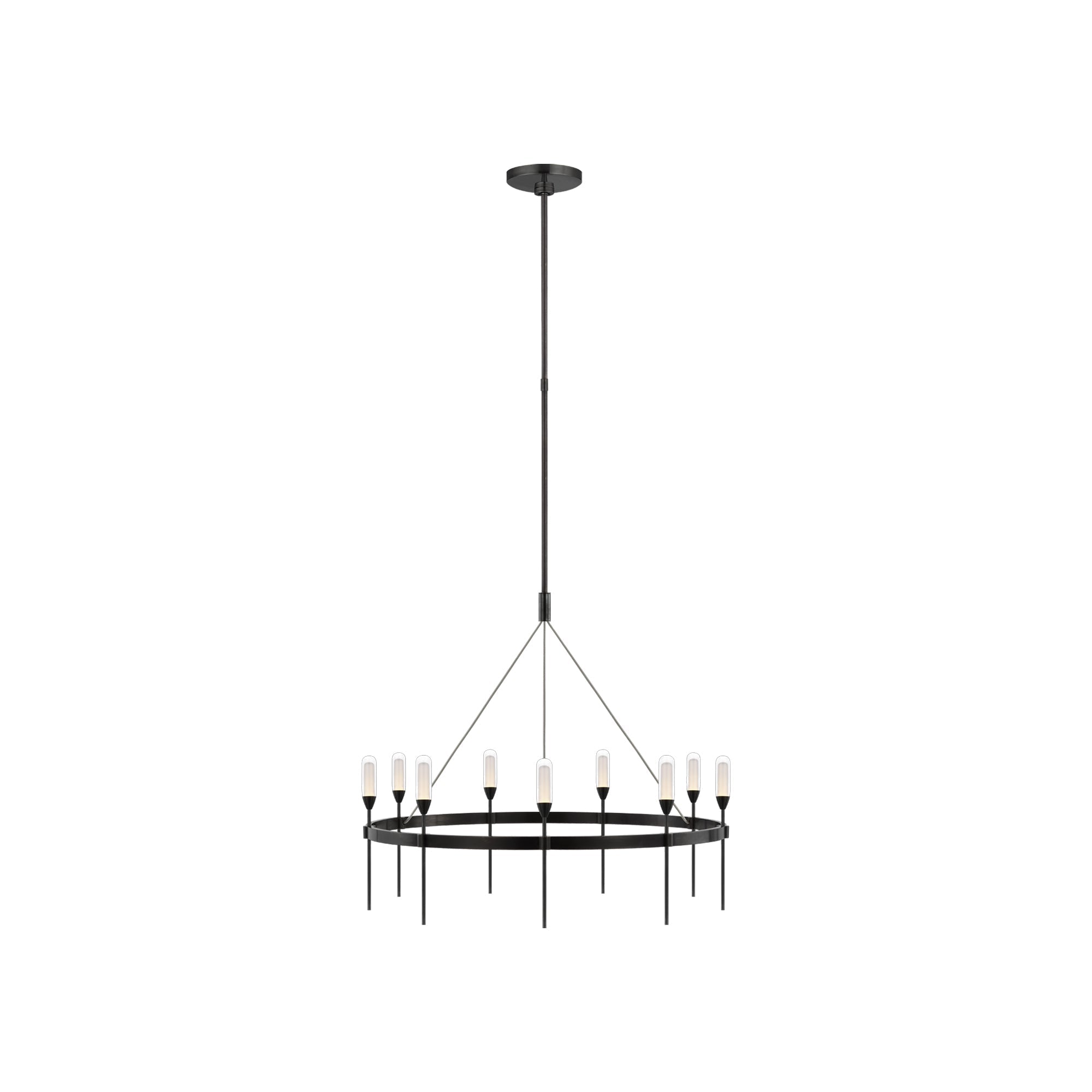 Embrace the drama and artistry of a fixture with compelling design creds, perfect for highlighting a modern space. Metal construction pads the theatrical castle motif of the Overture LED Chandelier from Visual Comfort Signature, creating a symmetrical silhouette with long-stemmed glass bulbs adding just the right level of romantic, energy-efficient lighting.