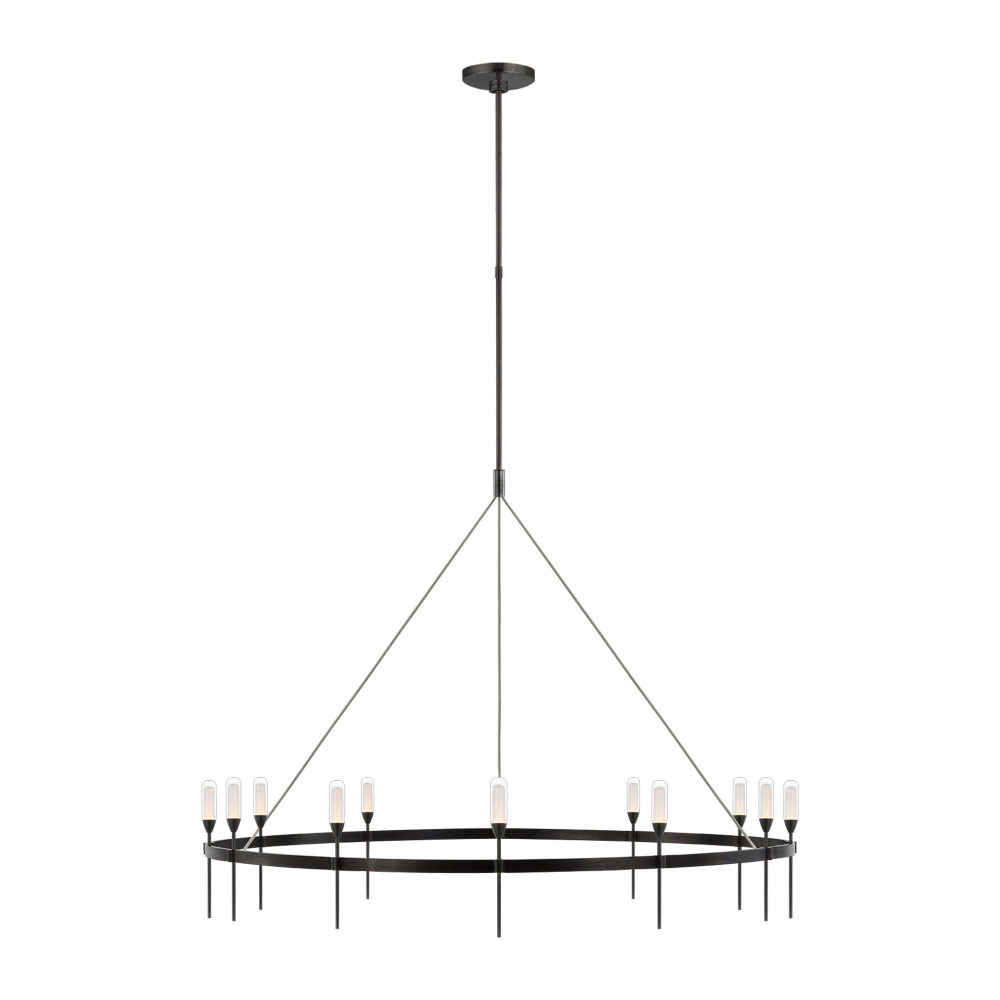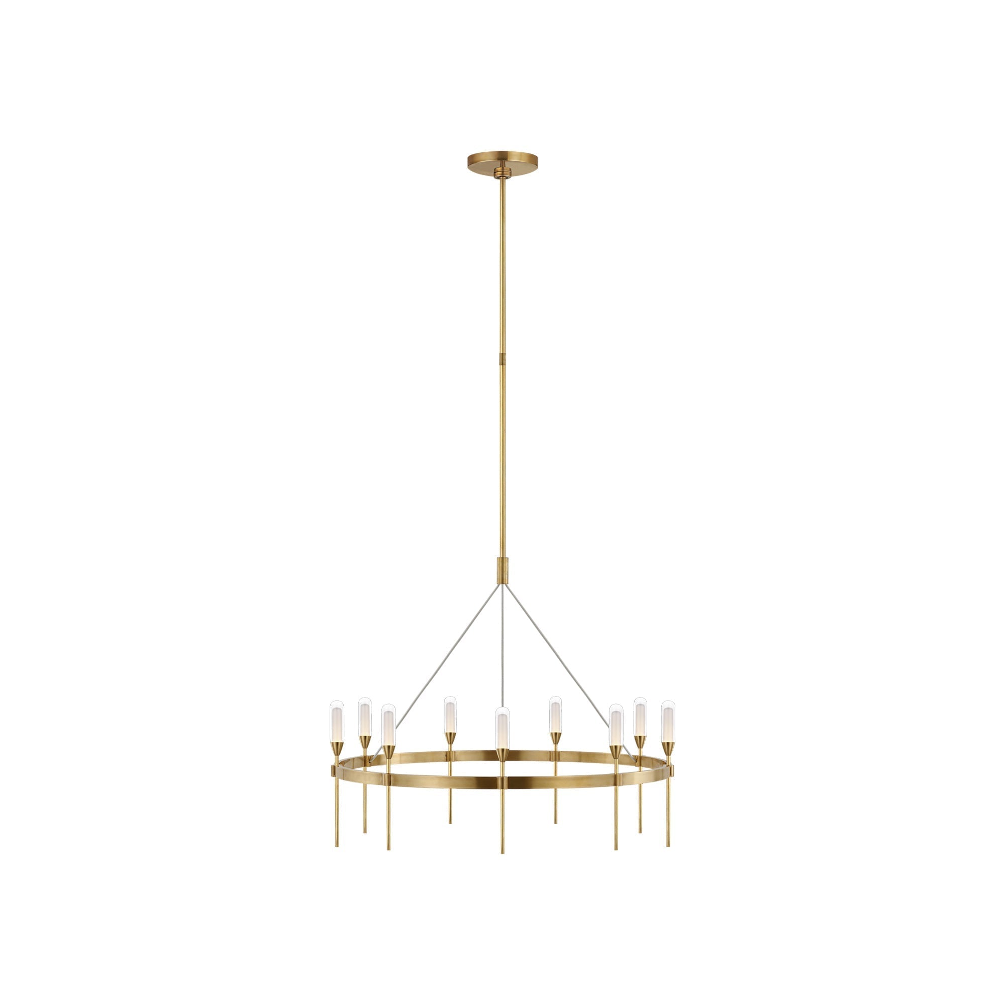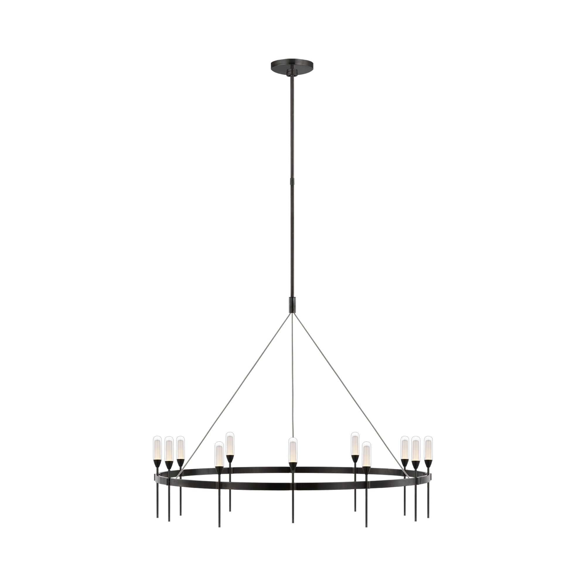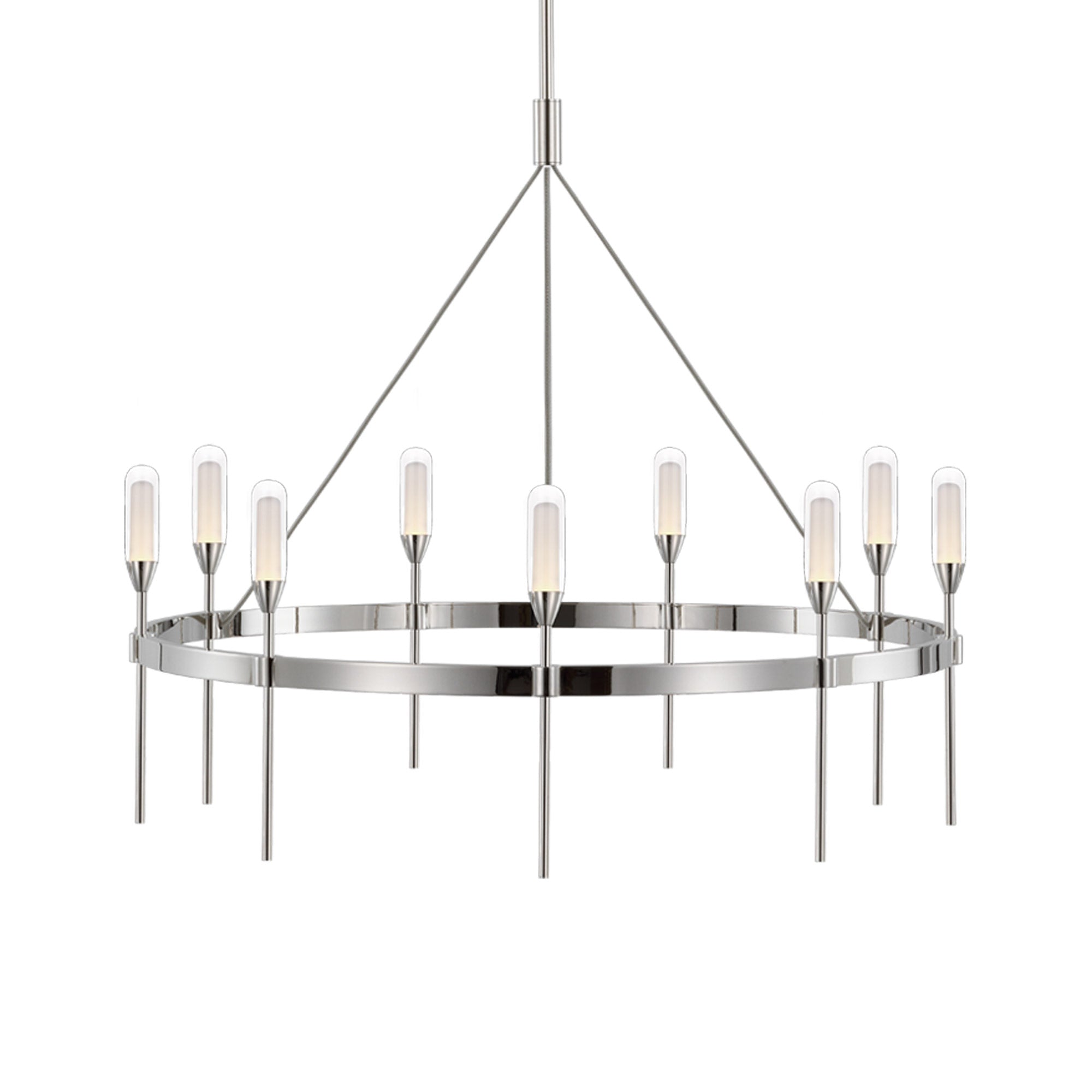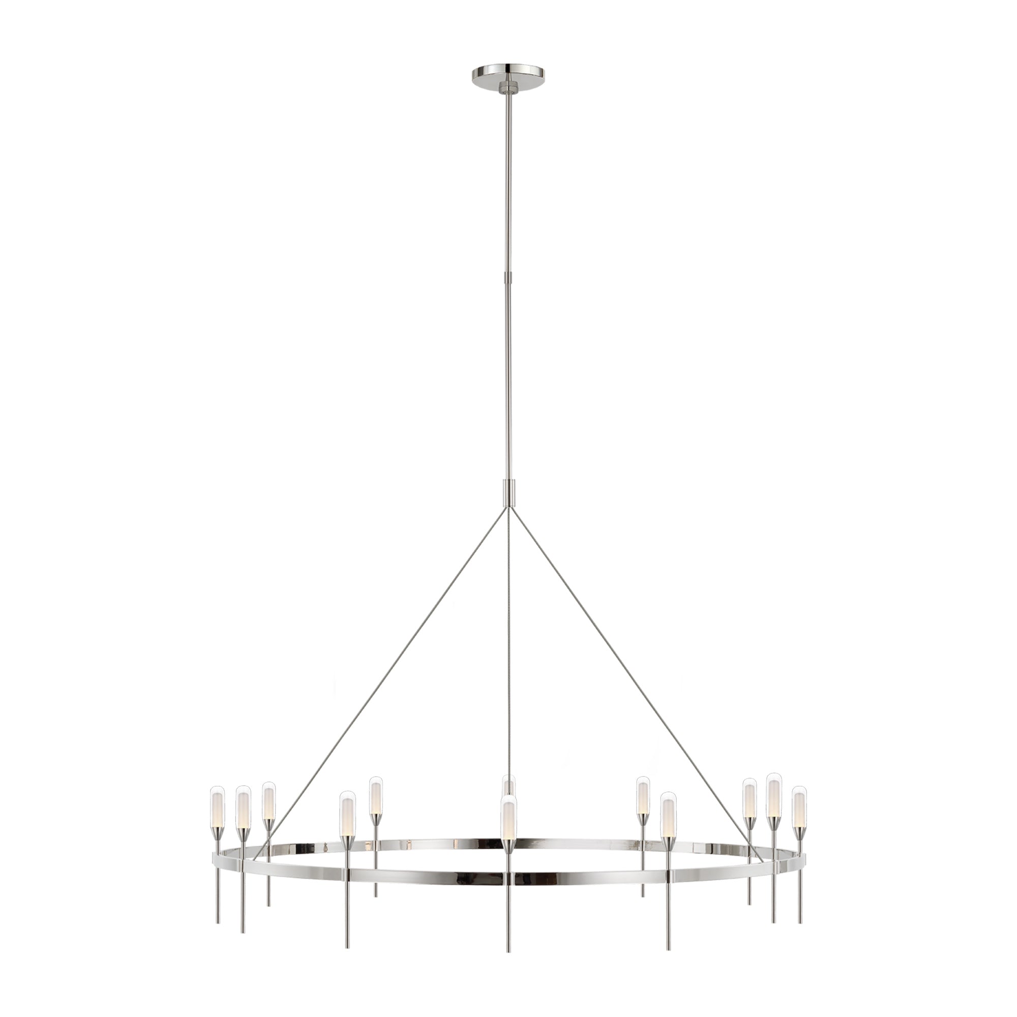 Embrace the drama and artistry of a fixture with compelling design creds, perfect for highlighting a modern space. Metal construction pads the theatrical castle motif of the Overture LED Chandelier from Visual Comfort Signature, creating a symmetrical silhouette with long-stemmed glass bulbs adding just the right level of romantic, energy-efficient lighting.