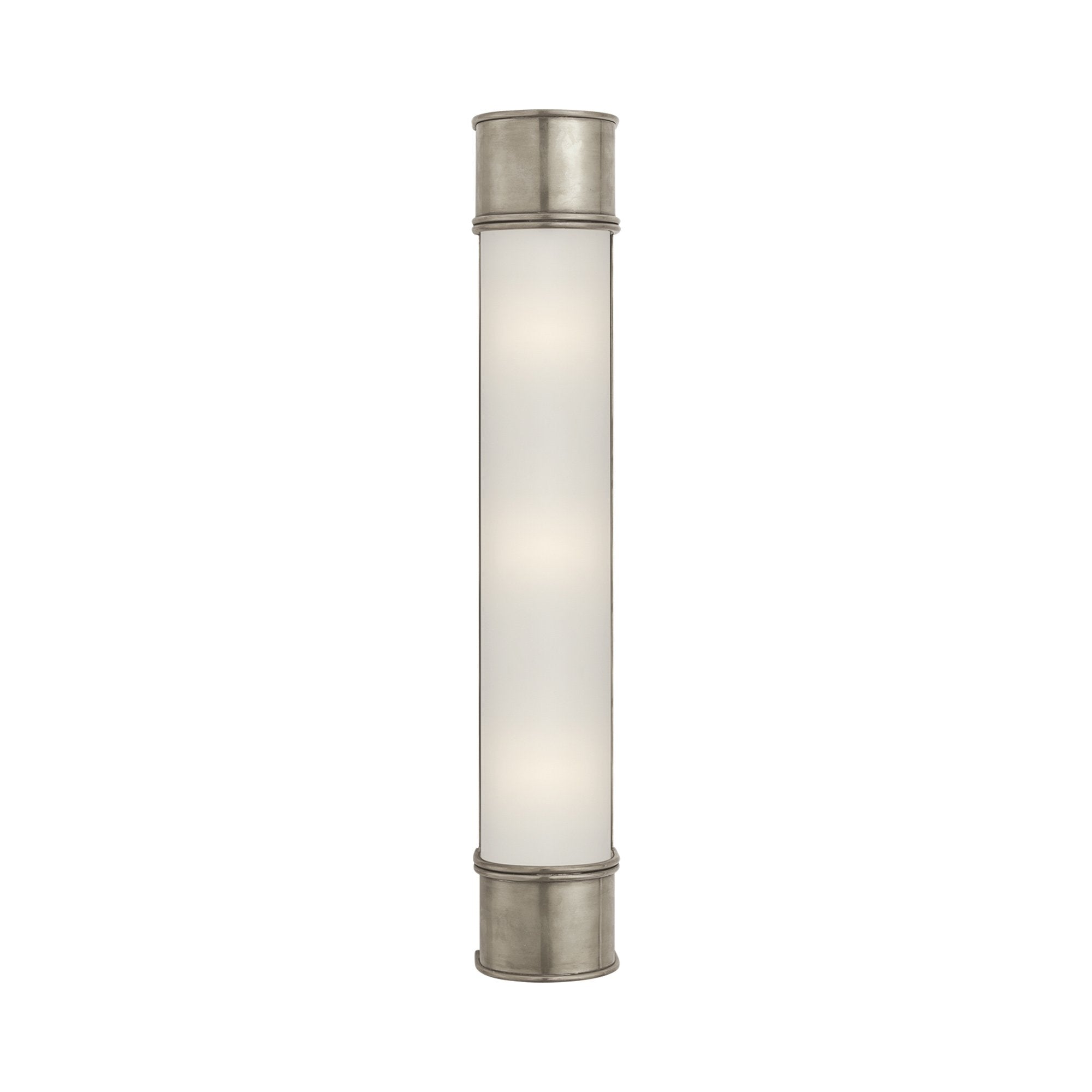 Vintage charm offers soft artistic inspiration to the Oxford Bath Wall Light from Visual Comfort Signature. With a down home design and rustic influence, its frosted glass diffuser is encased in a metal frame offered in a variety of finishes.