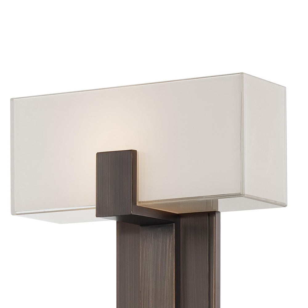 Geometric simplicity with clean lines creates a crisp look in the P1704 Wall Light from George Kovacs. Modern design elements take on a transitional feel in a linear fixture featuring metal framing and a mitered glass shade with a glass interior. Soft, ambient lighting makes a difference in a casual space as this tasteful light conforms to surrounding décor.