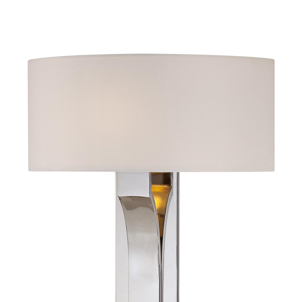 Subtle curvature creates a romantic twist to the crisp modern style of a light fixture with versatility. The P1705 Wall Light from George Kovacs whets the appetite of designers craving simplicity with a touch of romance. A chic white fabric shade tops metal framing with a gleaming polished nickel finish, maintaining suitable tempered ambiance.