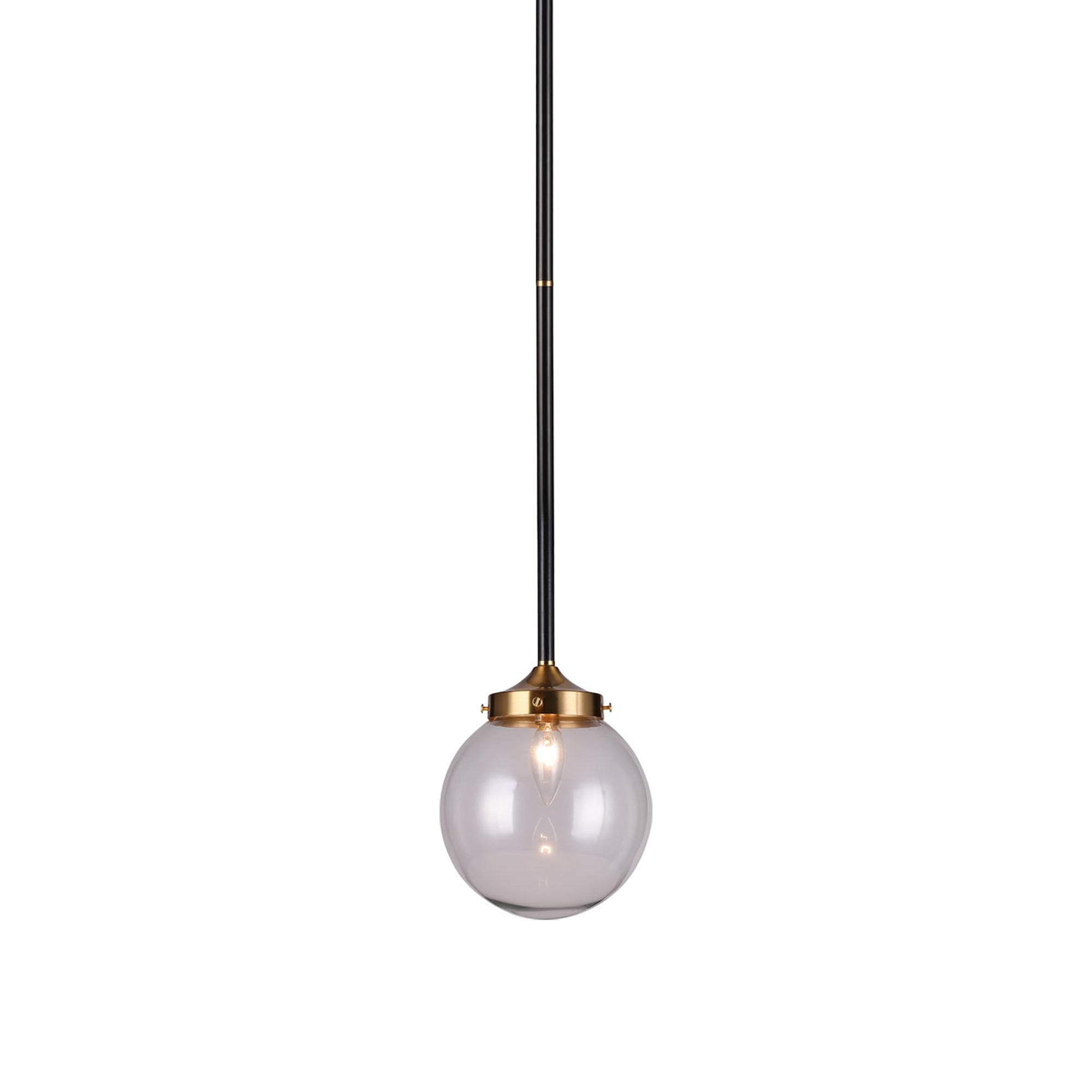 A striking stark black and warm metallic finish duo offer a refined touch to the understated silhouette of the P7070 LED Pendant Light from Vinci Lighting. Designed with an elegant glass globe and elements that lend an Art Deco vintage feel, this modernized energy-efficient pendant light drops into place effortlessly over inviting bars and gourmet kitchen islands alike.