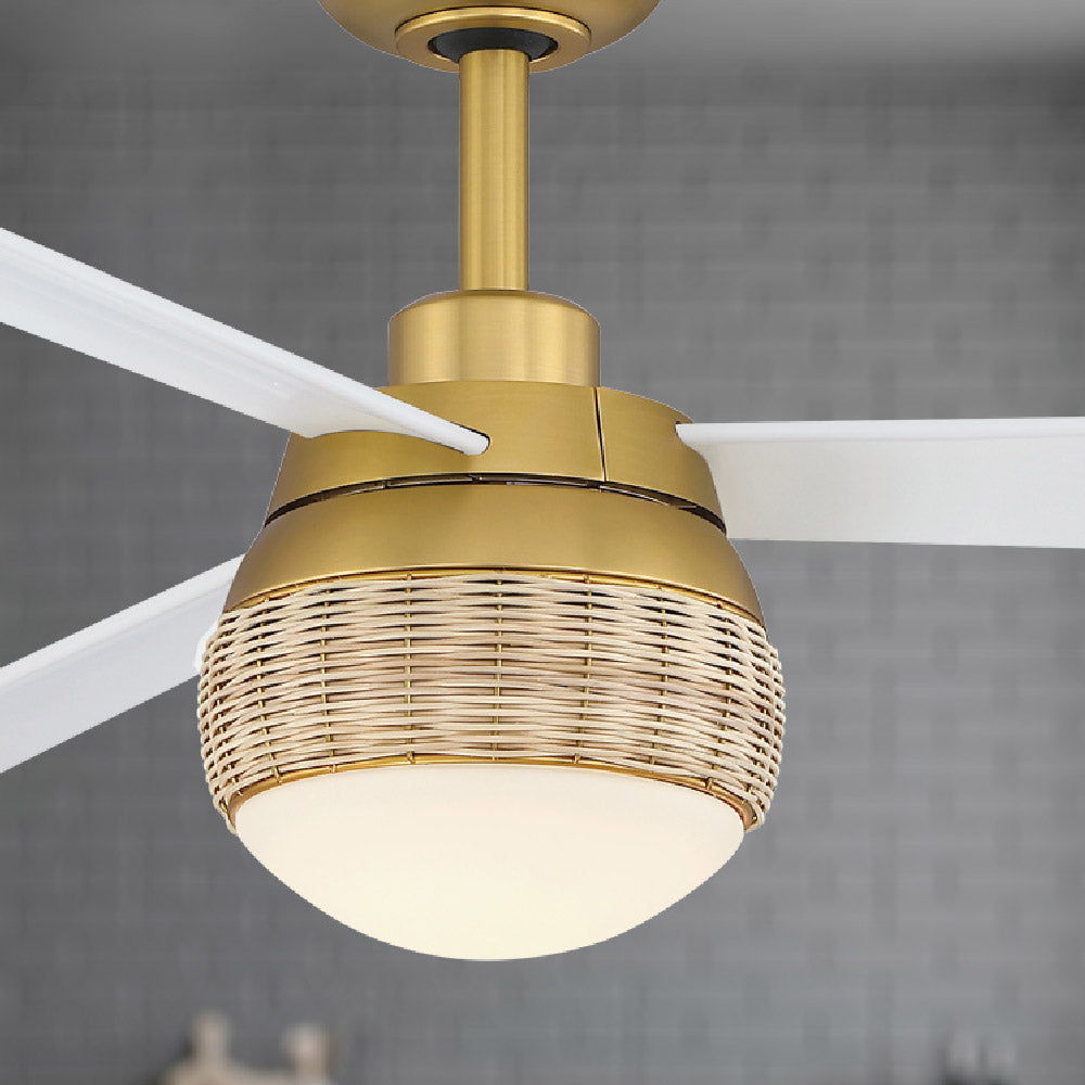 Basketweave details adds fresh, casual texture to the Paget Indoor / Outdoor LED Ceiling Fan from Fanimation. Its designer look impresses with three sleek blades and a rounded glass light cover, perfect for soft, inviting ambiance and comfortable air circulation in a bedroom or out on the porch.