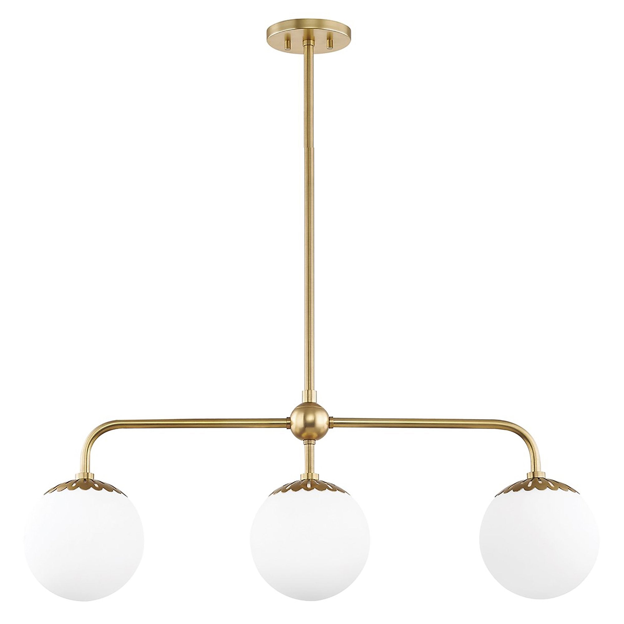 Enrich modern home décor with a vintage-inspired piece to add to the overall aesthetic. Flaunting three classic, round white shades, Paige Linear Suspension Light from Mitzi radiates soft, diffused light that beautifully balances a sleek metal frame in your choice of three rich finishes.