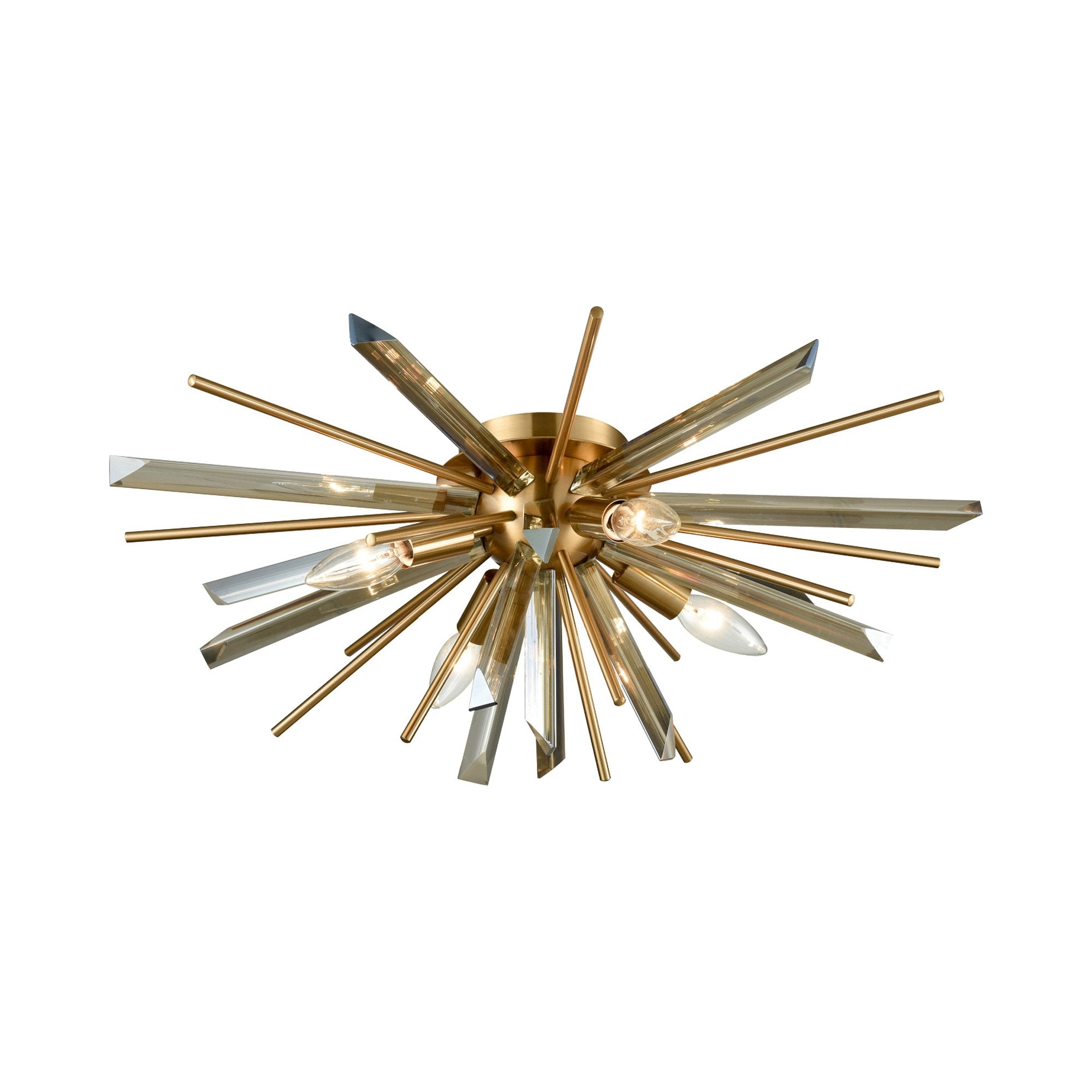 Inspired by the original sputnik design. The Palisades Ave. Flush Mount Ceiling Light features various size spokes attached to a central spear base. This flush mount is accented with a mixture of clear glass and glowing balls.