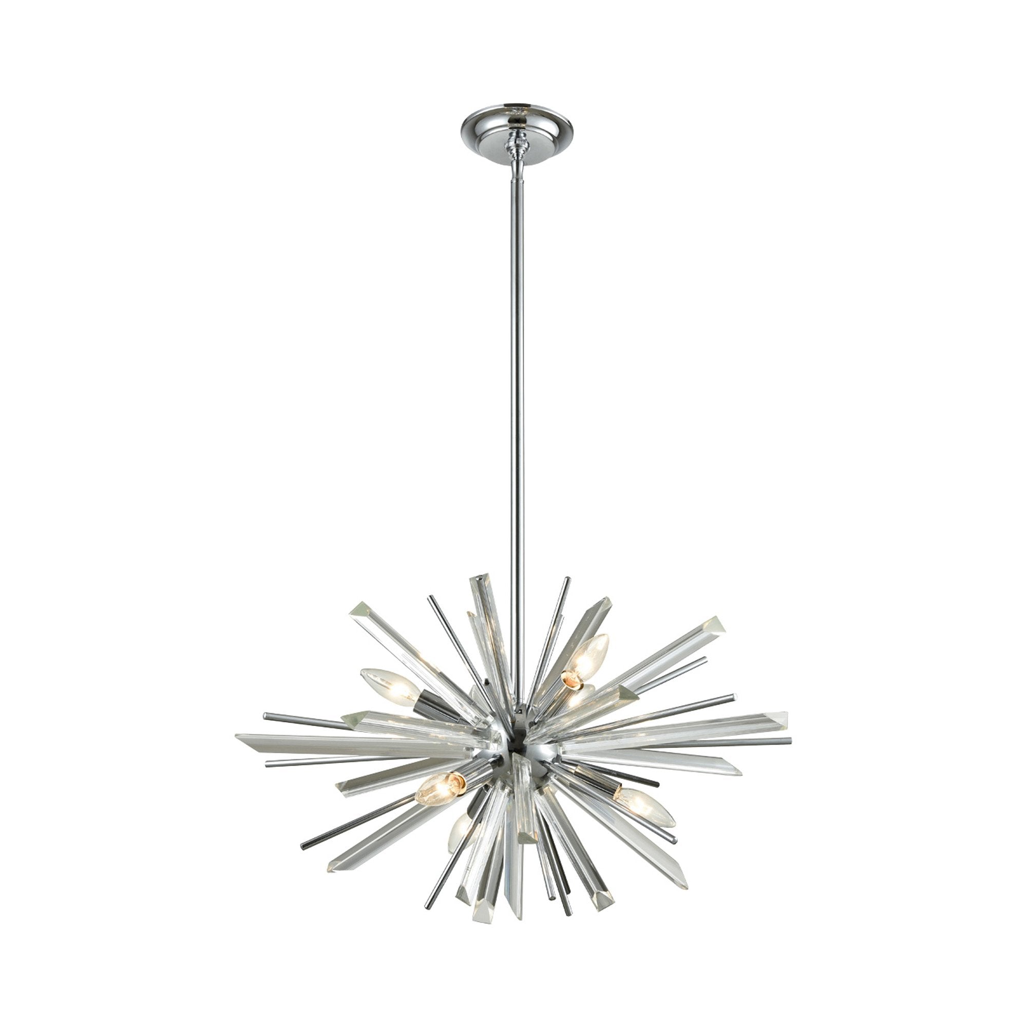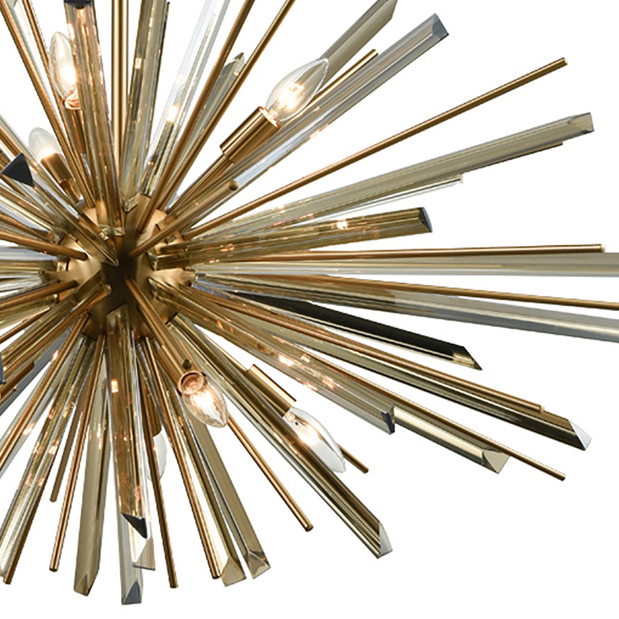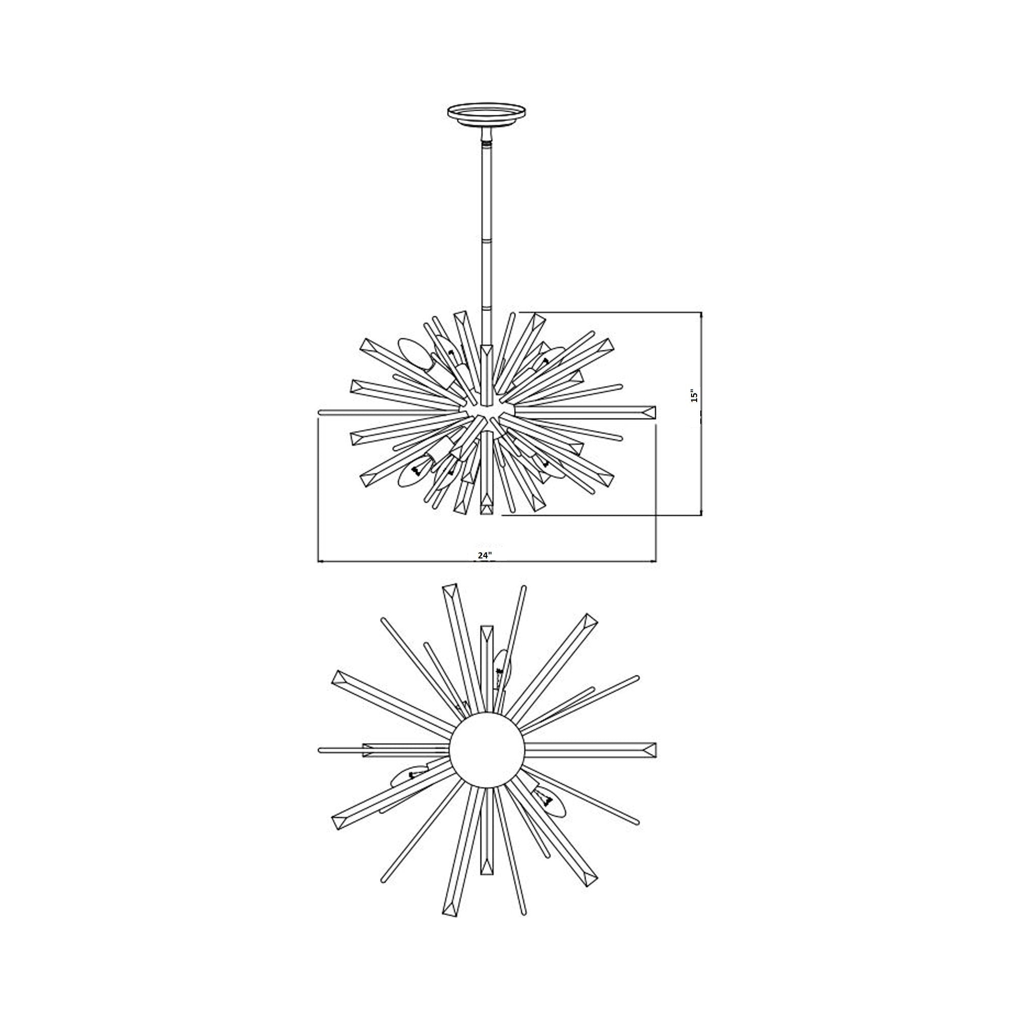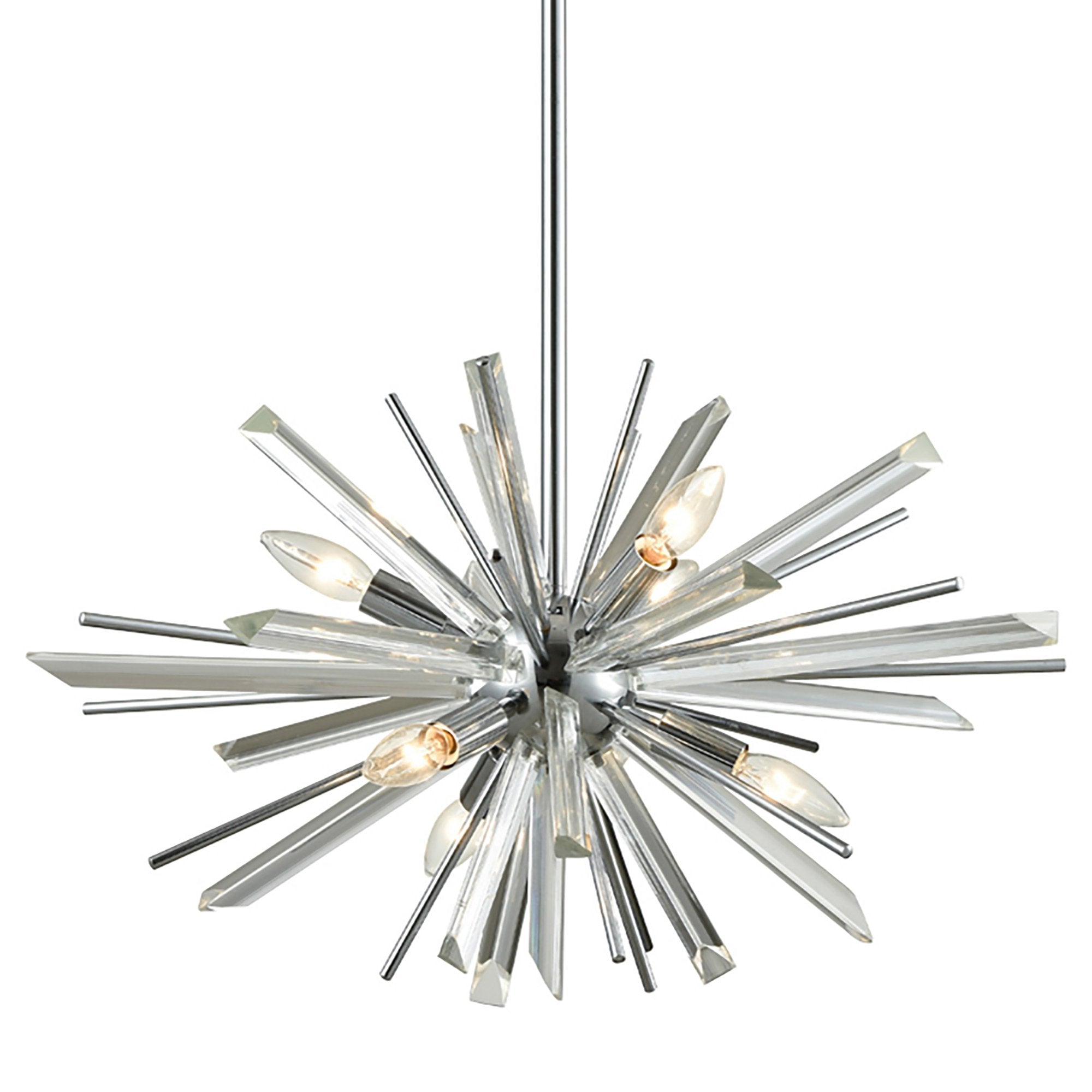 Inspired by the original sputnik design. The Palisades Avenue Pendant Light features various size spokes attached to a central spear base. This fixture is accented with a mixture of clear glass and glowing balls.