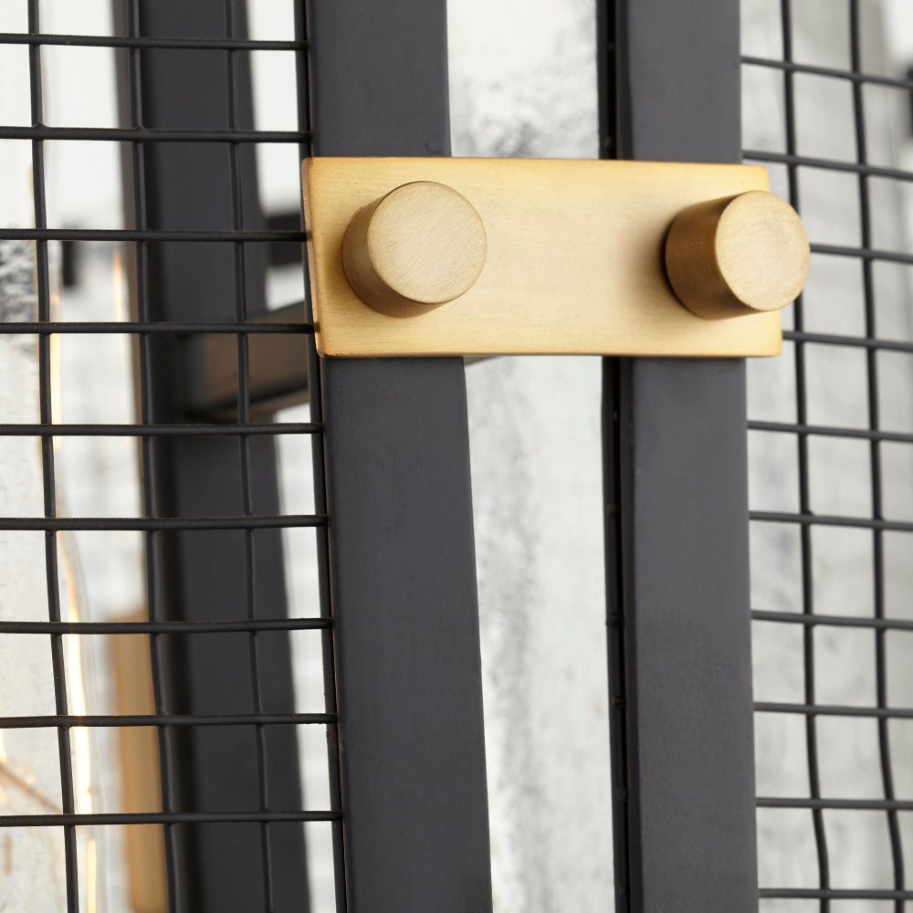 Intense focus on detail plays with shaping to produce a semi-chaotic look perfect for eclectic modern spaces. The Panorama Chandelier from Cyan Design adopts a classic cylinder silhouette with an interior frosted glass shade surrounded by noir finish curved mesh panels. Aged brass metal creates a candelabra base for lighting, mixing styles and sneaking in a touch of trending industrial attitude.