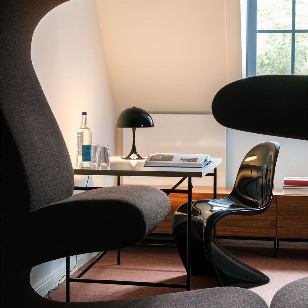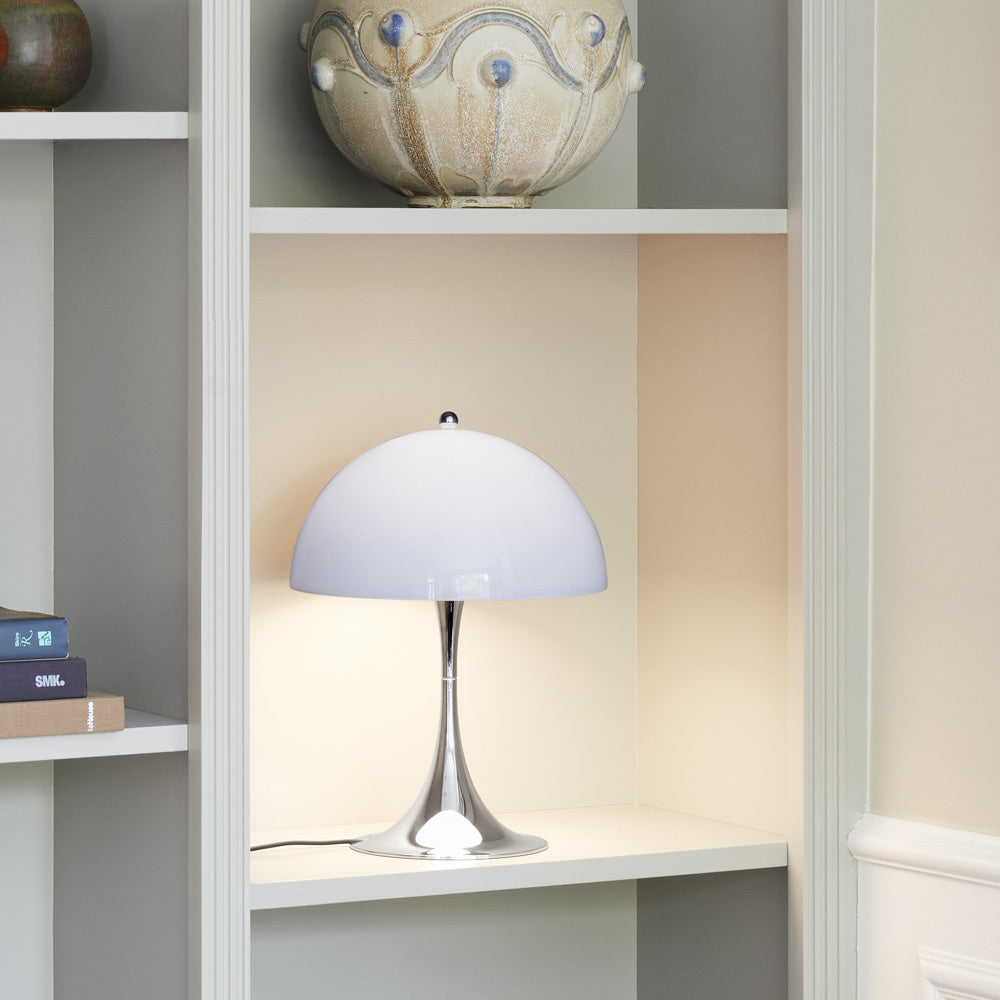 Encourage cozy ambiance with the petite size and warm glow of the Panthella 250 LED Table Lamp from Louis Poulsen. Energy efficient, it delivers a compelling silhouette that pairs a glossy trumpet stem with a graceful domed shade. Flowing energy and warm illumination are an intriguing combination.