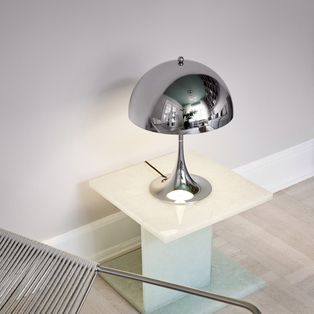 A flowing dome and curvy trumpet stem create a chic, refined silhouette for the Panthella 320 Table Lamp from Louis Poulsen. Delivering glowing, even illumination, the lamp is a stellar choice for a console or side table in need of a little pizzazz.