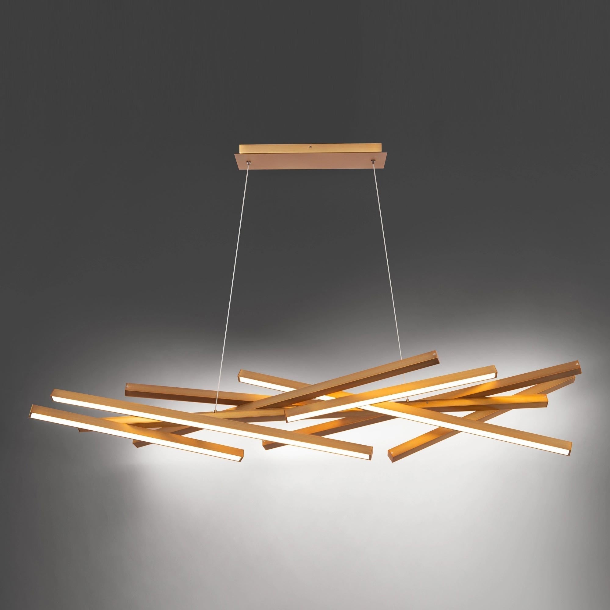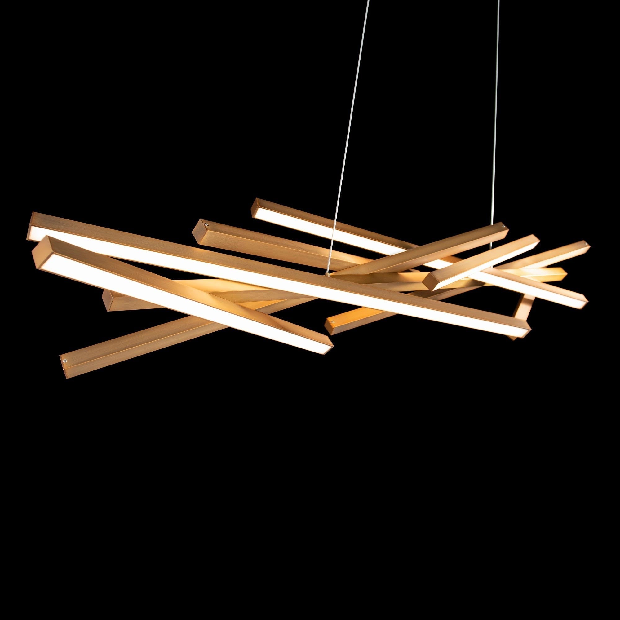 This Parallax LED Chandelier features a creative array of slender light bars arranged to create a unique, sculptural design with crisp lines. Ideal for making a statement in any space, it promises to transform the atmosphere.