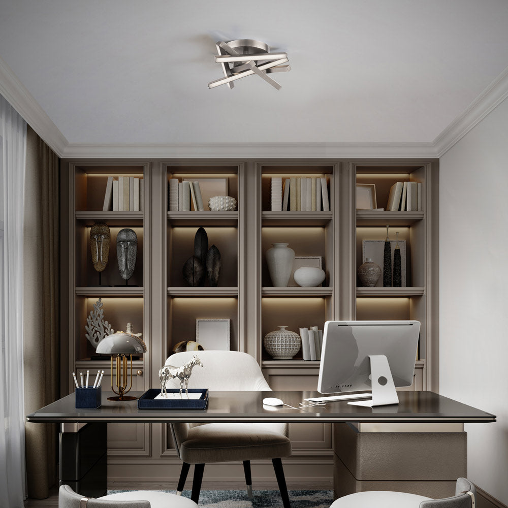 Go for a chaotic arrangement in modern lighting with a fixture dedicated to adding personality. The Parallax LED Flush Mount Ceiling Light from dweLED offers energy-efficient illumination through haphazardly arranged stick-like diffusers nestled in metal framing. Emulating fireplace kindling, this chic fixture captures attention and delivers an impactful visual statement.