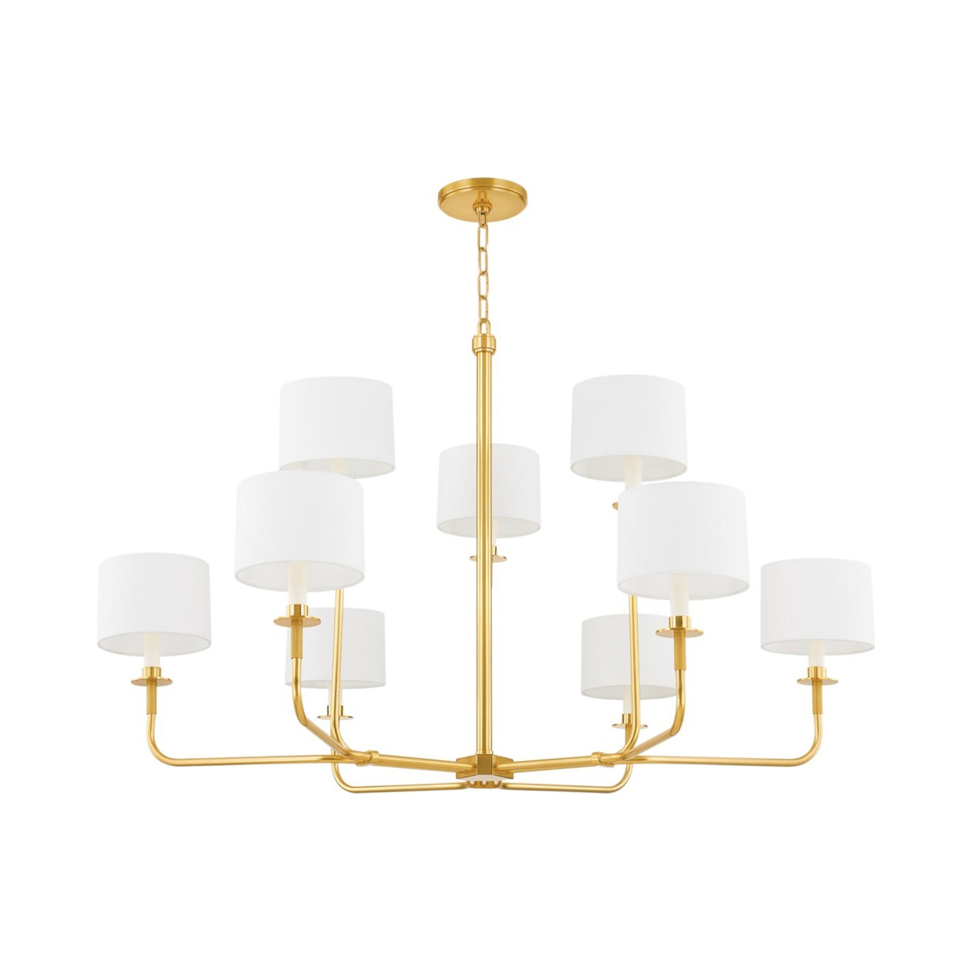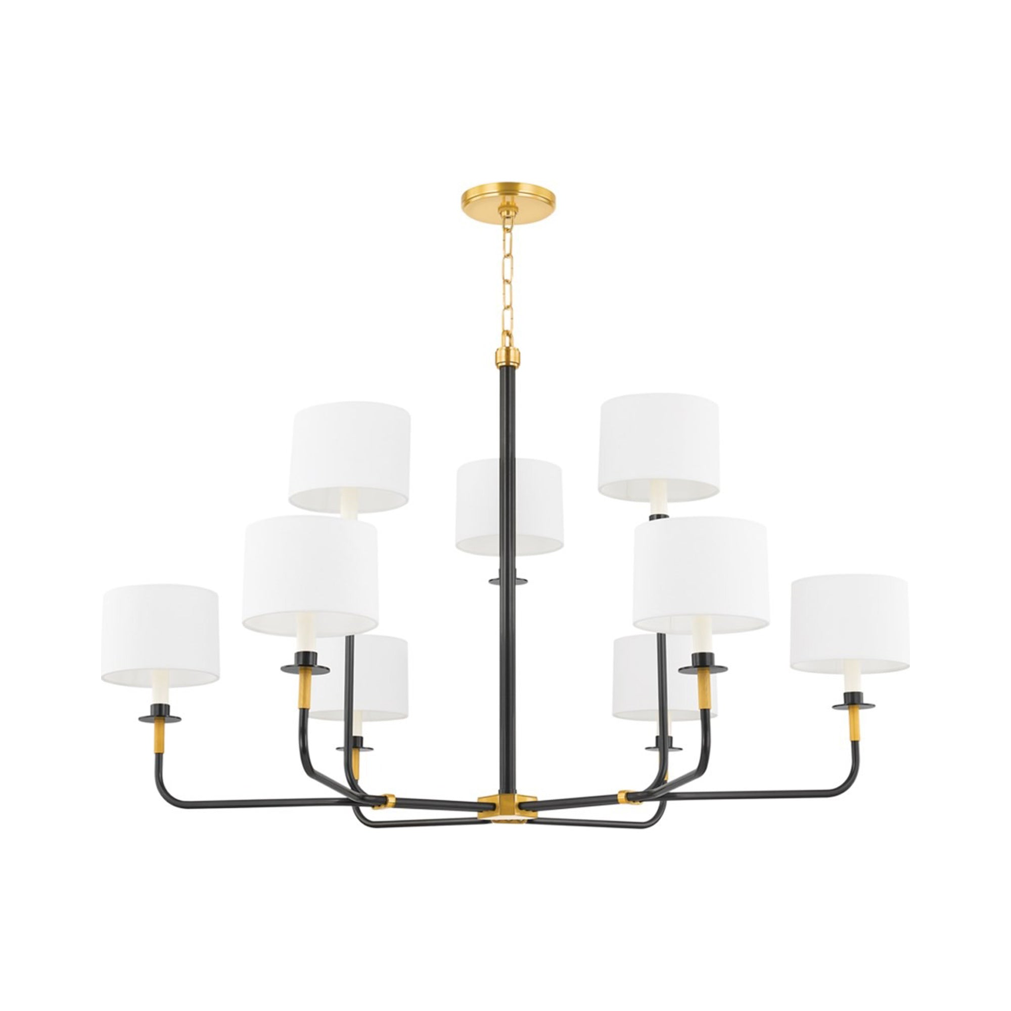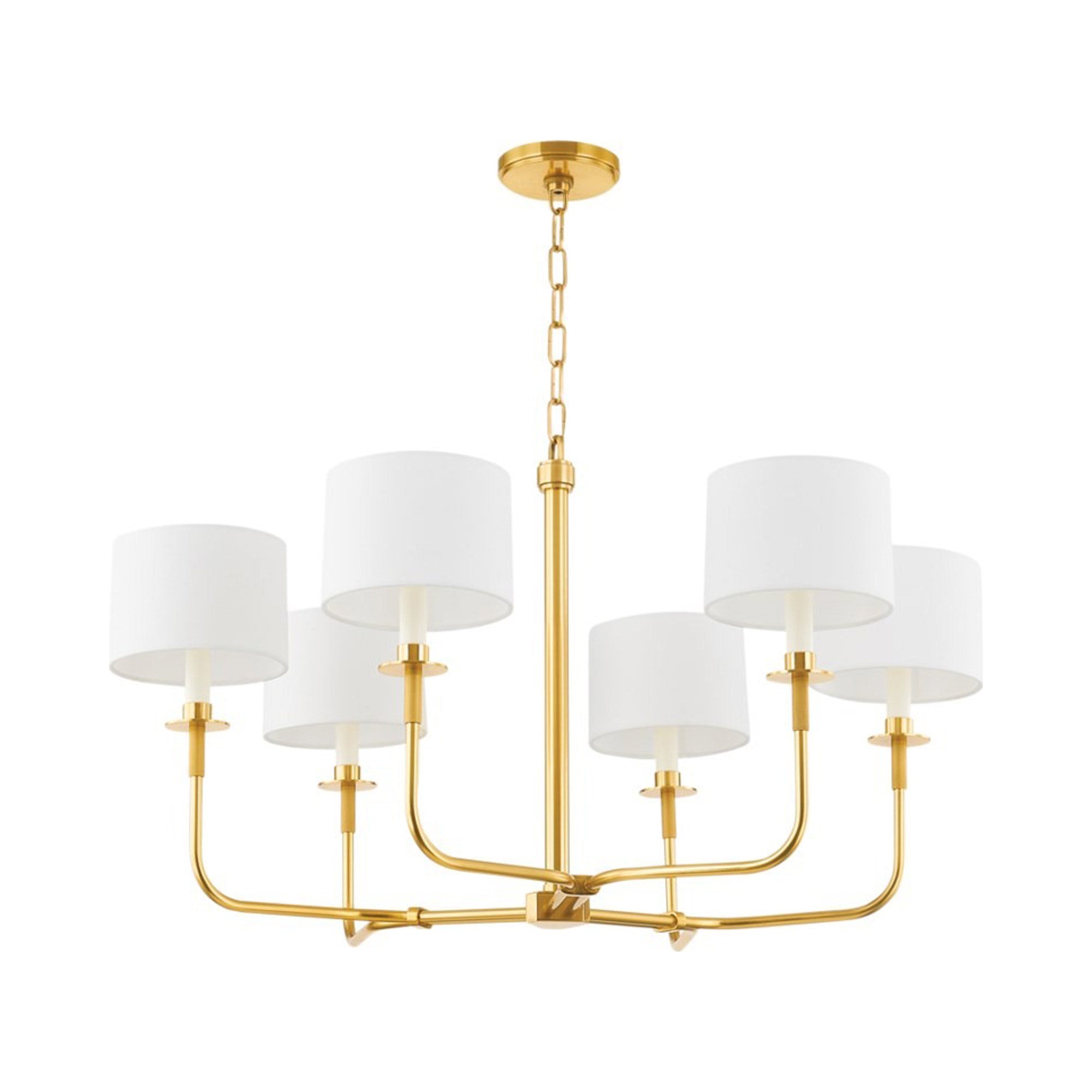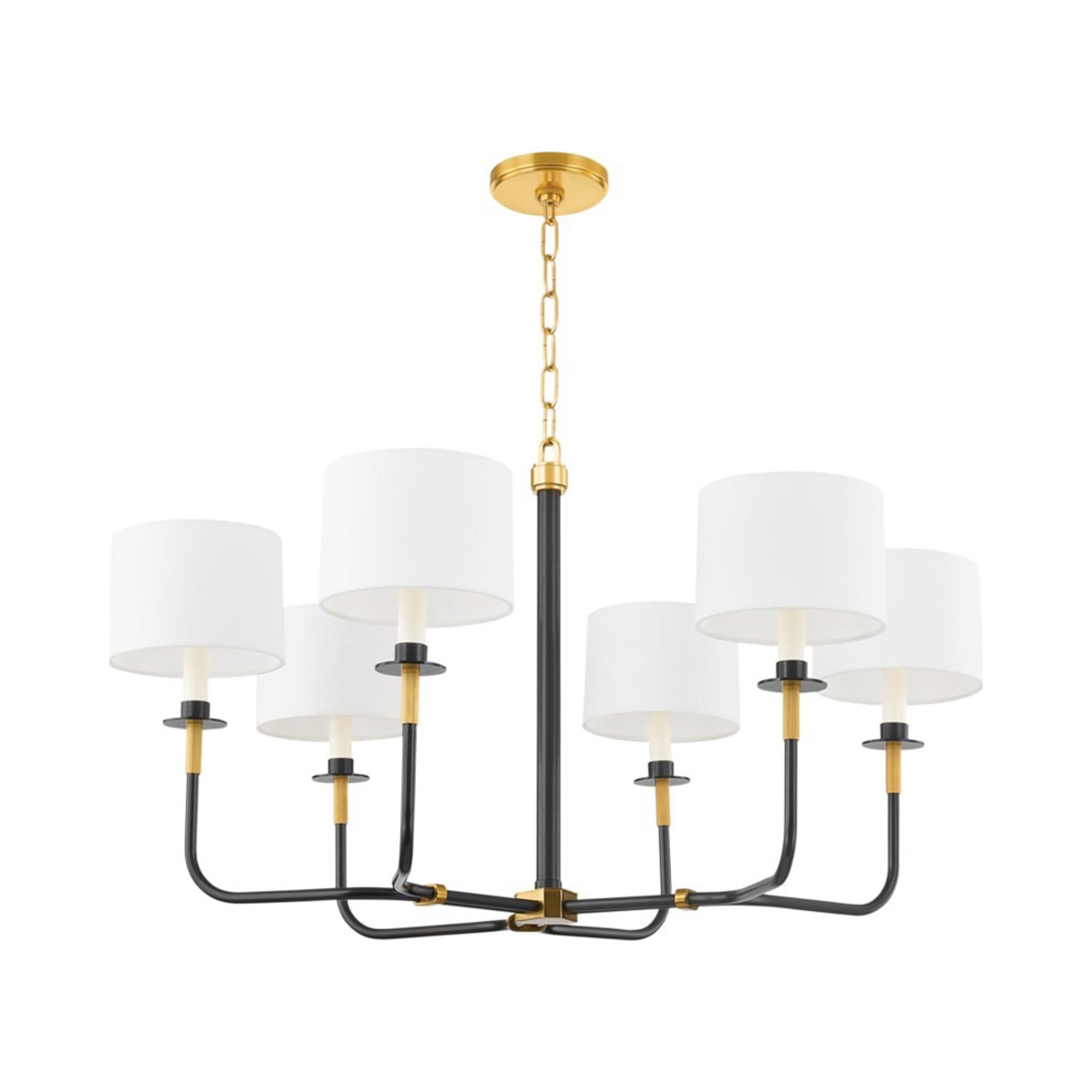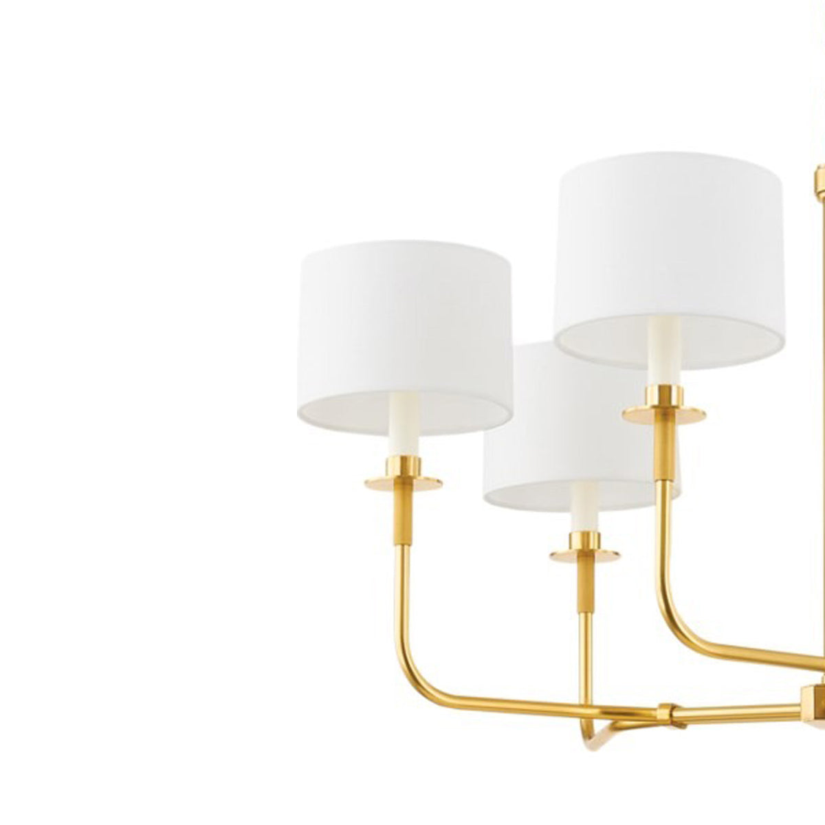 Armed with classic symmetry, the Paramus Chandelier from Hudson Valley Lighting delivers a tasteful dose of elegance as it casts ambient lighting over a dining ensemble, in a living room, or as an introductory feature of a contemporary foyer. Alluringly curved metal arms and a matching pipe frame capture an optically sound look, as traditional shades filter light as they add a certain lightness to a glam-inspired fixture.