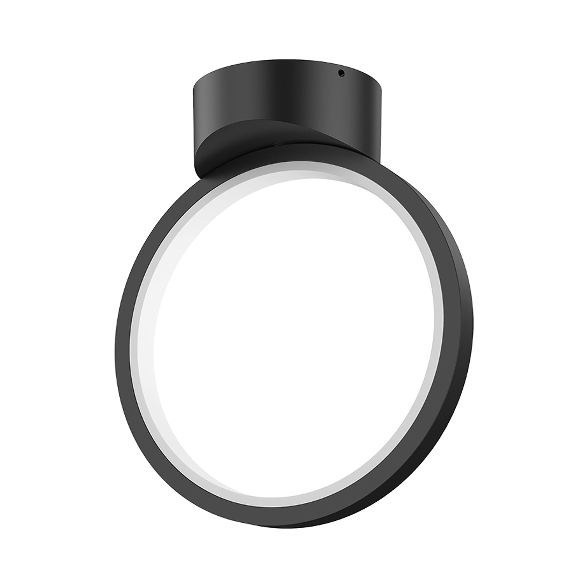 A dramatic vertical ring silhouette lends unexpected modernism to the Parc Outdoor LED Ceiling Light from Kuzco Lighting. Striking in commercial and residential installations, it features a black finish outer ring and ceiling canopy paired with a frosted diffuser, delivering even, radiant illumination for both tasks and ambiance.
