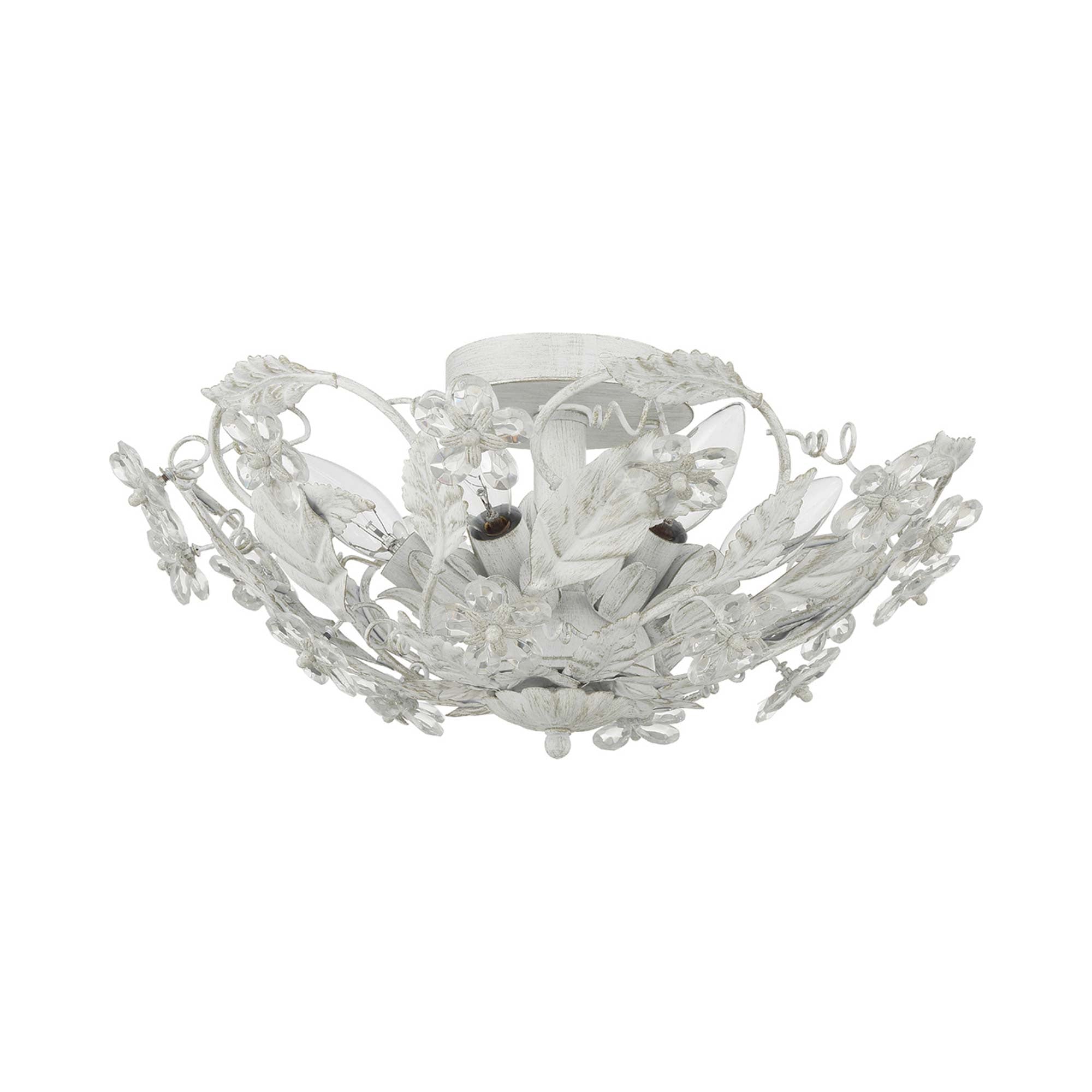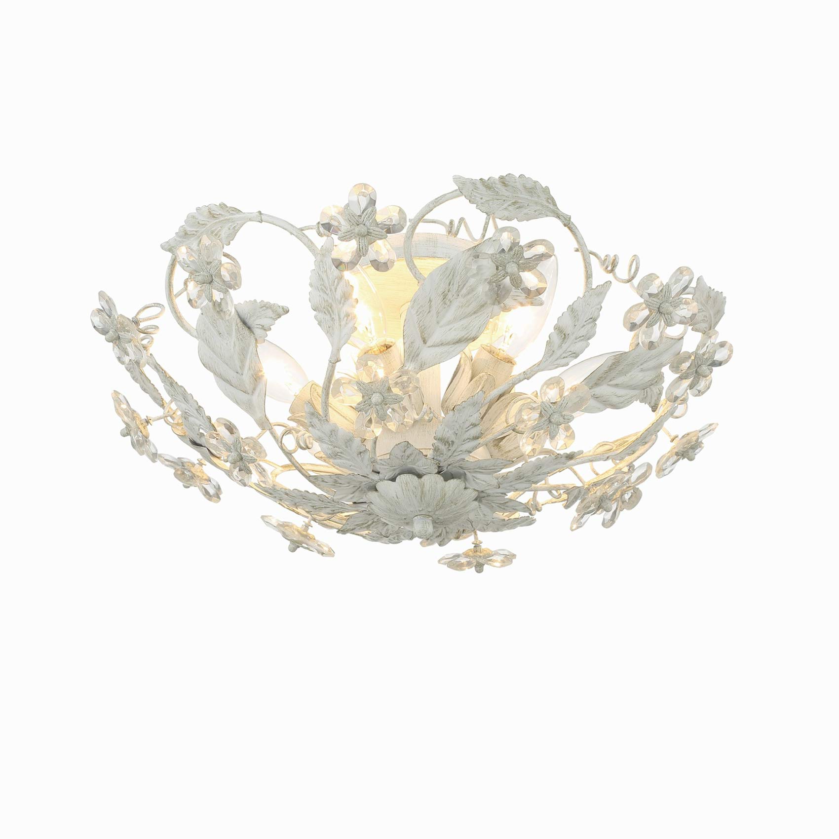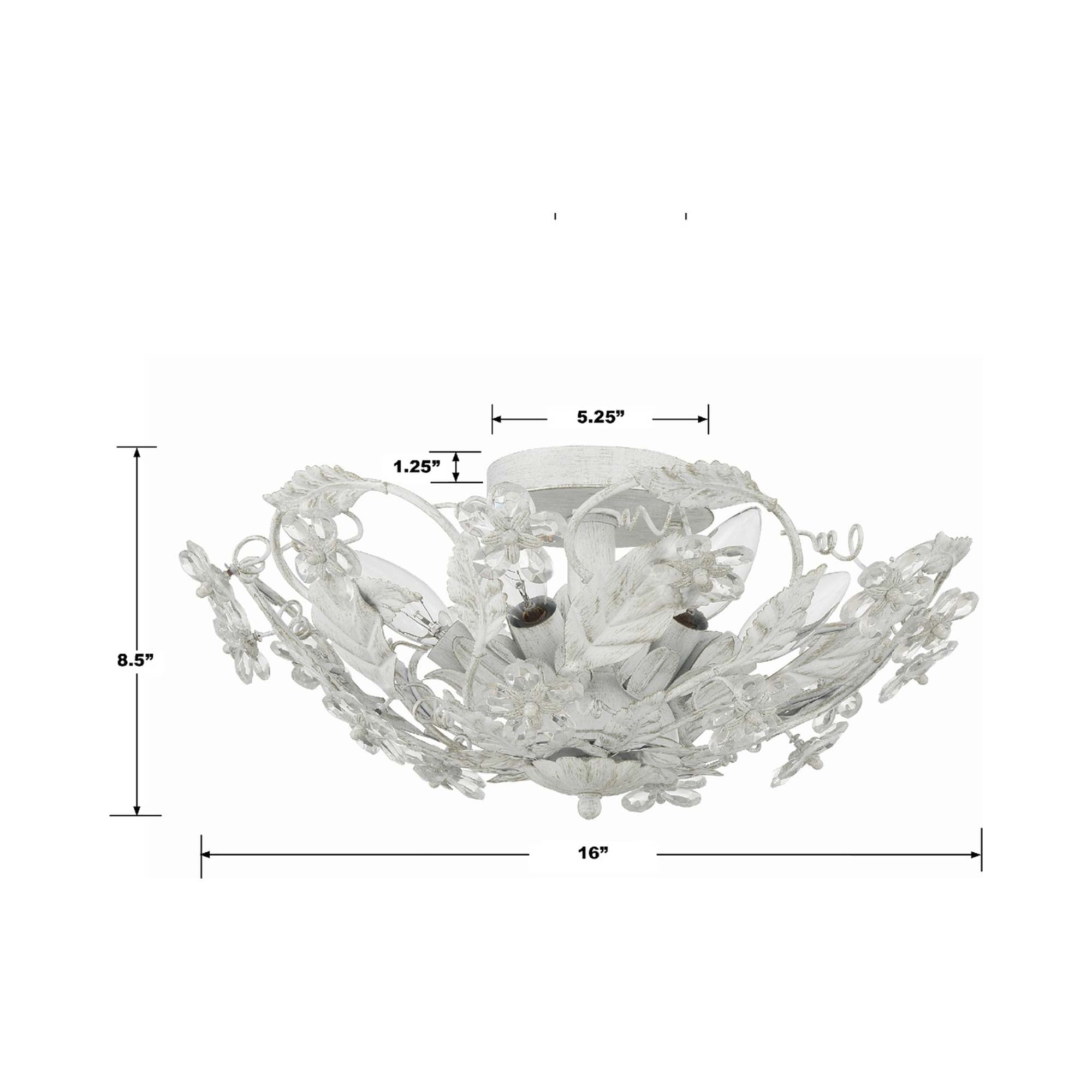 Lightness and botanical beauty capture the vintage chic design of the Paris Market Semi Flush Mount Ceiling Light from Crystorama. Openwork metal framing with a versatile finish blends beautifully authentic looking leaf elements in a bowl silhouette, with delightful metal curves and floral-inspired hand-cut crystal elements sparkling as they catch and reflect soft lighting.