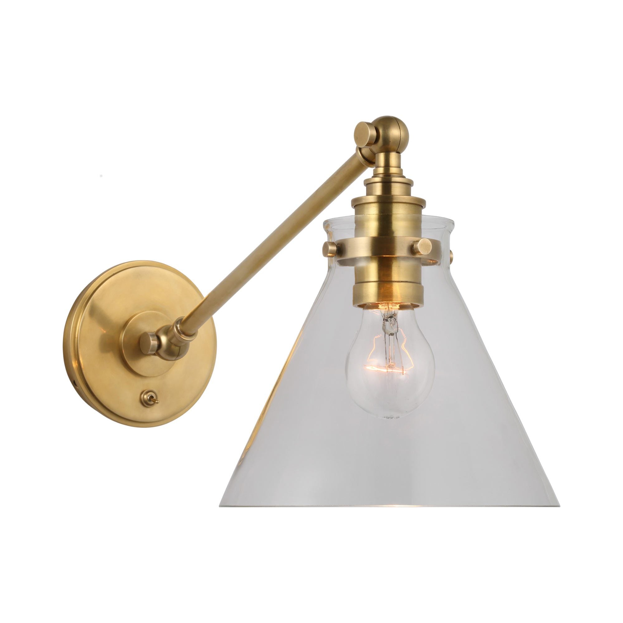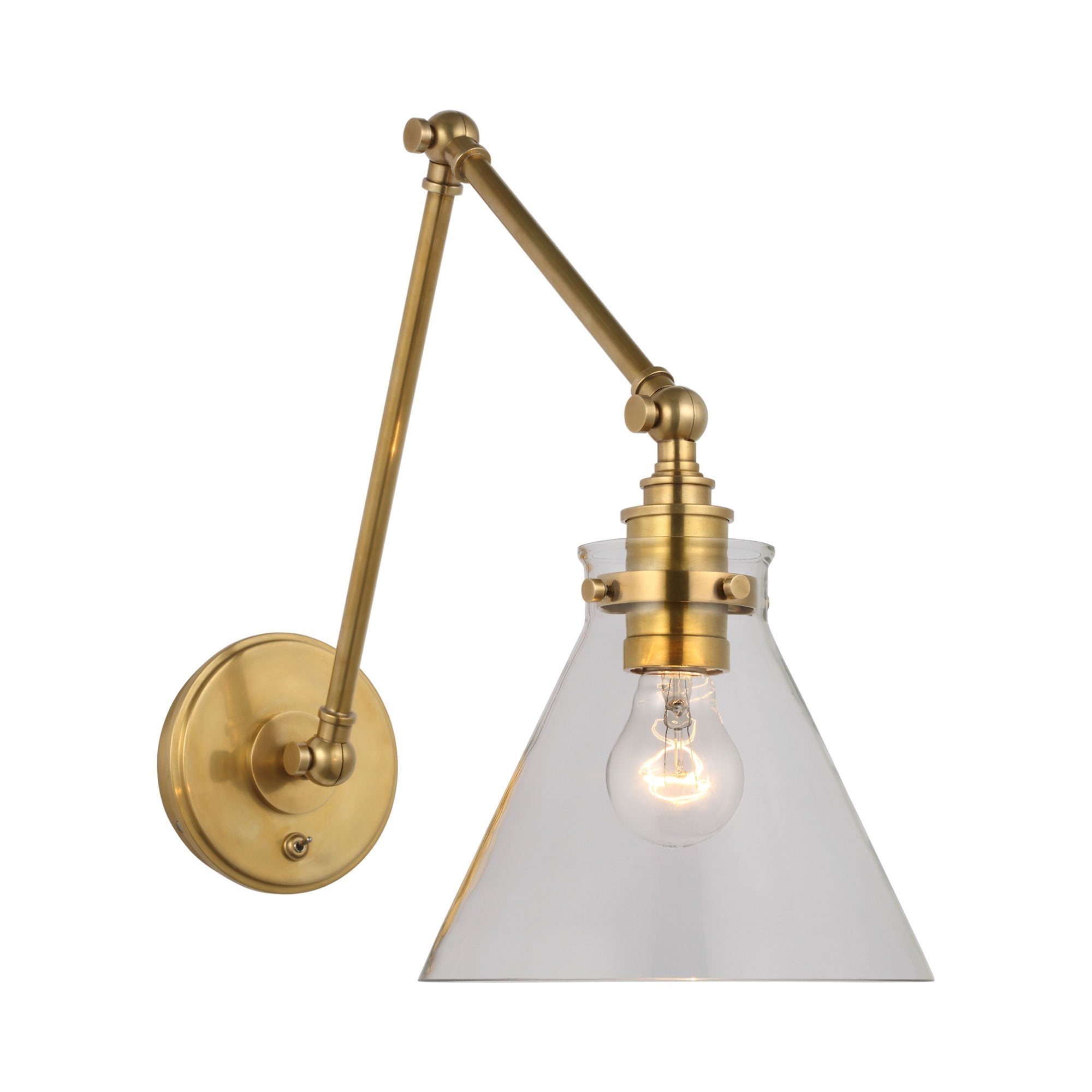 The Parkington Swing Arm Wall Light from Visual Comfort Signature creates a village-inspired charm that repurposes olde world personality. LED lighting adds a bonus feature to a lamp offering a conical glass shade with a metal wall plate and swing arm function to direct lighting as needed.