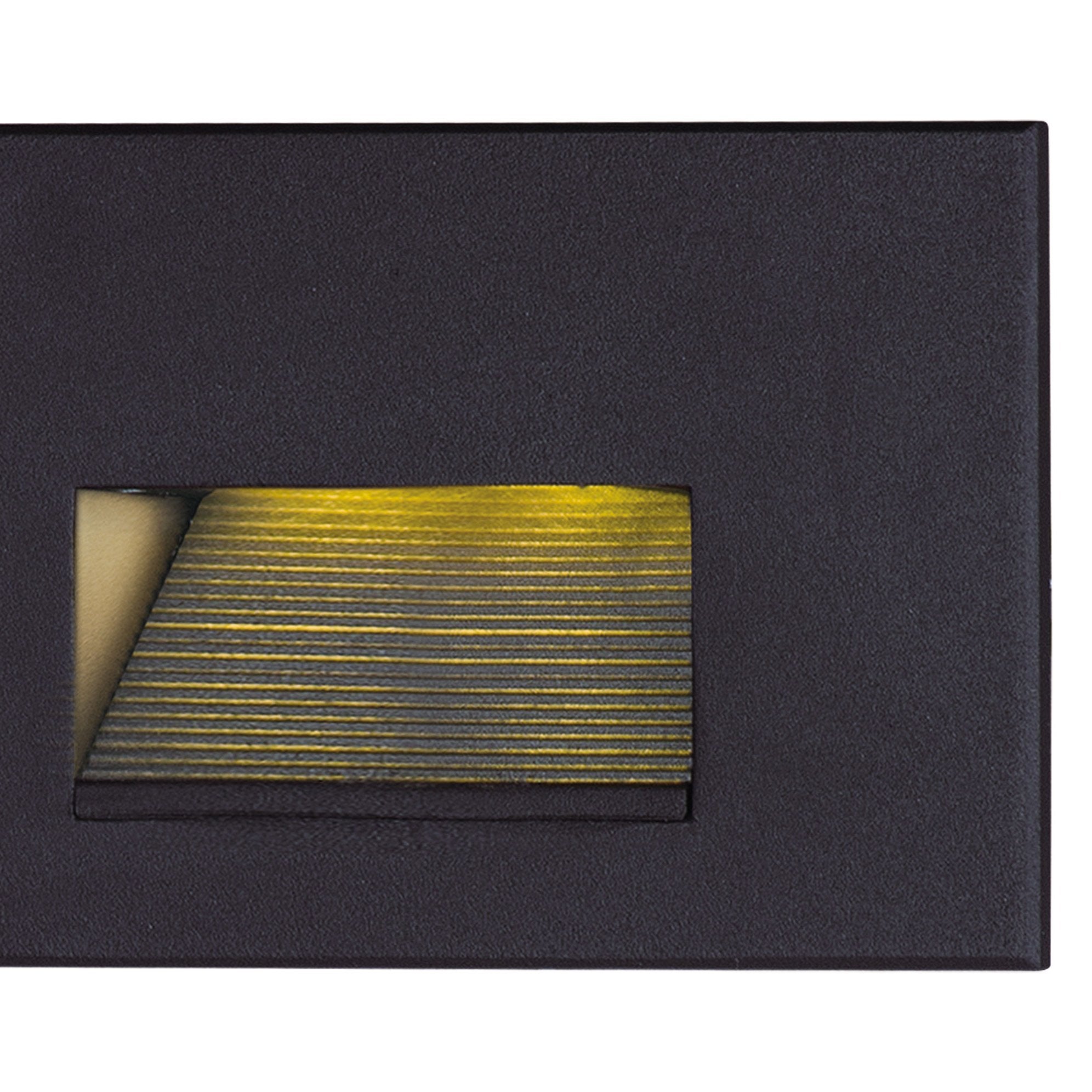 Step and pathway lighting suitable for interior or exterior application. Designed to install into a single gang box and is line voltage so additional transformers are not needed. Available in aluminum, white, black, or bronze and both horizontal wide beam or vertical narrow beam spread.