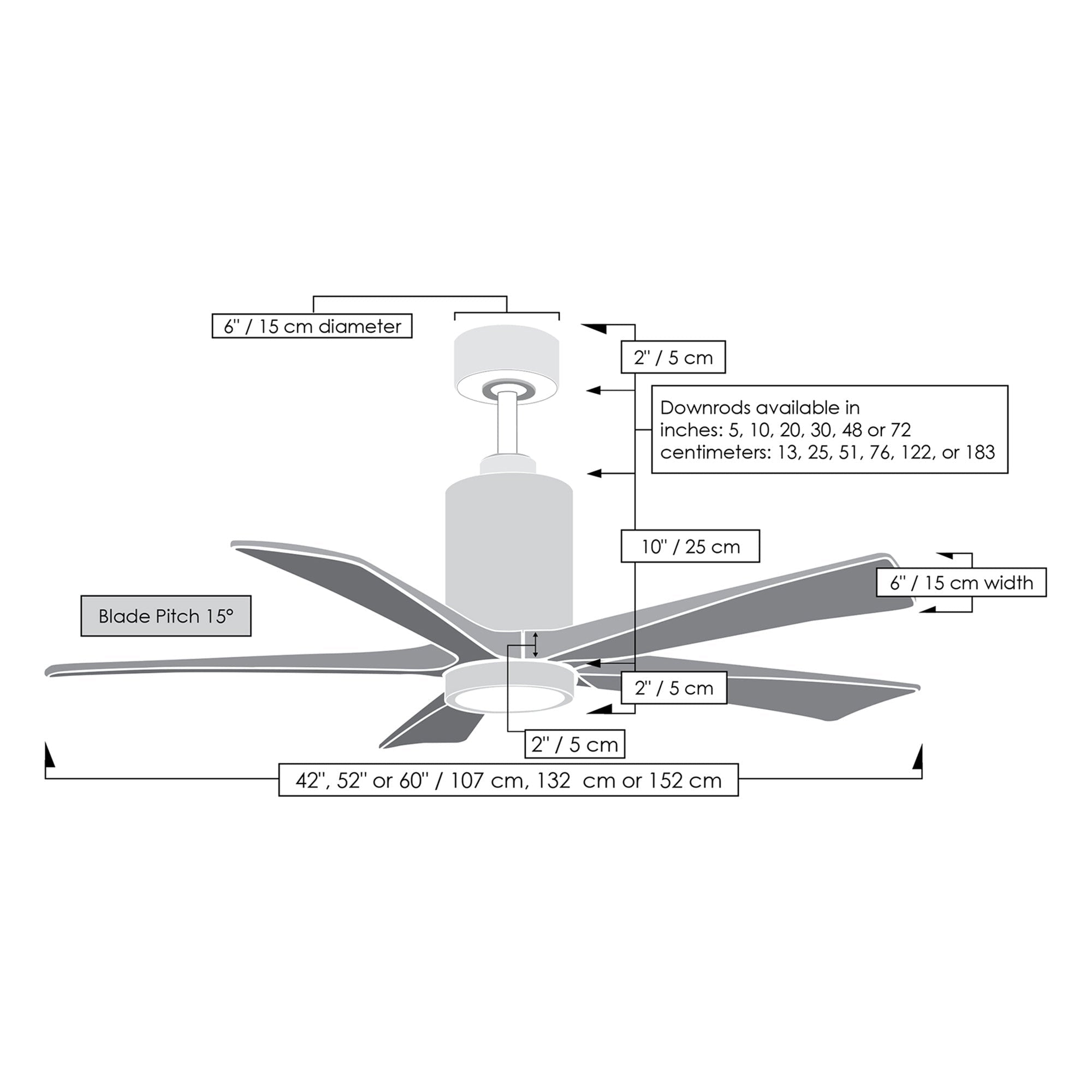 Clean and refined, the Patricia 5 Indoor / Outdoor LED Ceiling Fan from Matthews Fan Company pairs a robust, cylindrical housing with an energy efficient light for optimal versatility.
