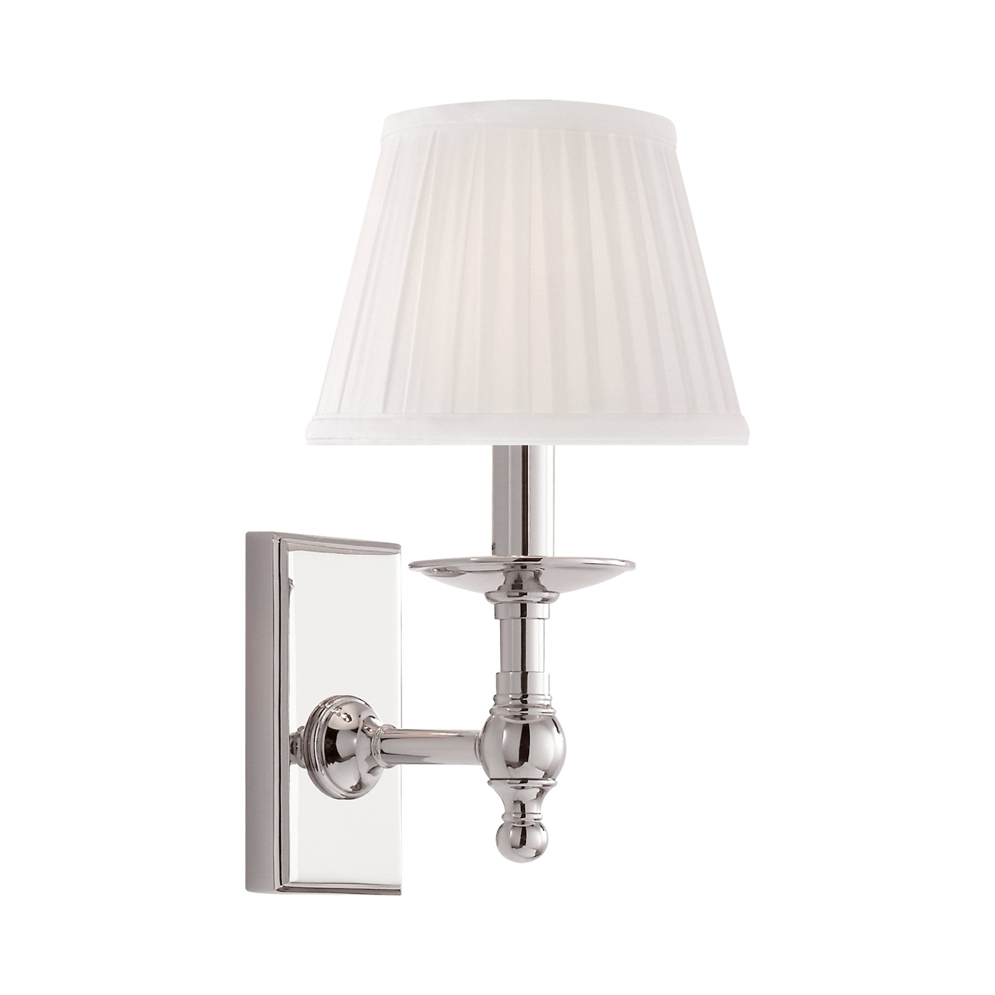 Compelling romance plays its part with grace as the Payson Wall Light from Visual Comfort Signature emulates classic traditional beauty. Shapely and sculptured, its metal stem and dimensional back plate rise to the level of sophistication, with a chic pleated silk shade culminating in an overall brilliant aesthetic.